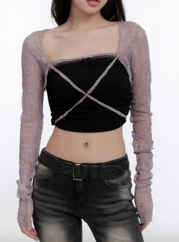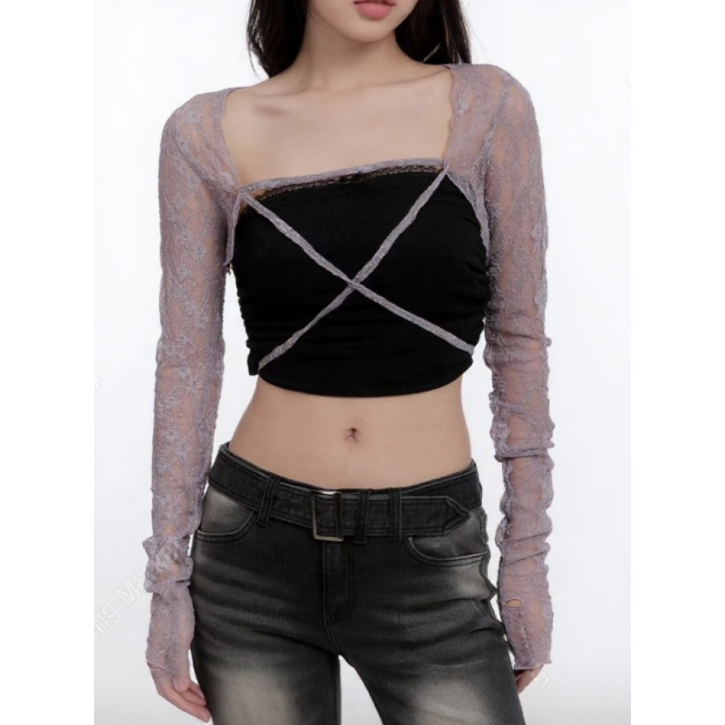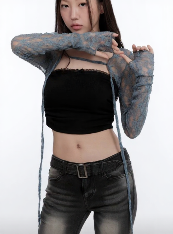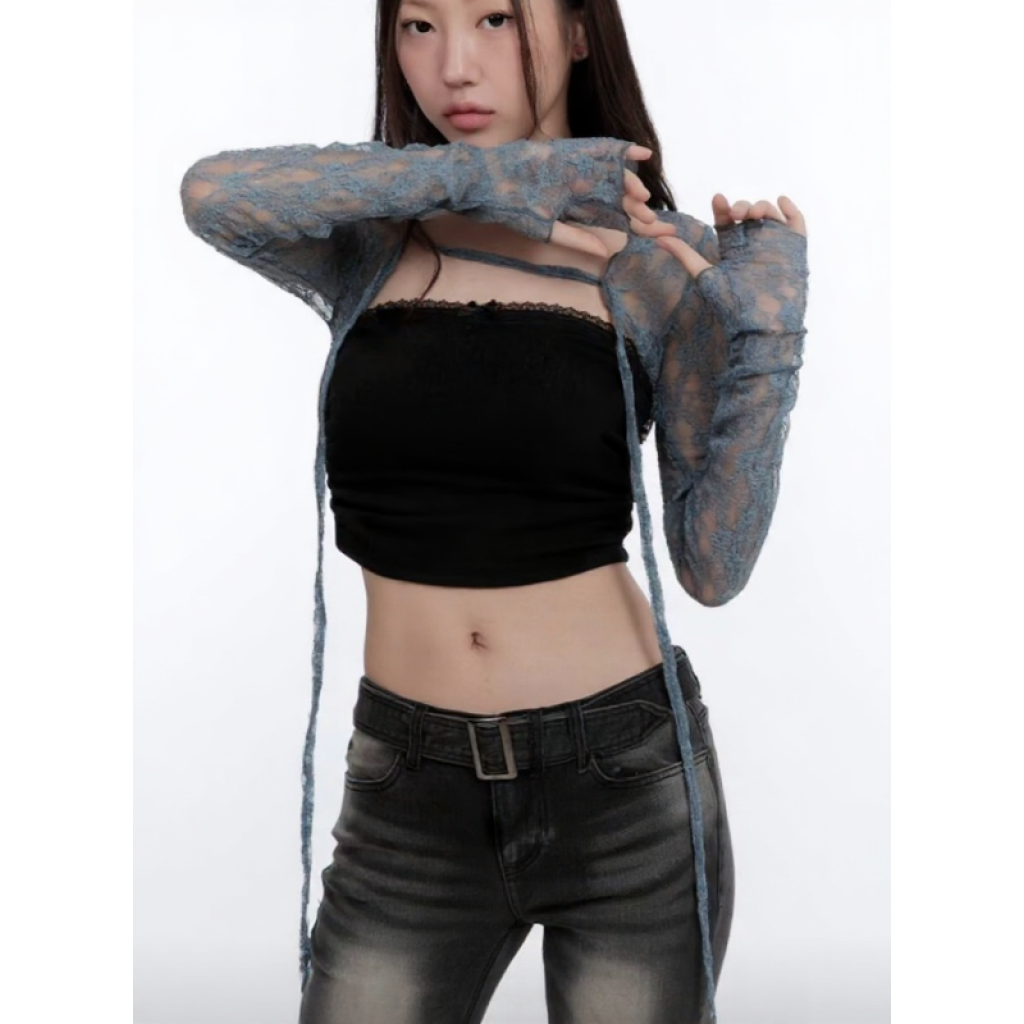 (•‾⌣‾•蕾絲短版外套💕輕盈透膚獨特綁帶設計增添甜美細節❤️