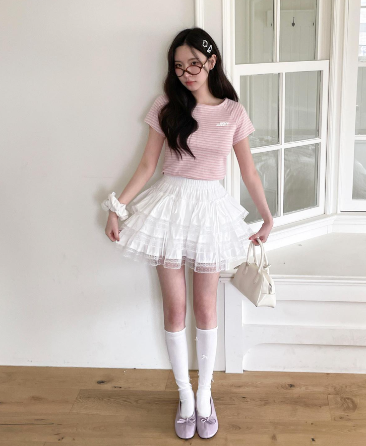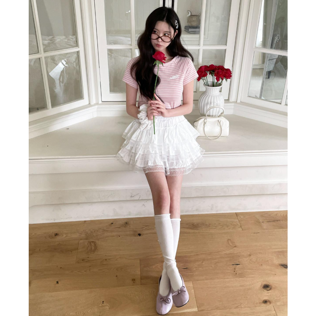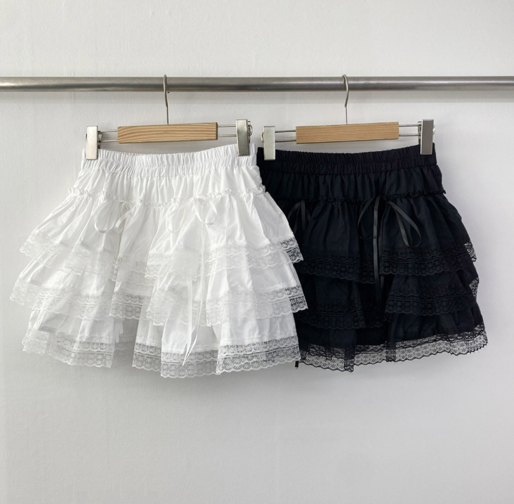 ヽ( ^ω^ ゞ )蕾絲蛋糕裙💕高腰鬆緊設計舒適顯瘦❤️穿出浪漫少女氣息