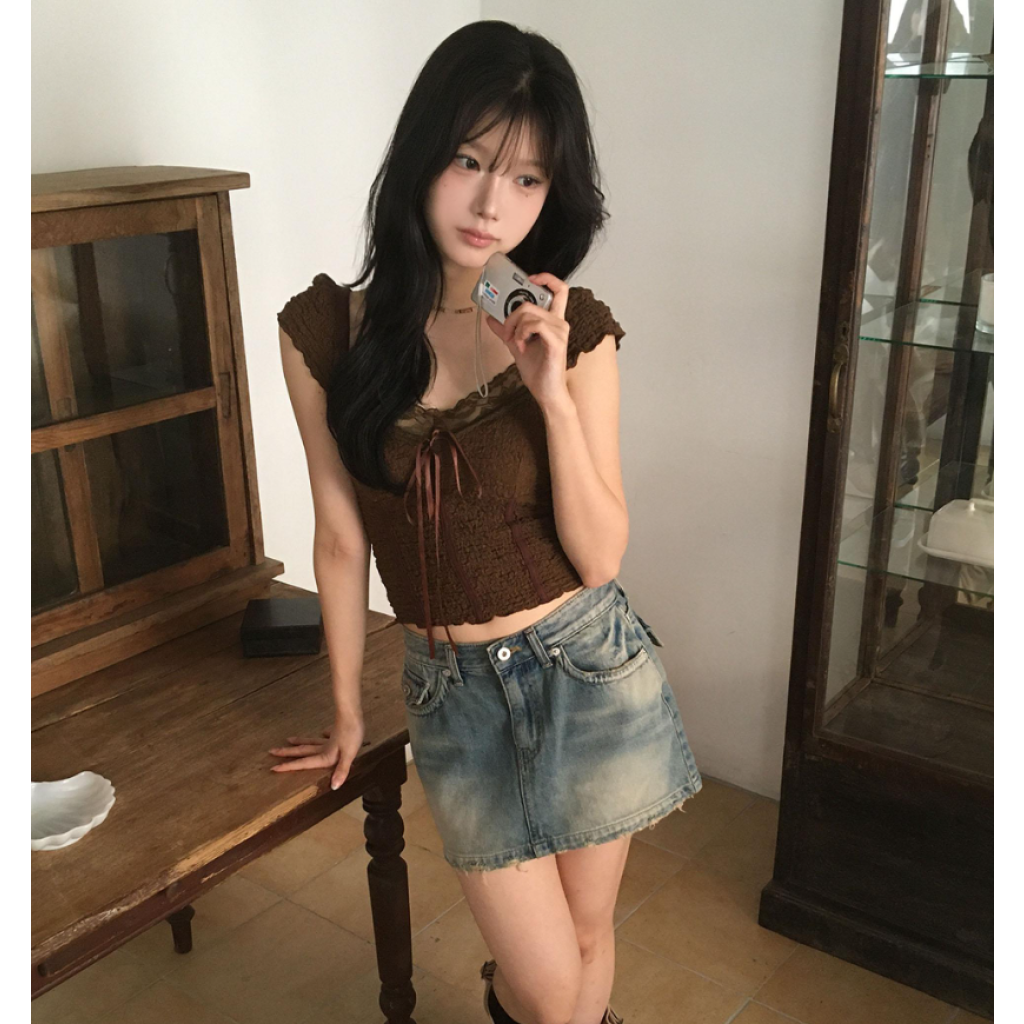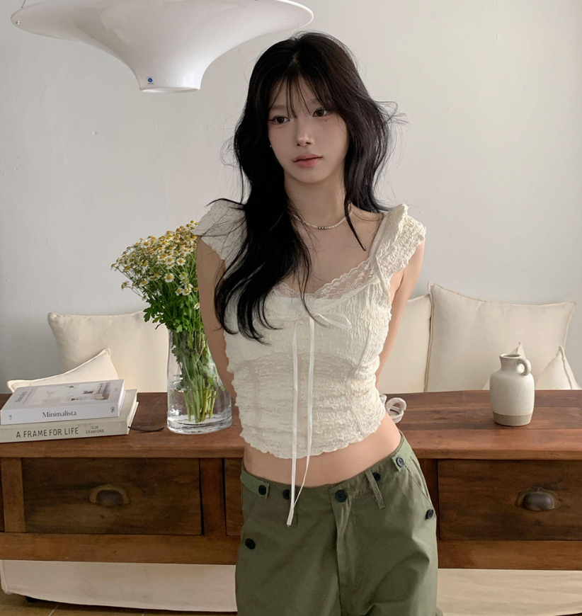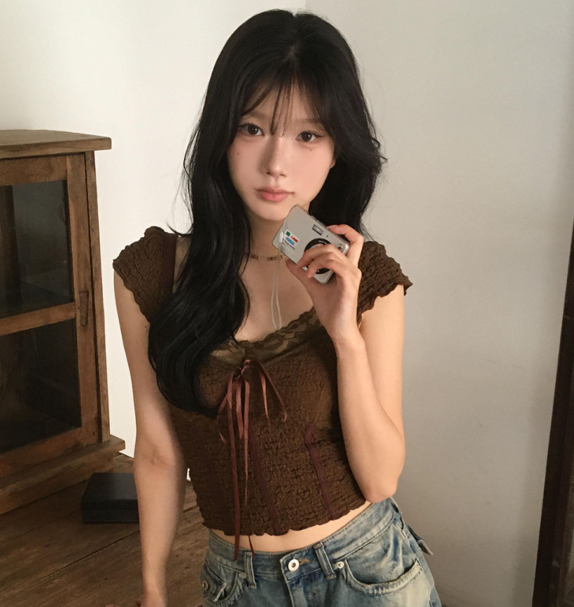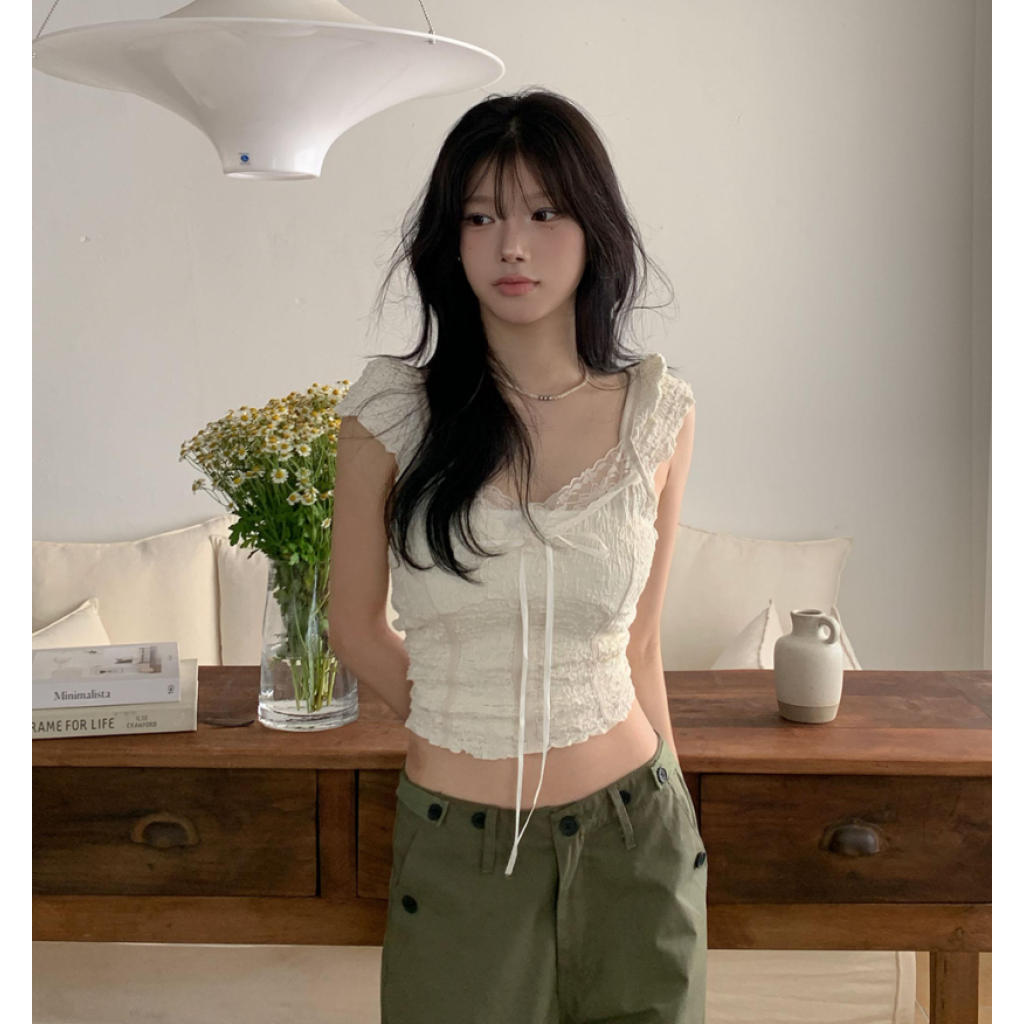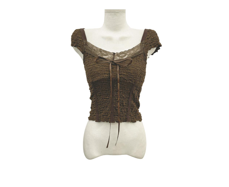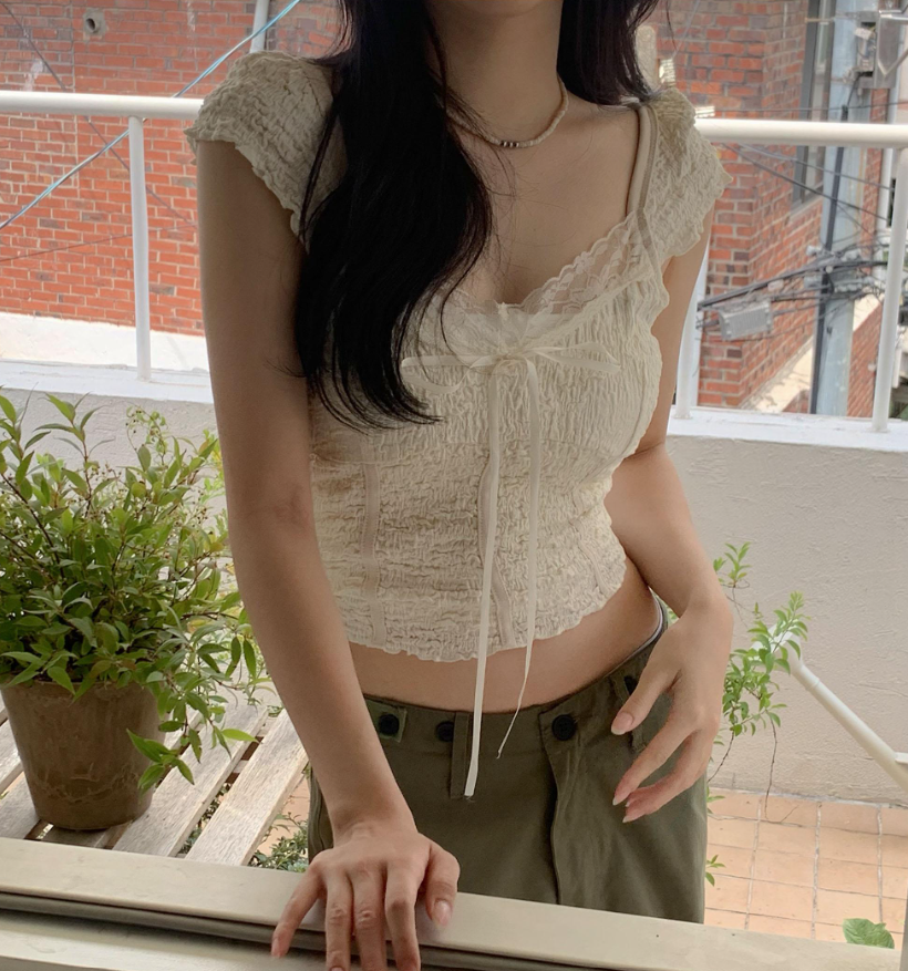 (•‾⌣‾•)浪漫風褶皺上衣💕胸前綁帶設計增添層次❤️溫柔又甜美