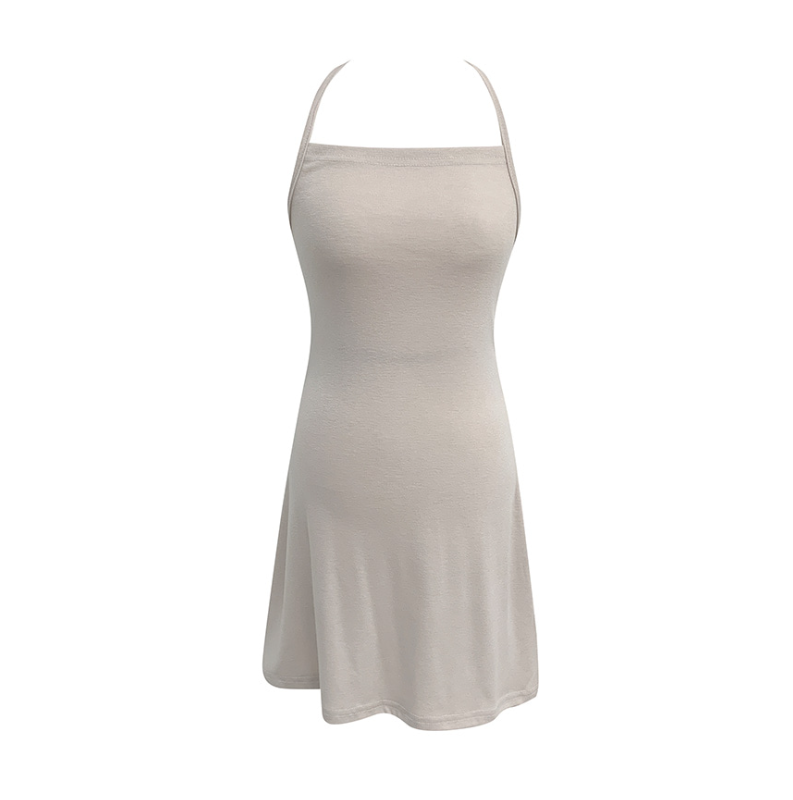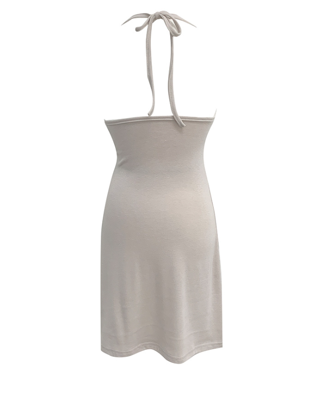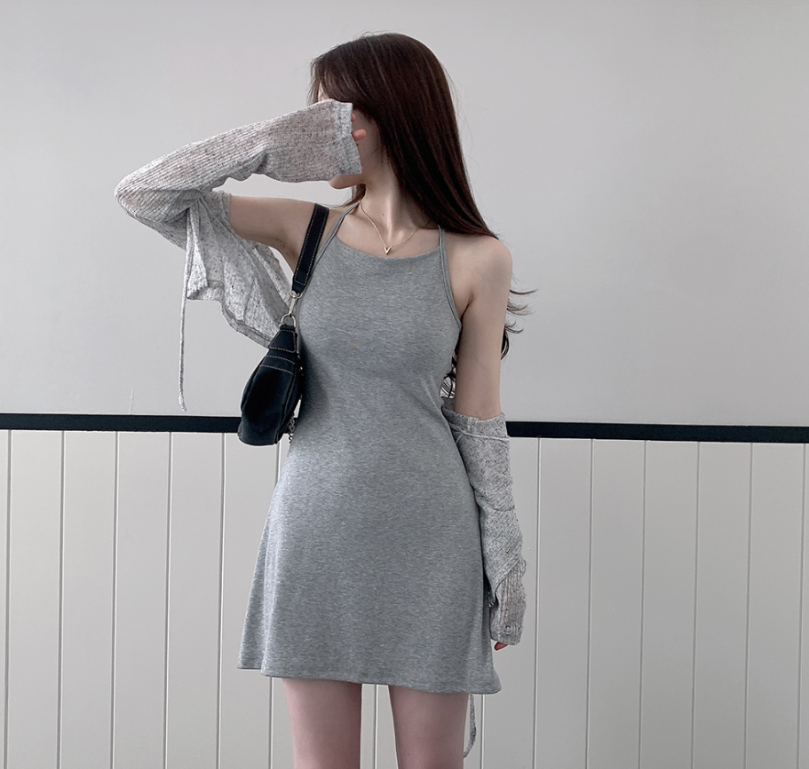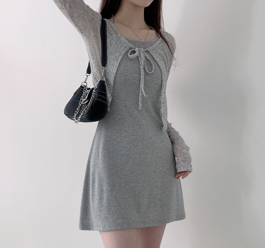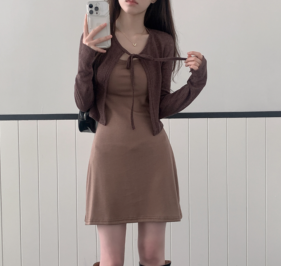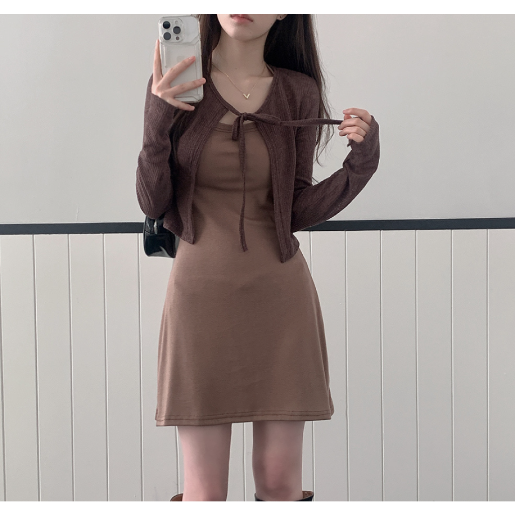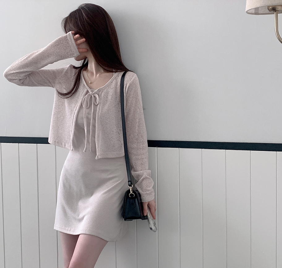 露背掛頸連身裙配綁帶針織外套【5色入】