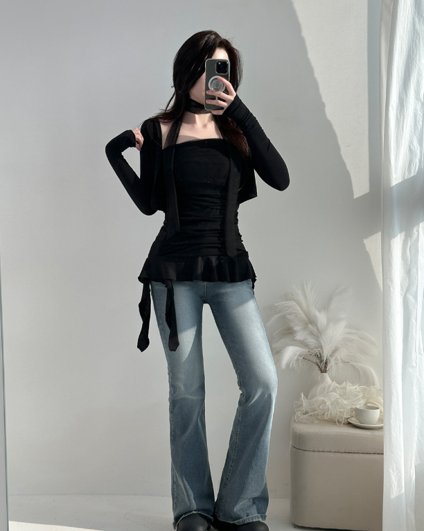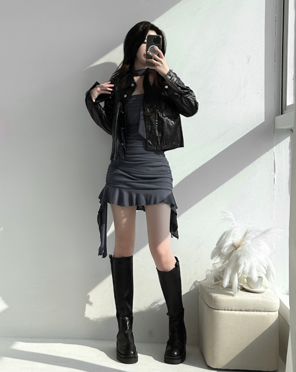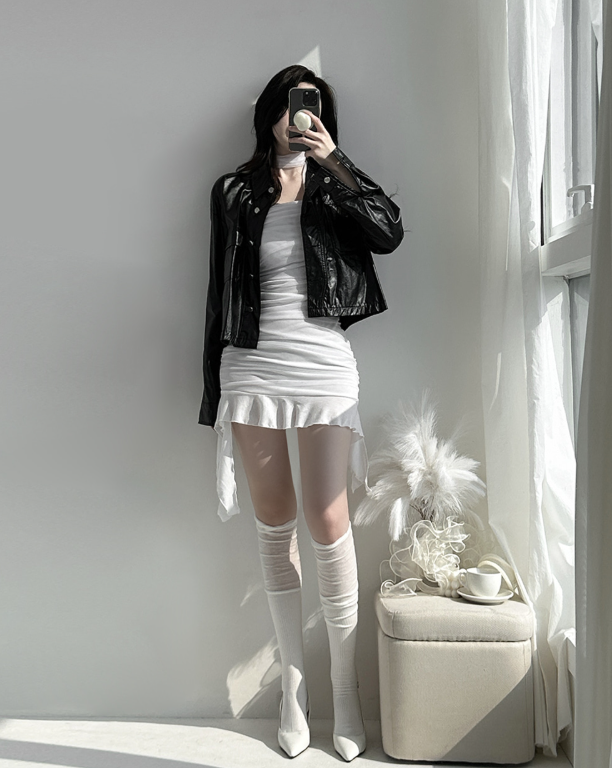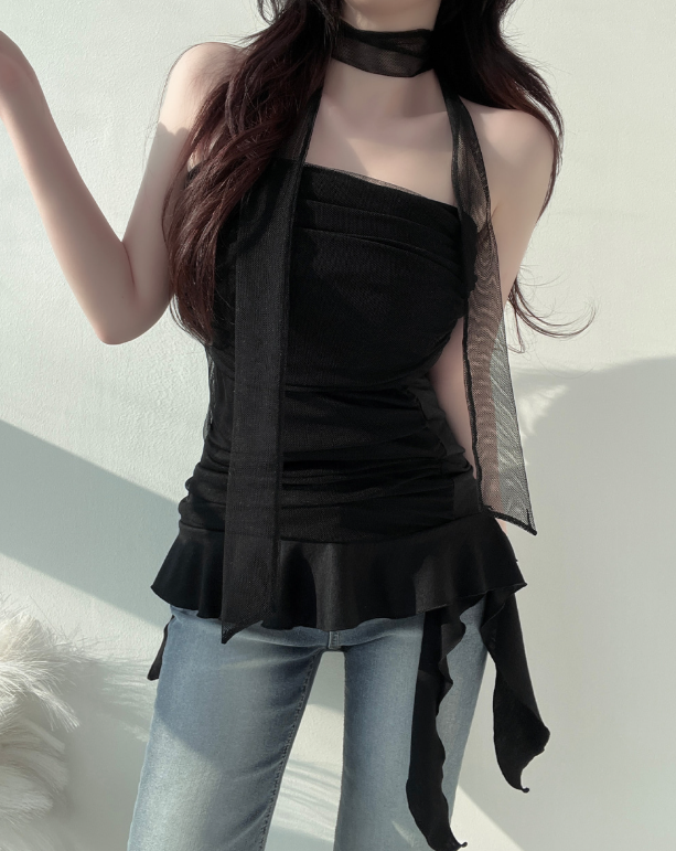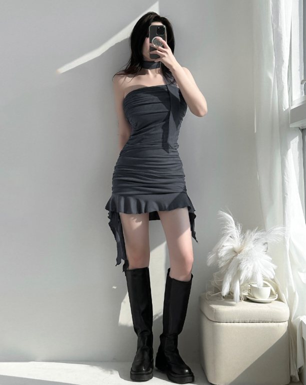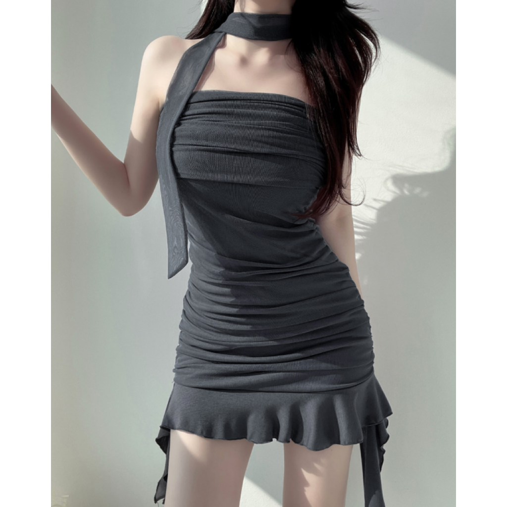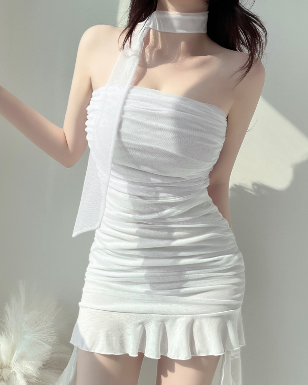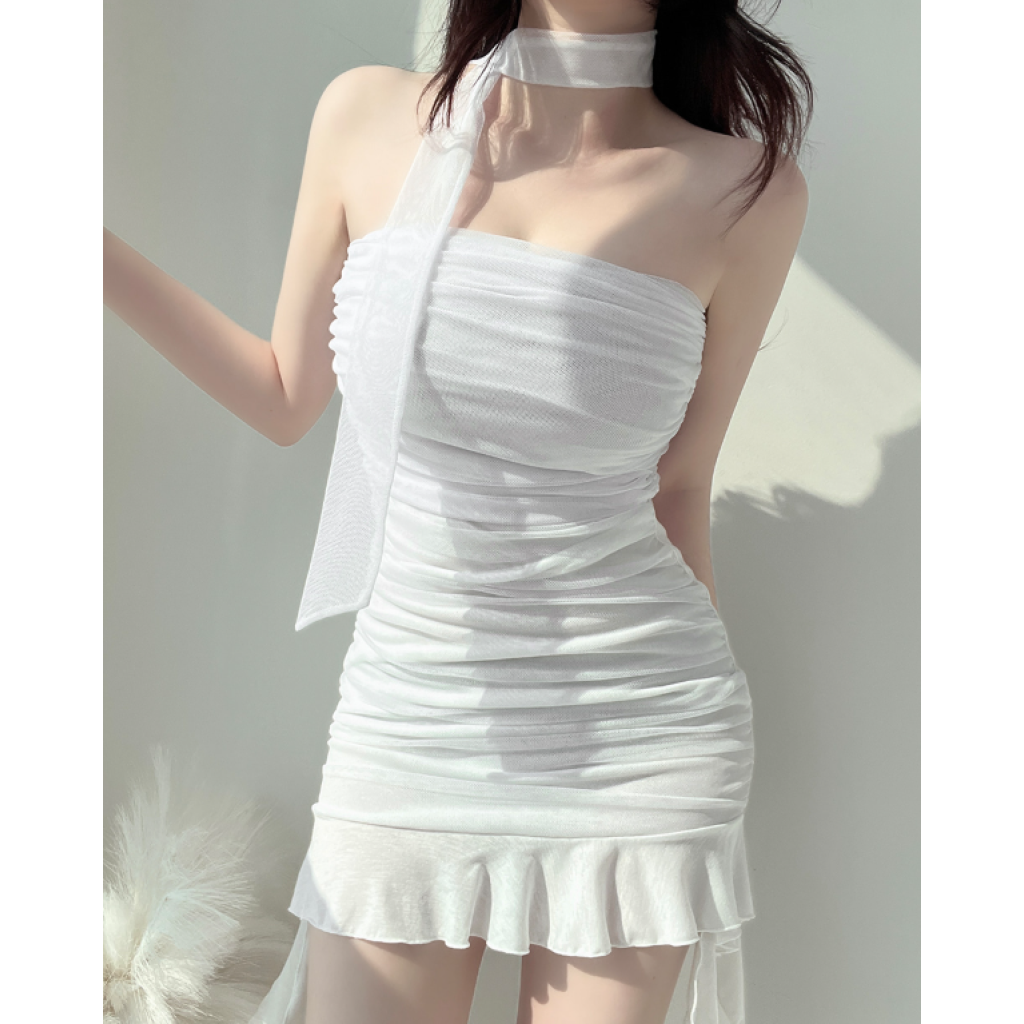 (•‾⌣‾•)不對稱裙擺設計配上全身褶皺網紗💕凸顯窈窕身姿❤️仙氣與性感兼具