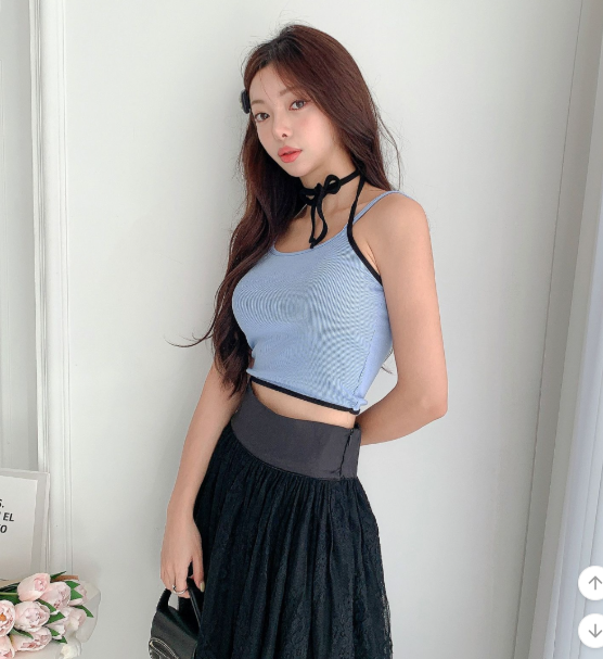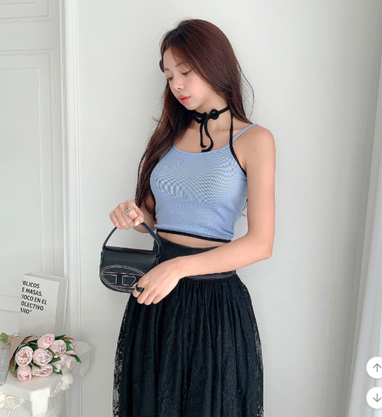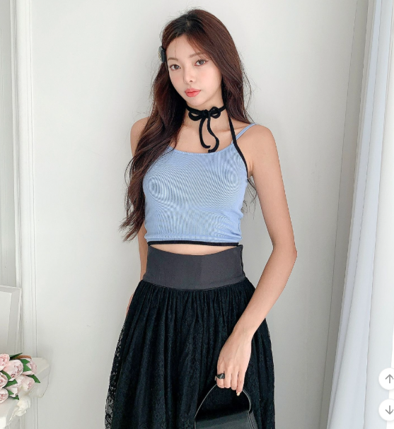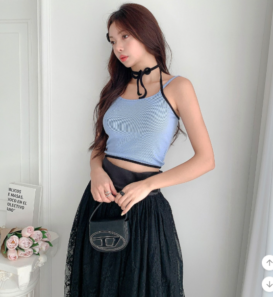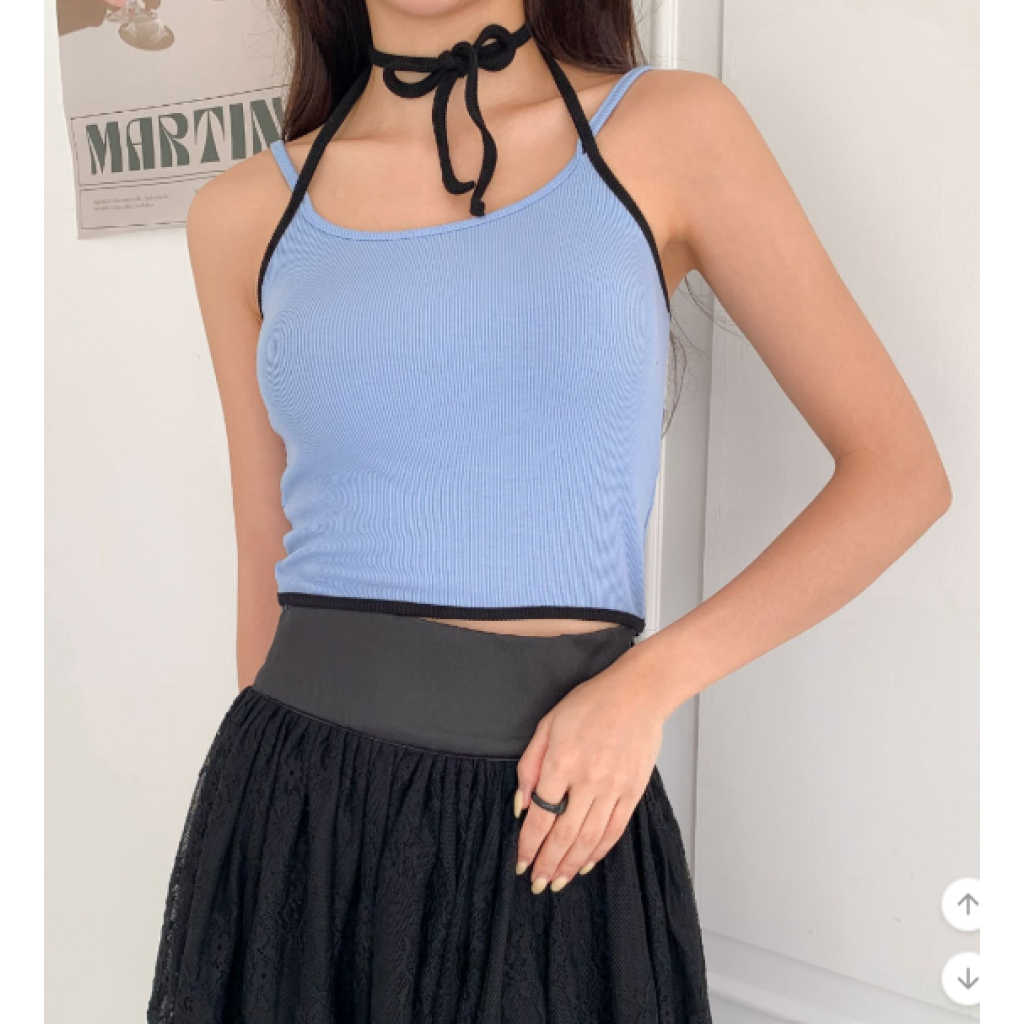 (•‾⌣‾•)自帶掛頸綁帶設計💕搭配撞色配搭❤️貼合身形超顯瘦