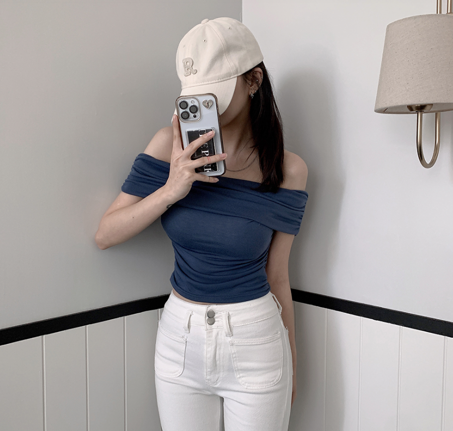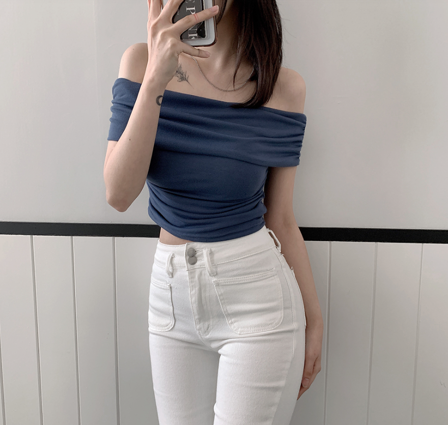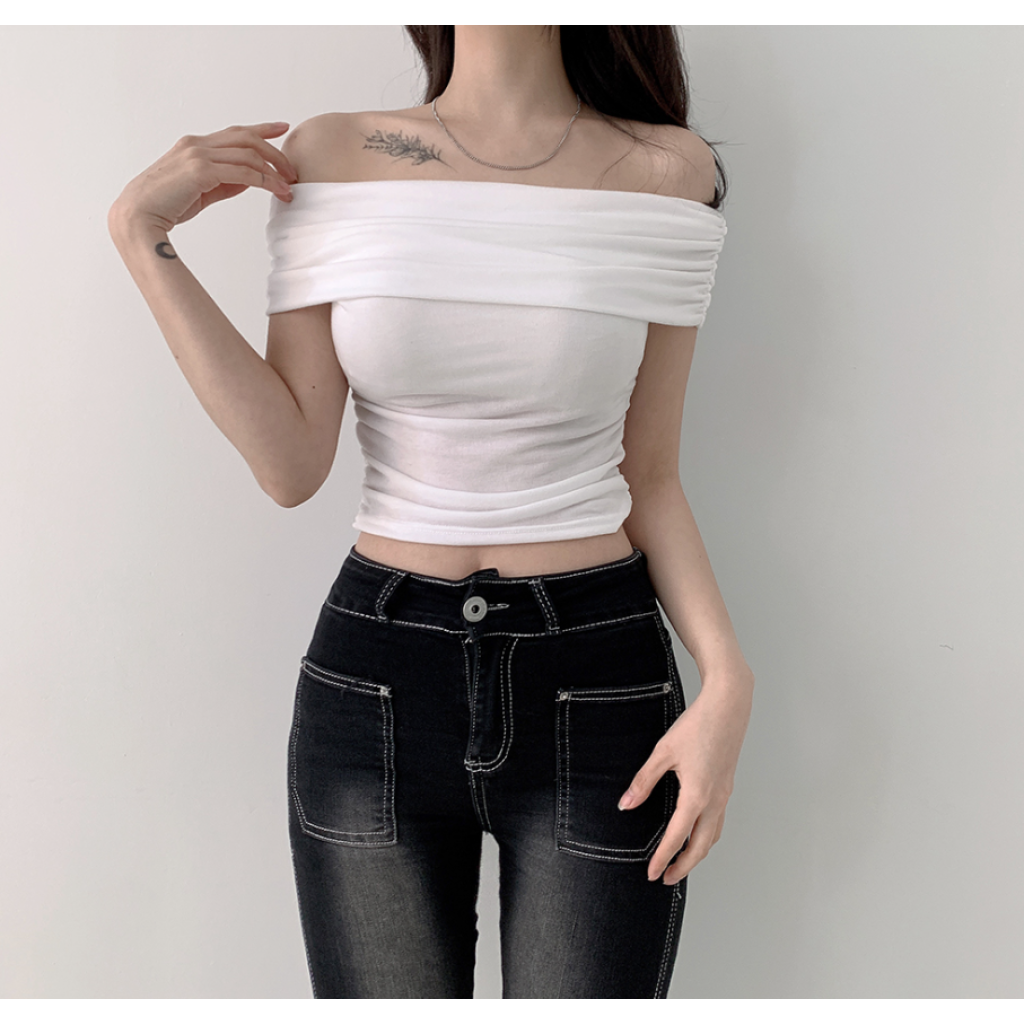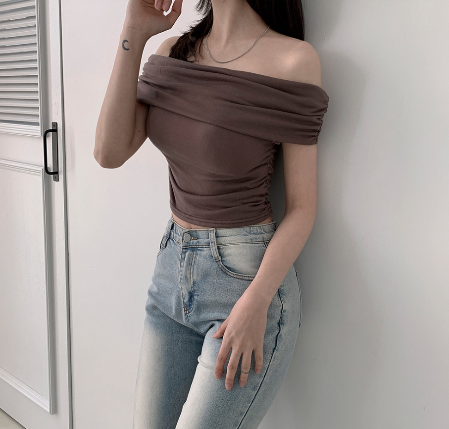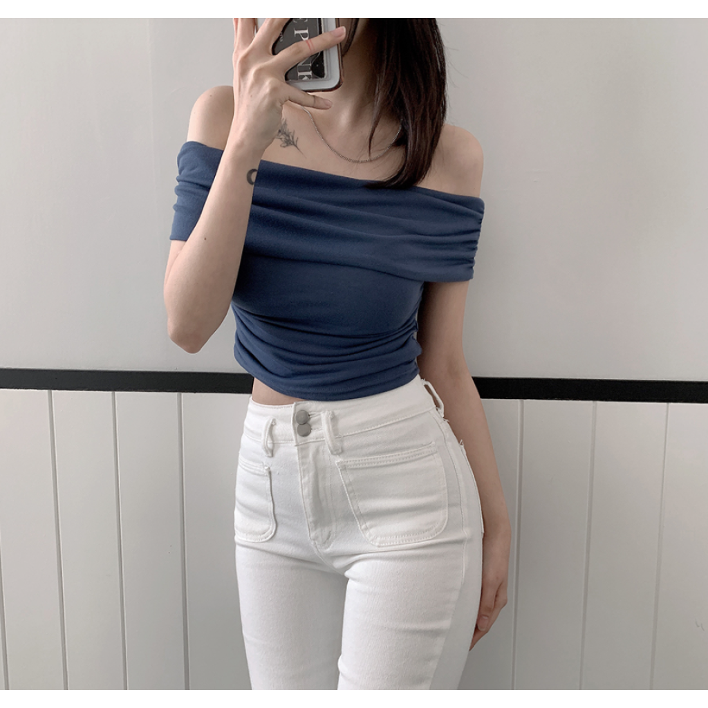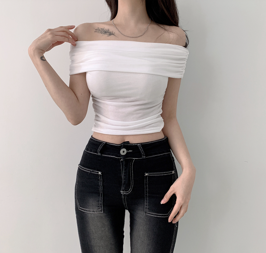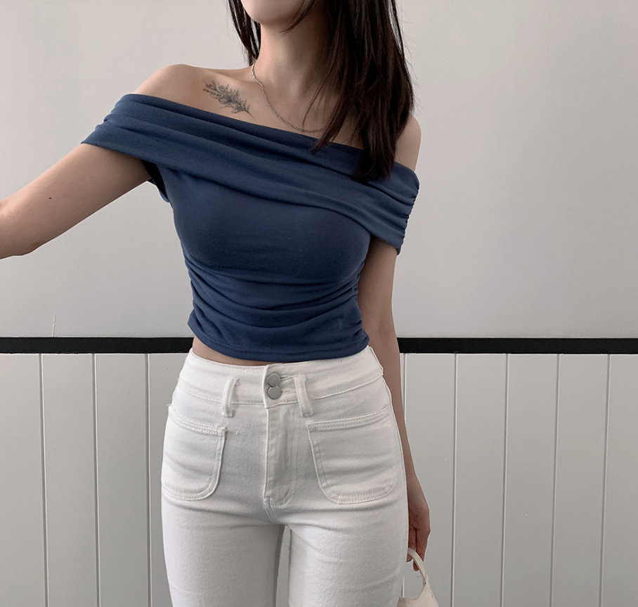 (•‾⌣‾•)翻摺褶皺一字領💕大方展露性感鎖骨與肩線❤️
