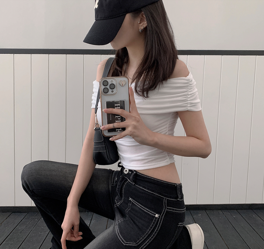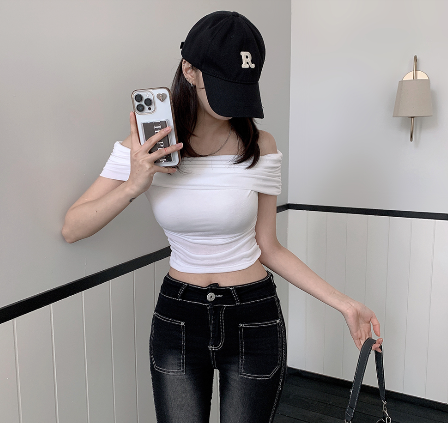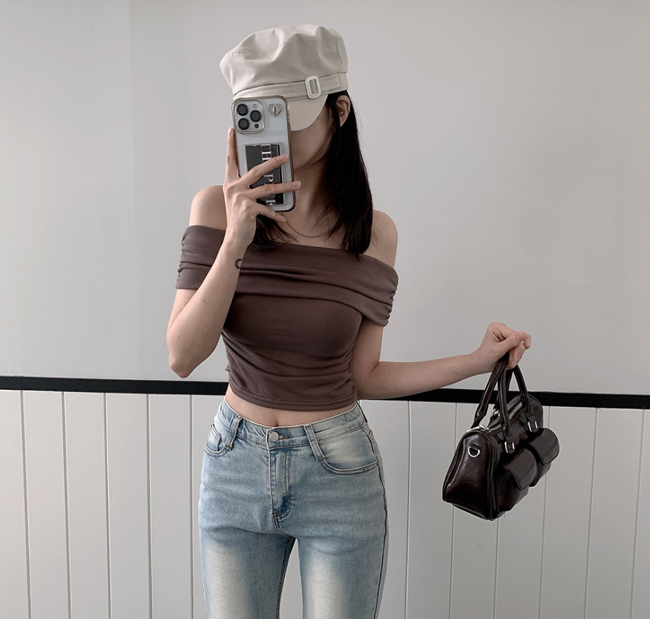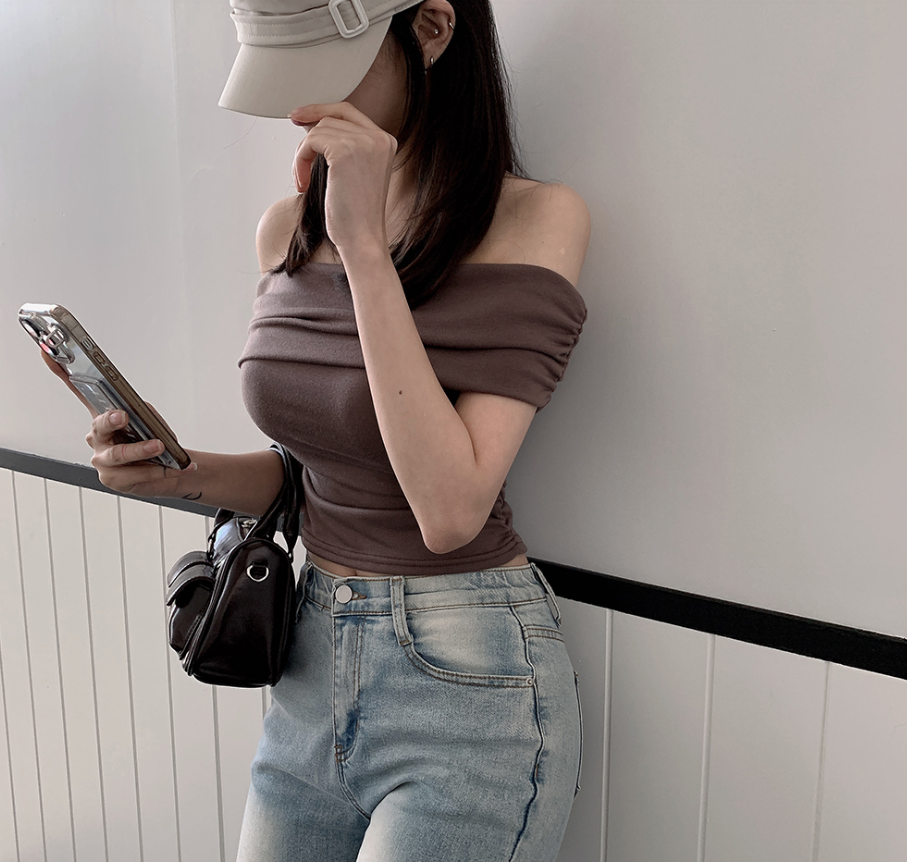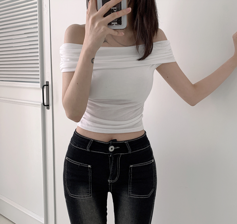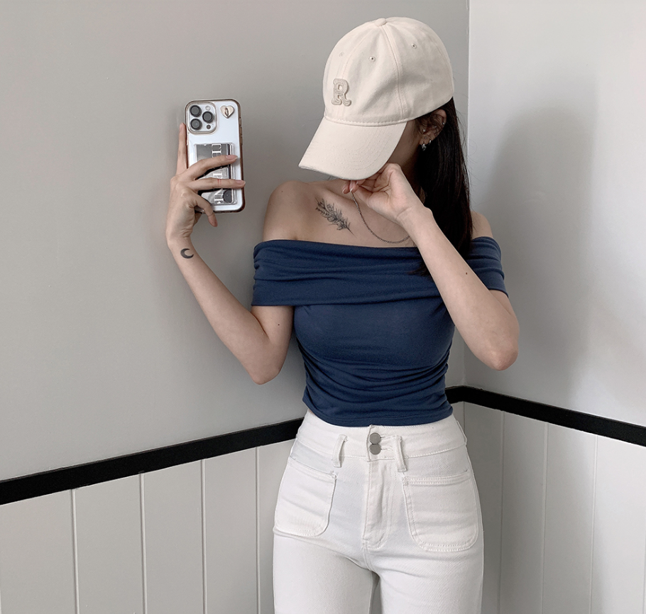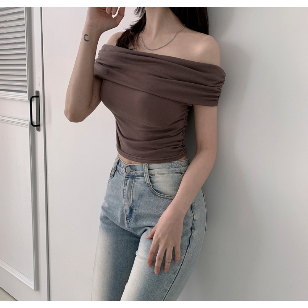 (•‾⌣‾•)翻摺褶皺一字領💕大方展露性感鎖骨與肩線❤️