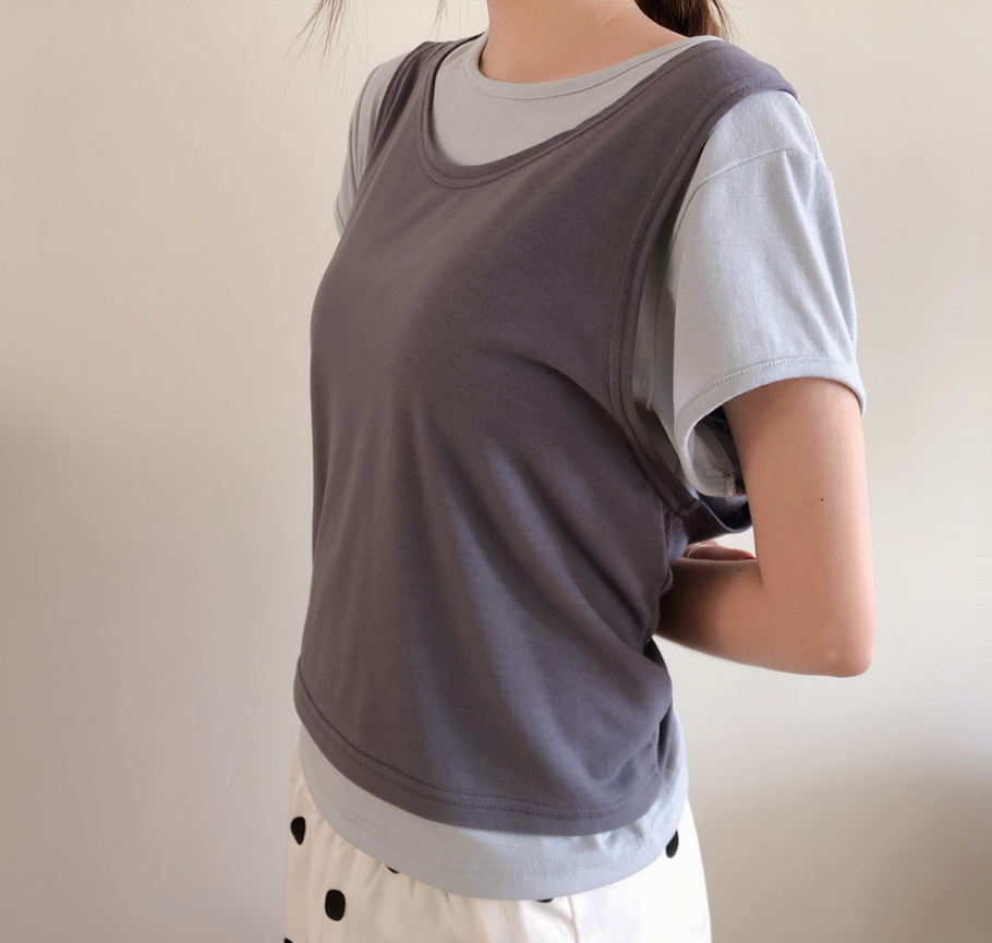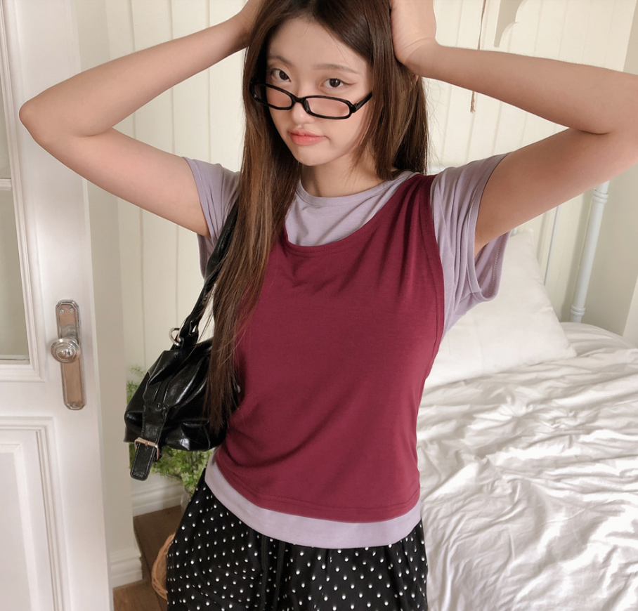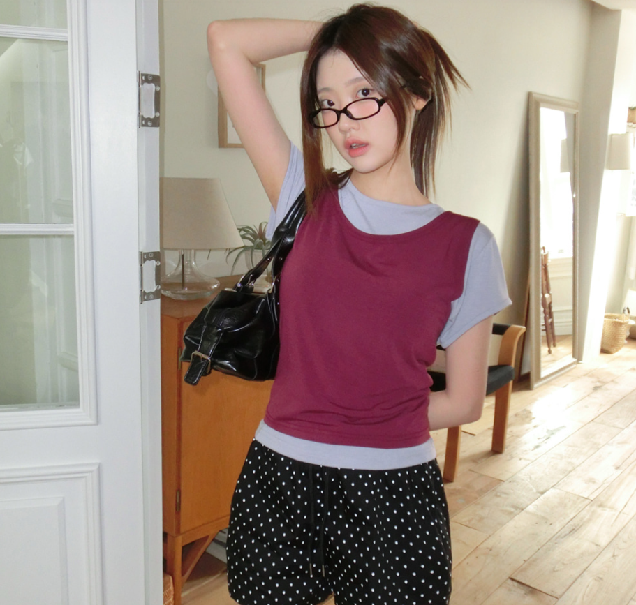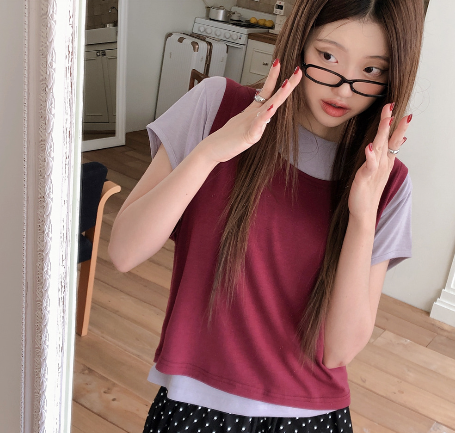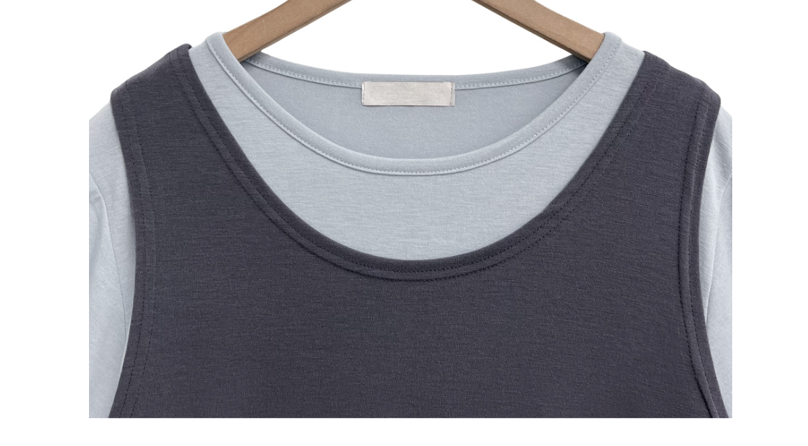 (•‾⌣‾•)懶人穿搭福音💕假兩件式設計❤️復古時髦撞色一件穿出層次感