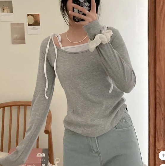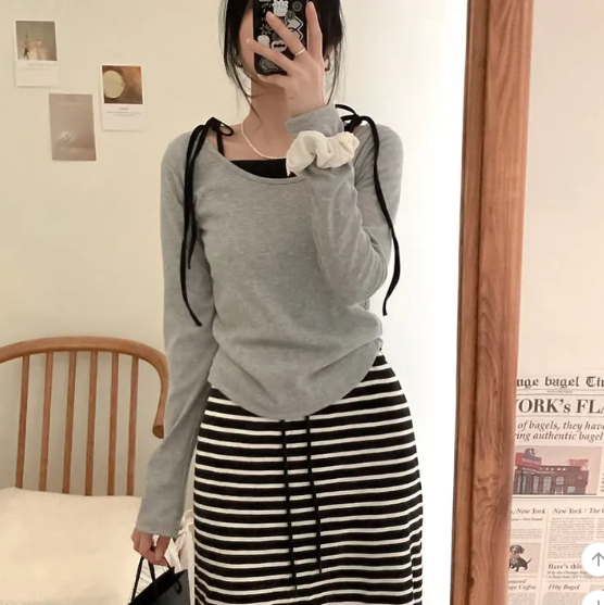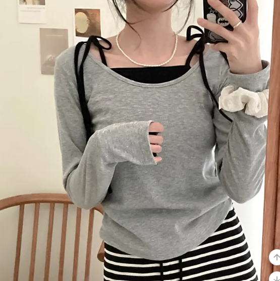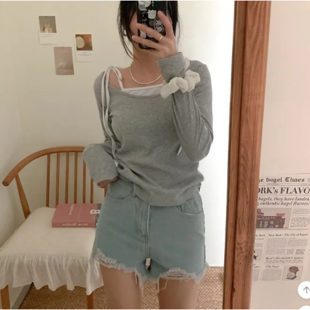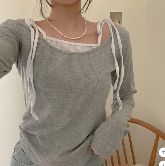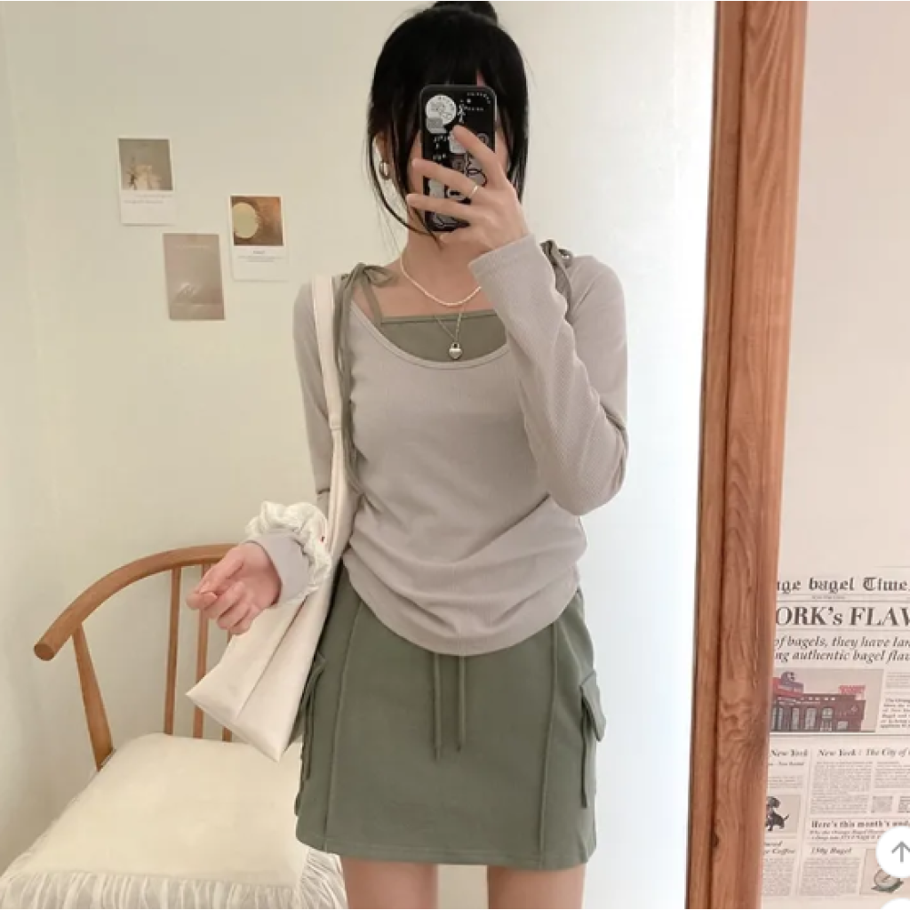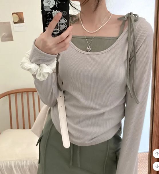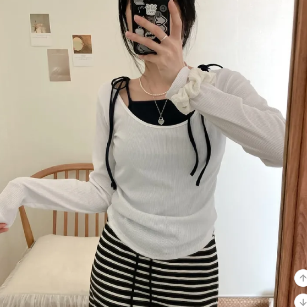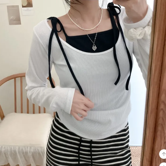 長袖T恤配綁帶背心【5色入】【買一送一】