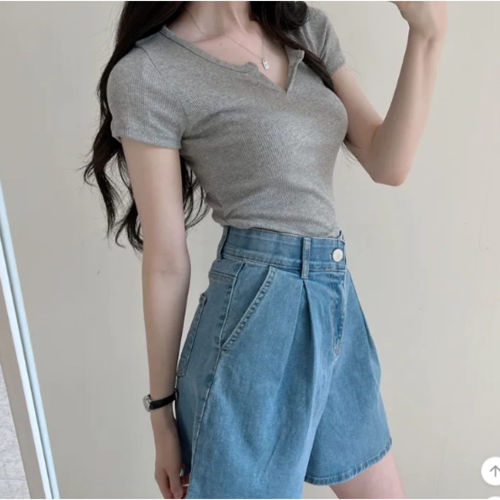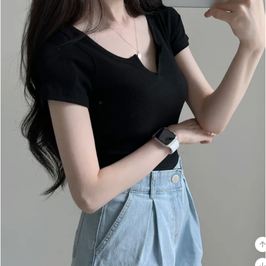 (•‾⌣‾•)小心機小V領設計不經意地流露性感💕設計貼身顯瘦完美勾勒身材曲線❤️