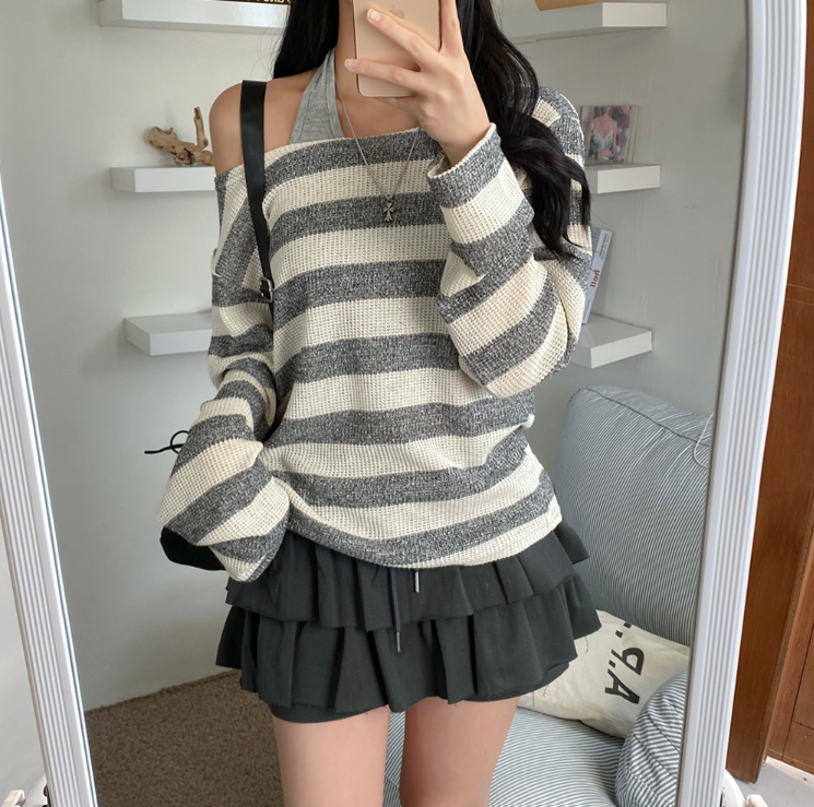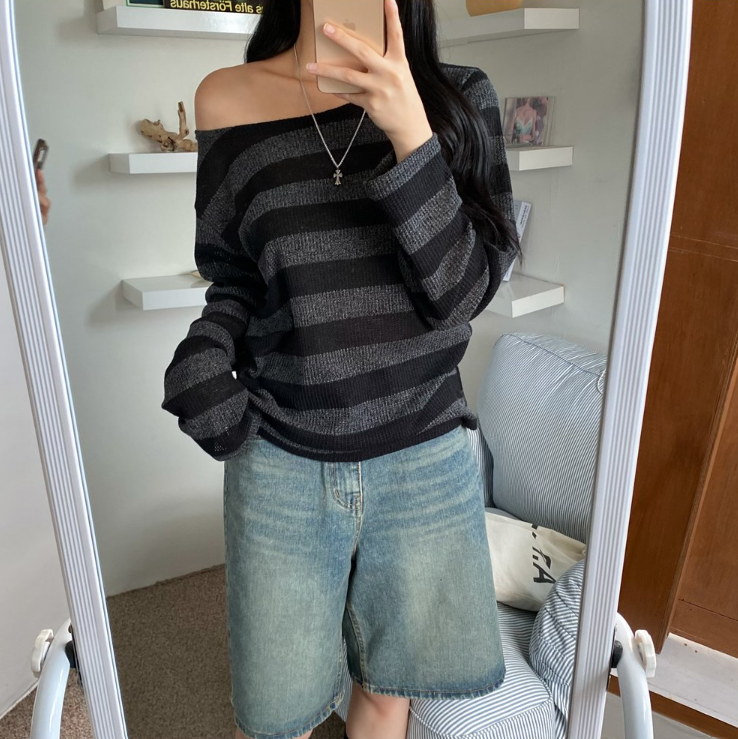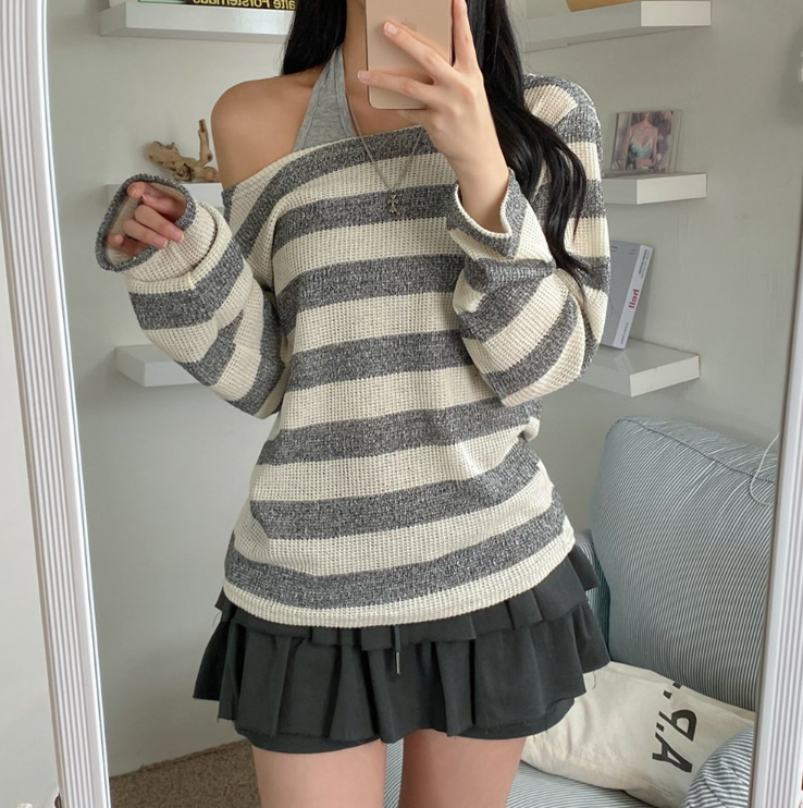 (●ˇ∀ˇ●)寬鬆款式有慵懶既感覺💕條紋設計拼色有獨特的感覺❤️