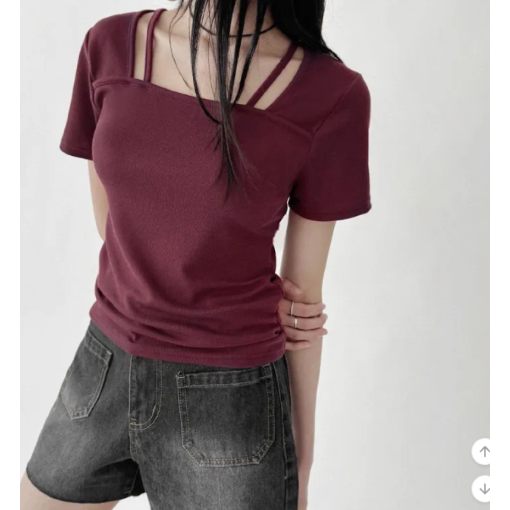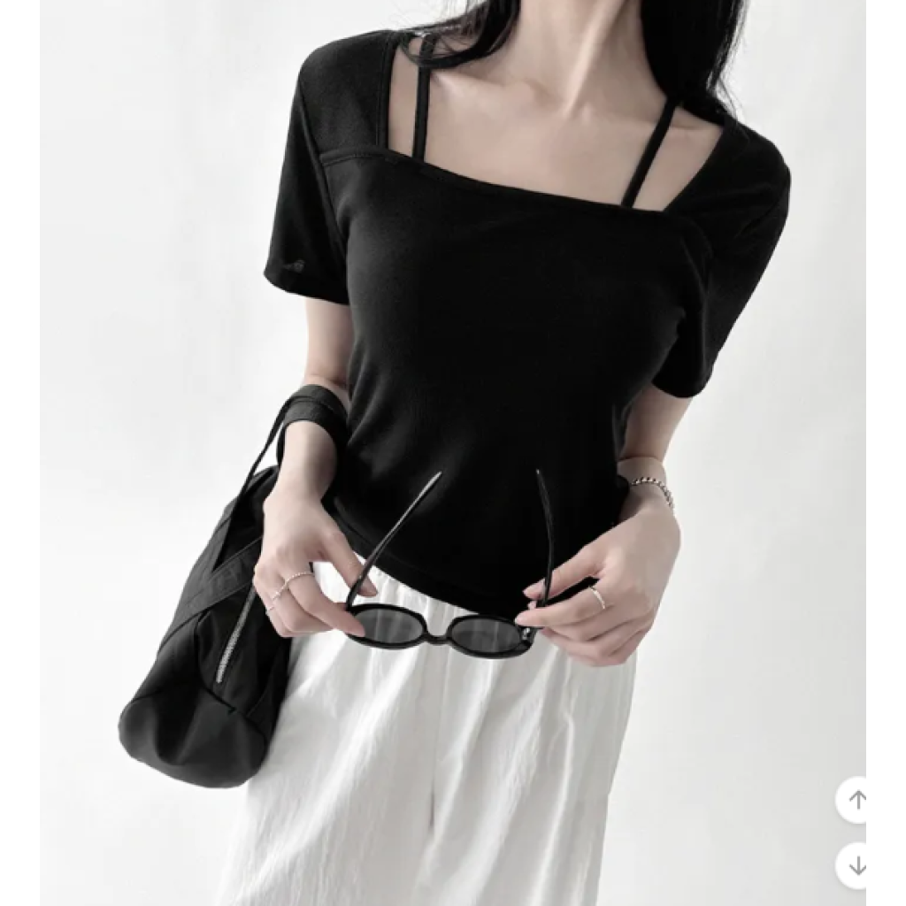 (•‾⌣‾•)心機方領吊帶設計💕完美展現肩頸線條❤️小性感得恰到好處