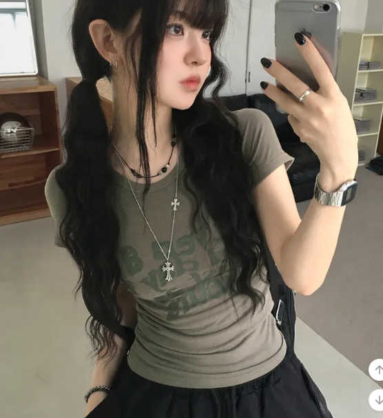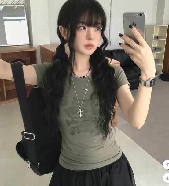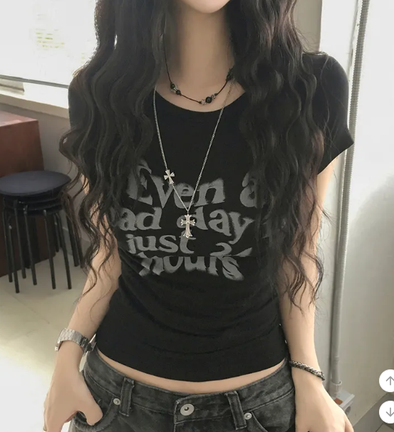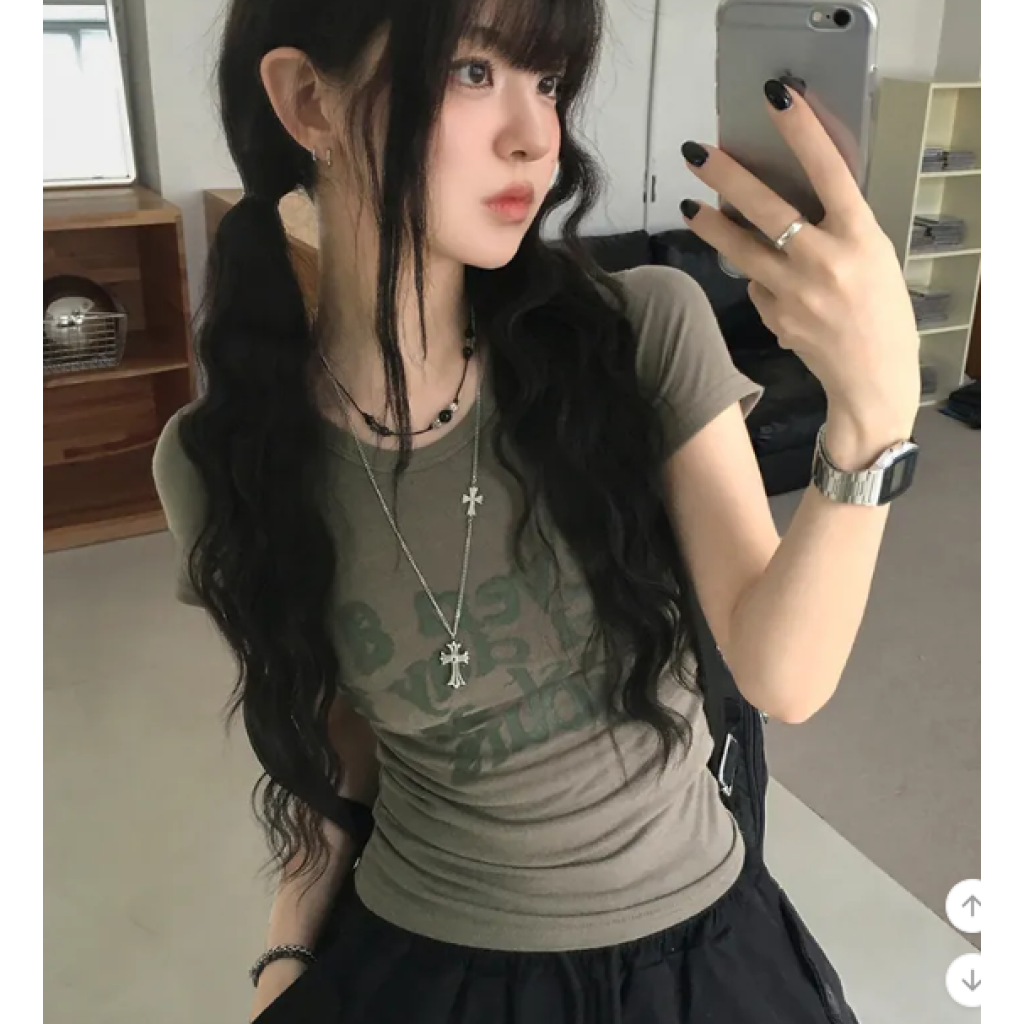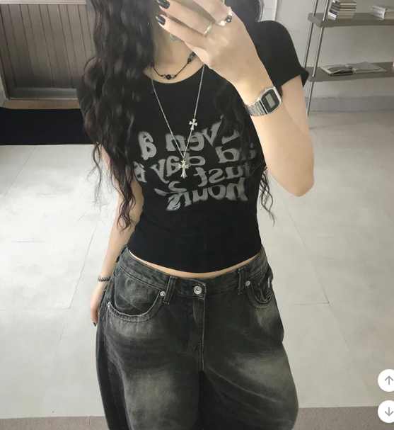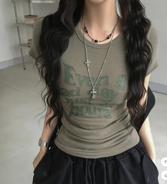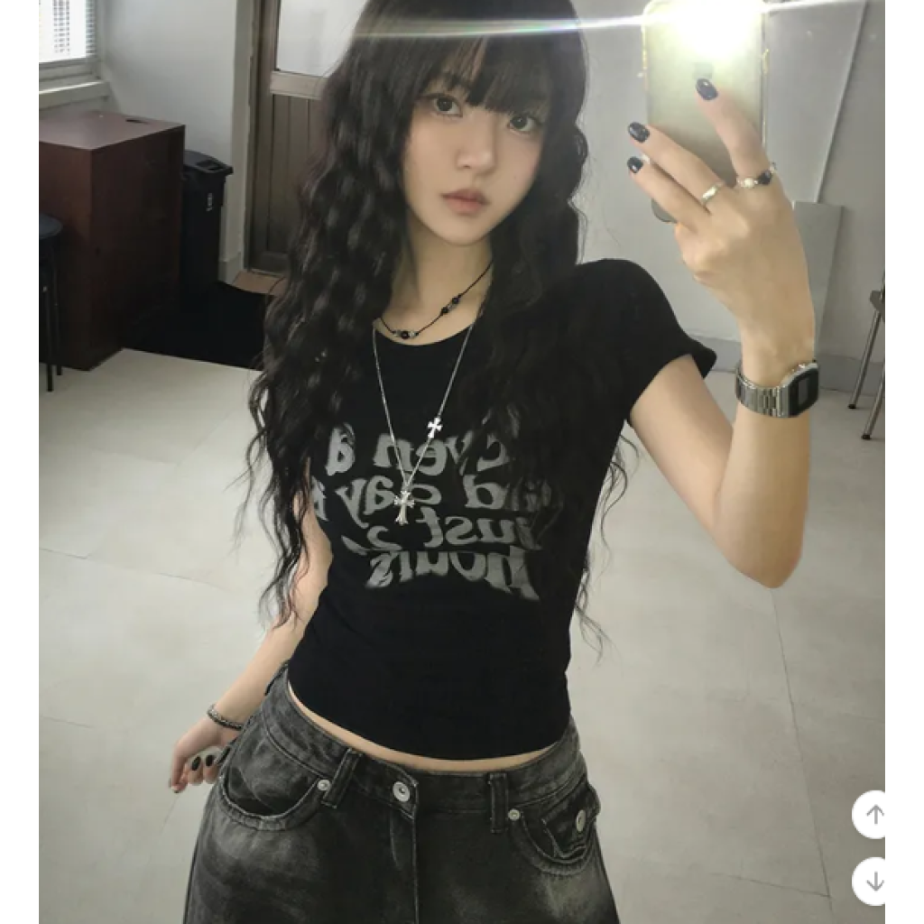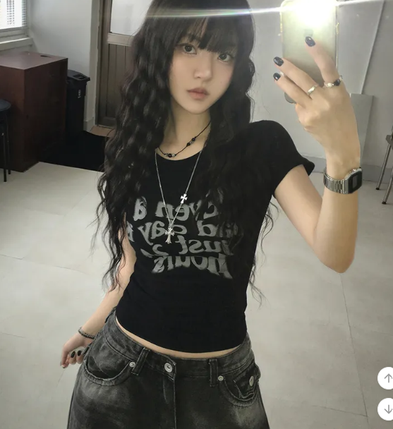 (•‾⌣‾•)Y2K必備復古字母T恤❤️完美凸顯身材曲線💕視覺超顯瘦