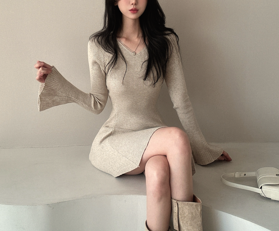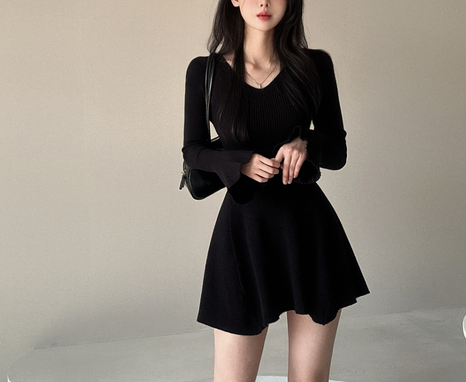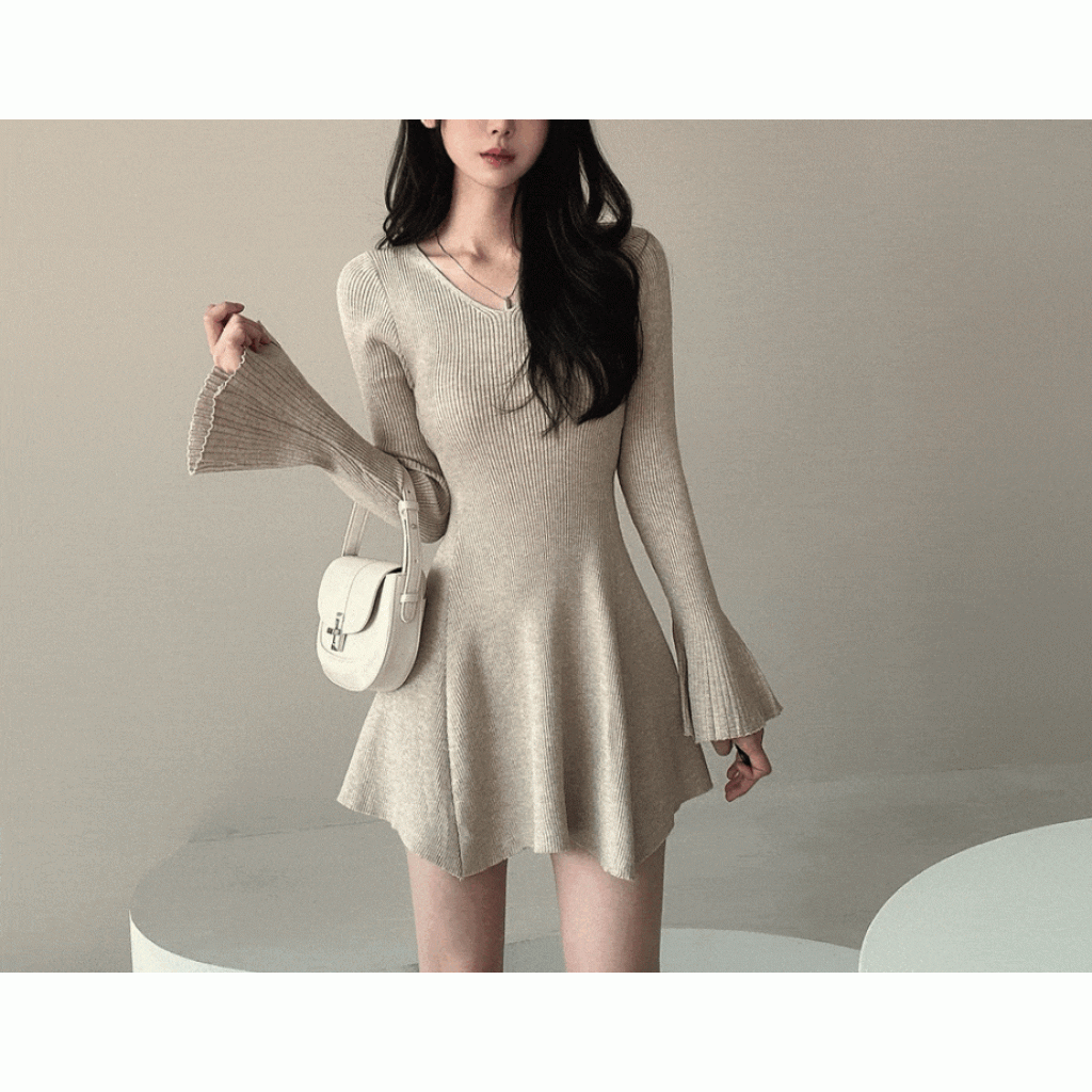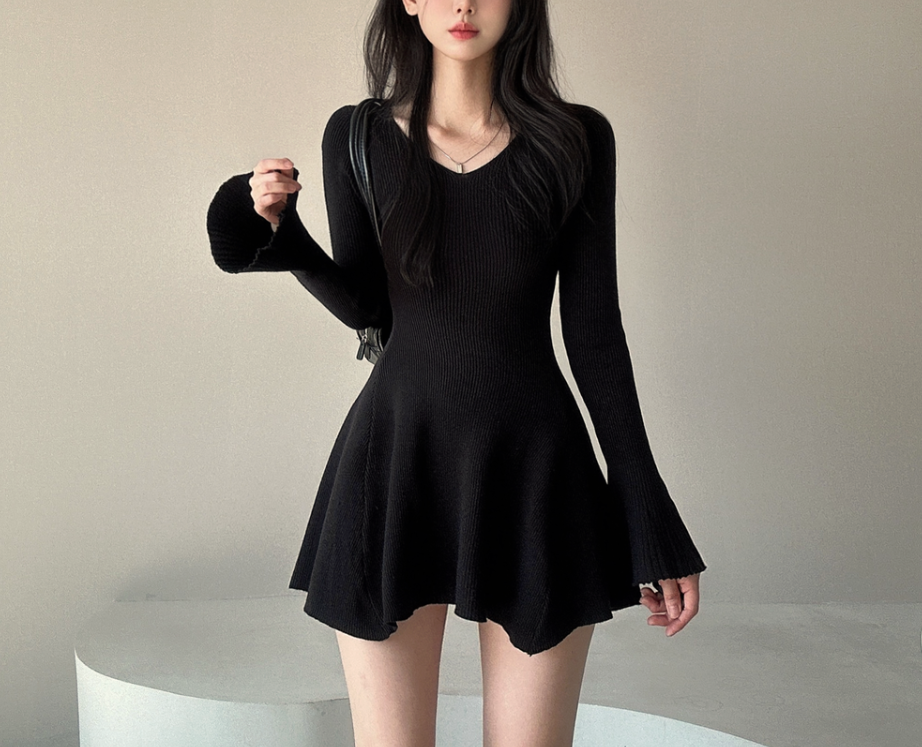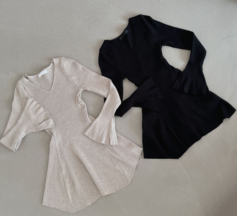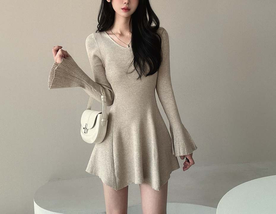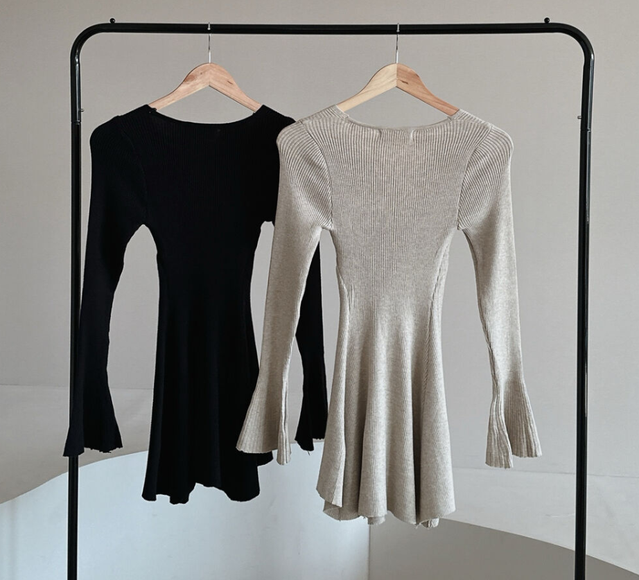 (●'◡'●)喇叭款式設計既連身裙可以有效修飾下身身形💕而且針織物料有垂感更好睇❤️
