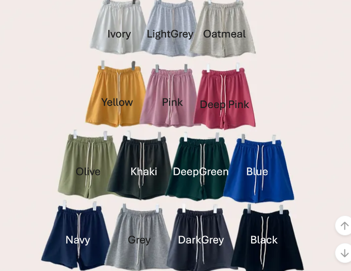 Ivory / Light Grey / Oatmeal / Pink / Deep Pink / Yellow / Olive / Deep Green / Khaki / Grey / Dark Grey / Blue / Navy / Black