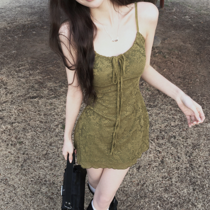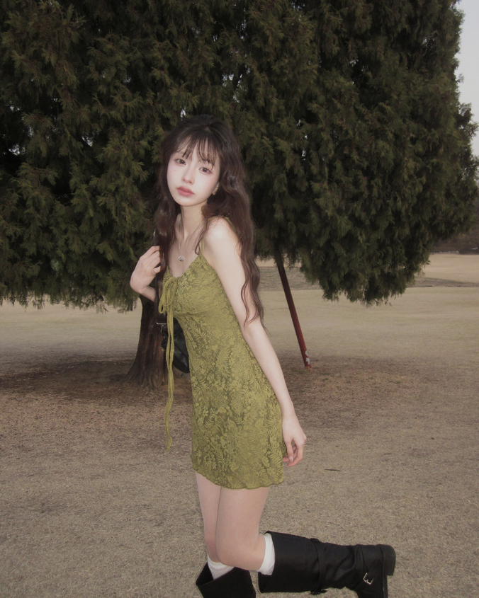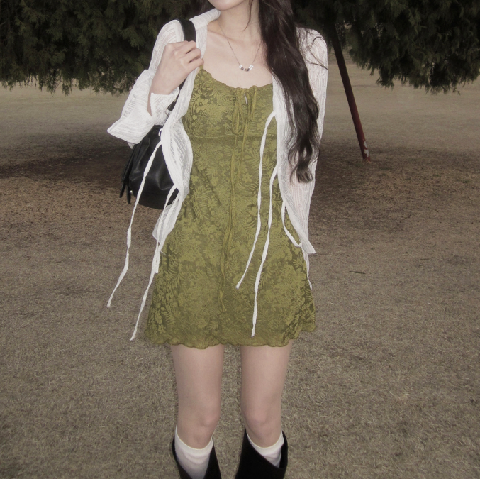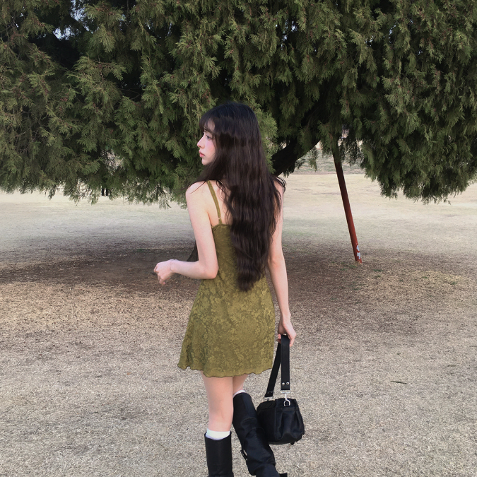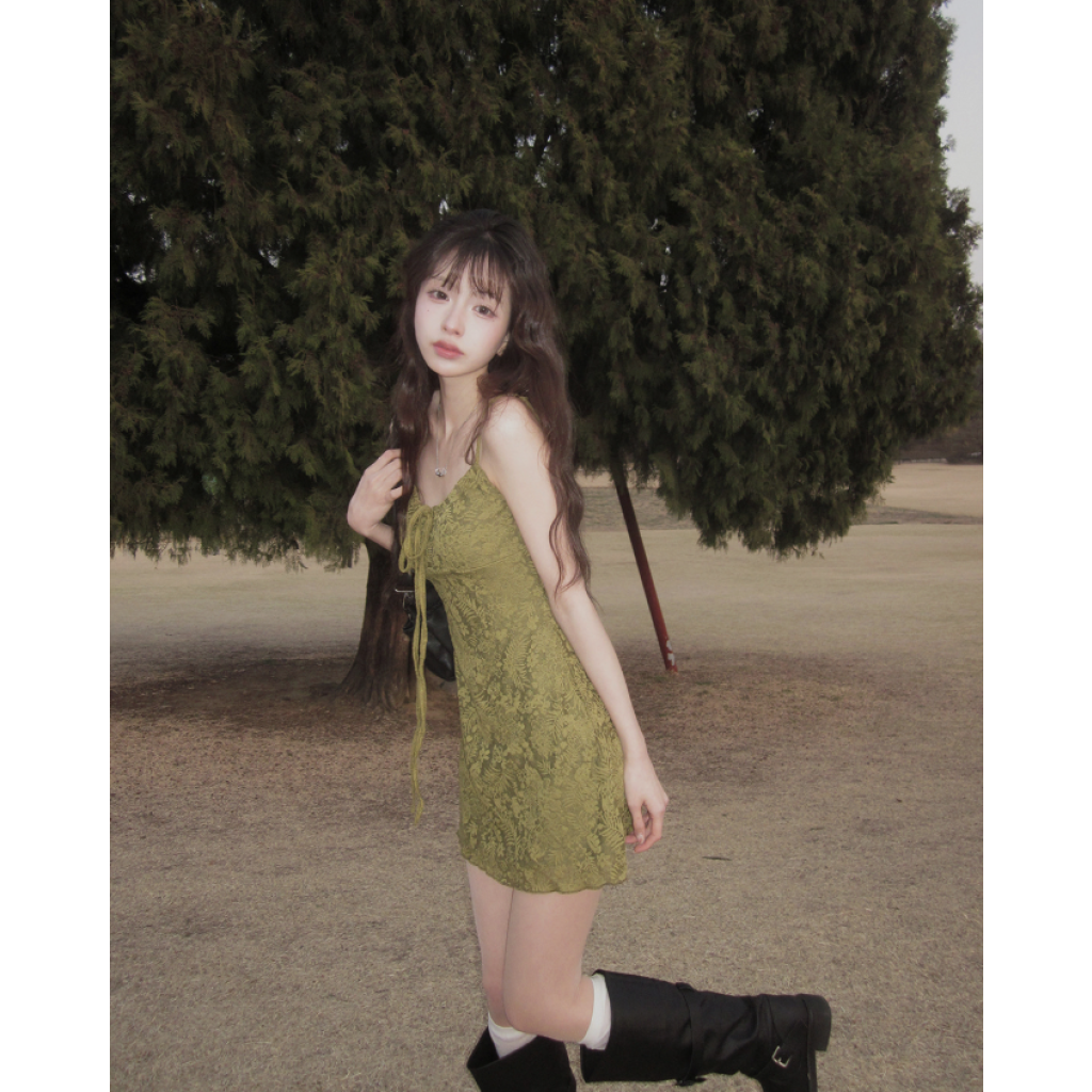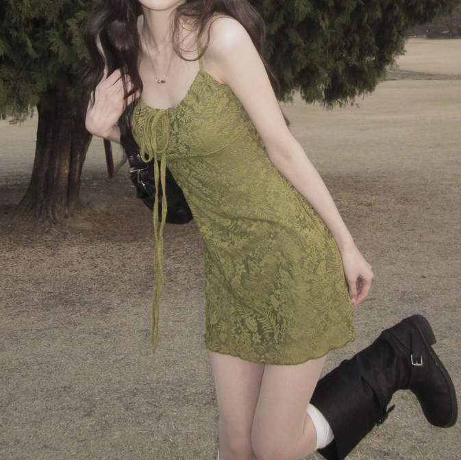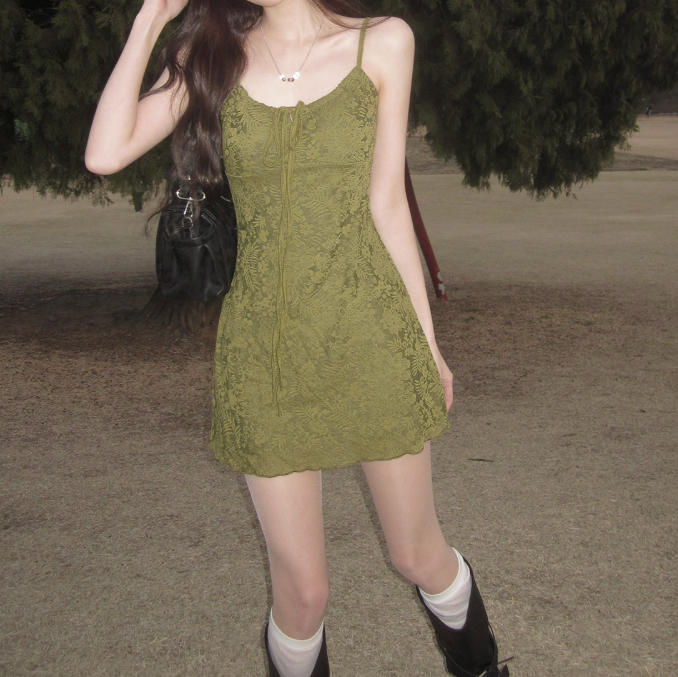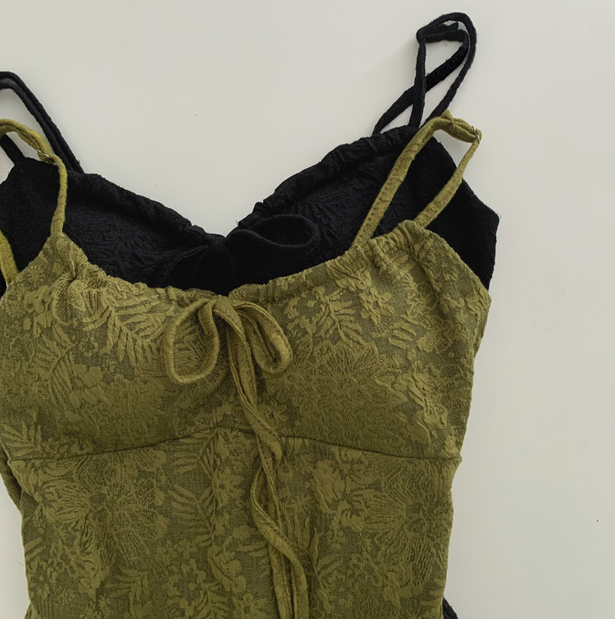 暗花吊帶連身裙【2色入】【附胸墊】