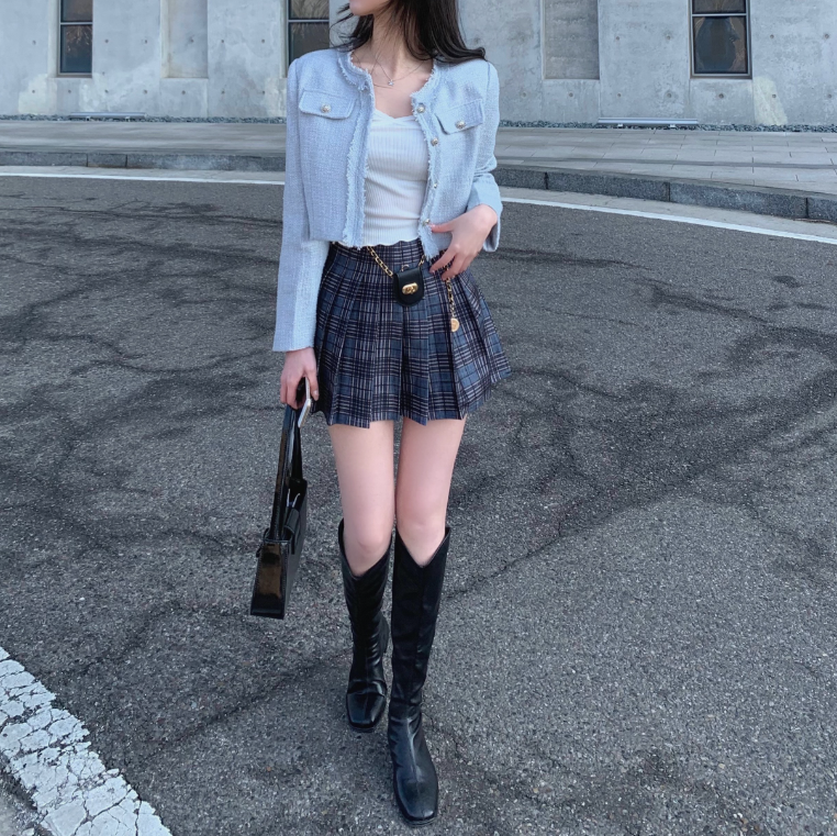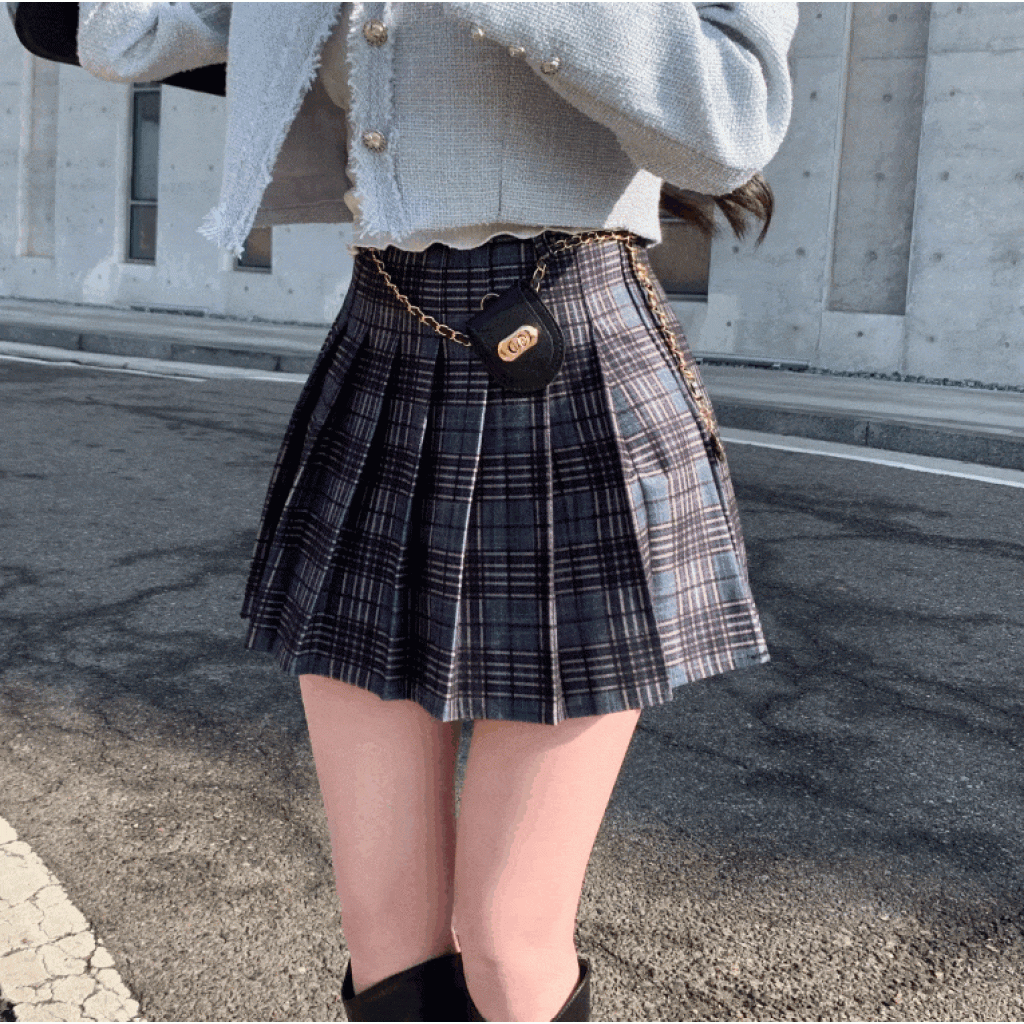 小腰包鏈配格仔裙 - 現貨