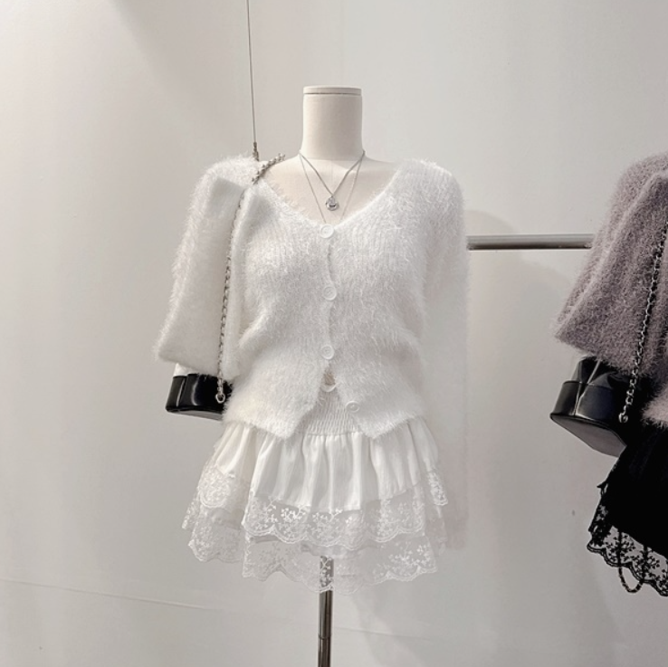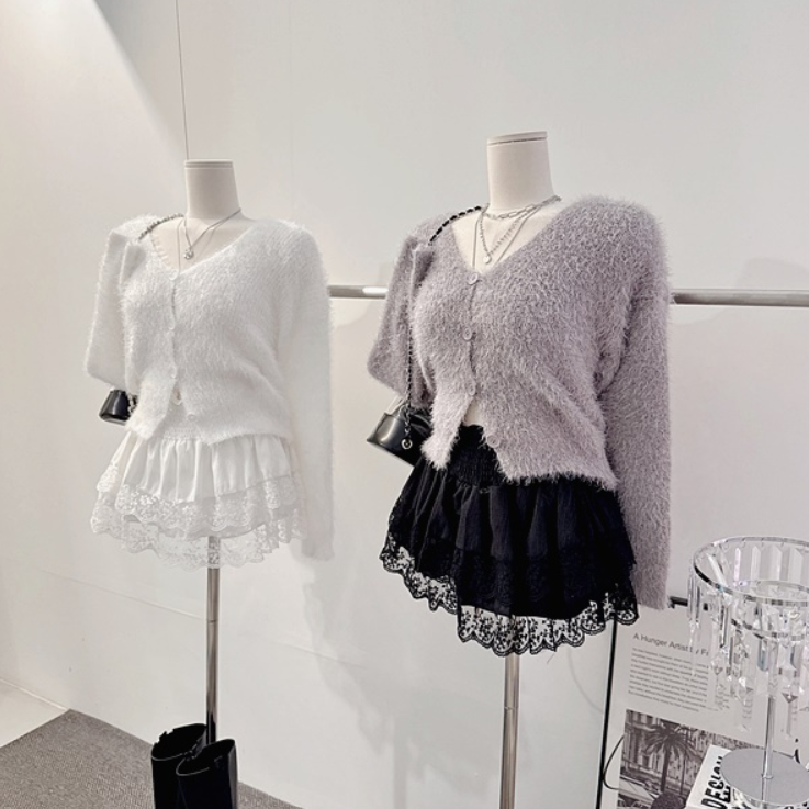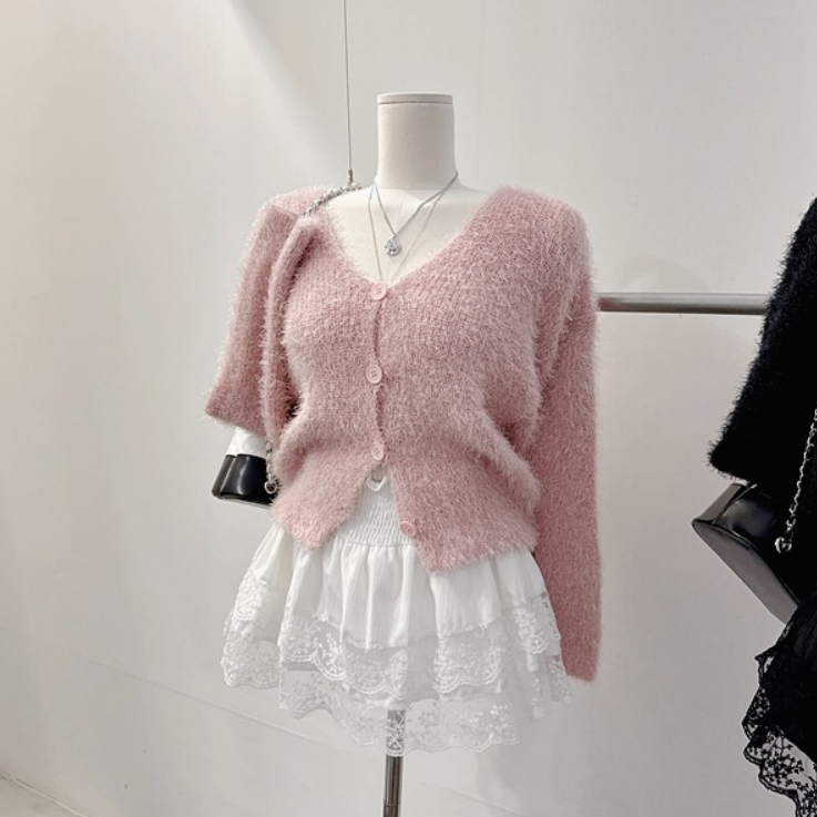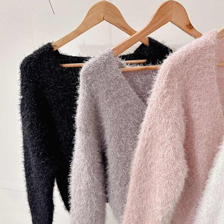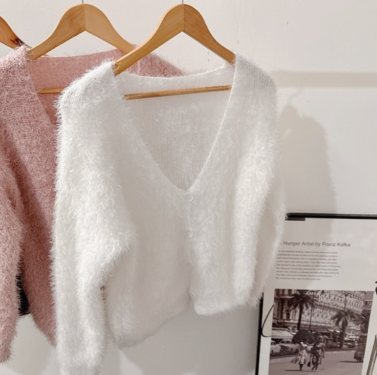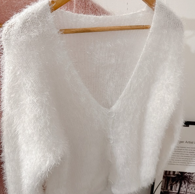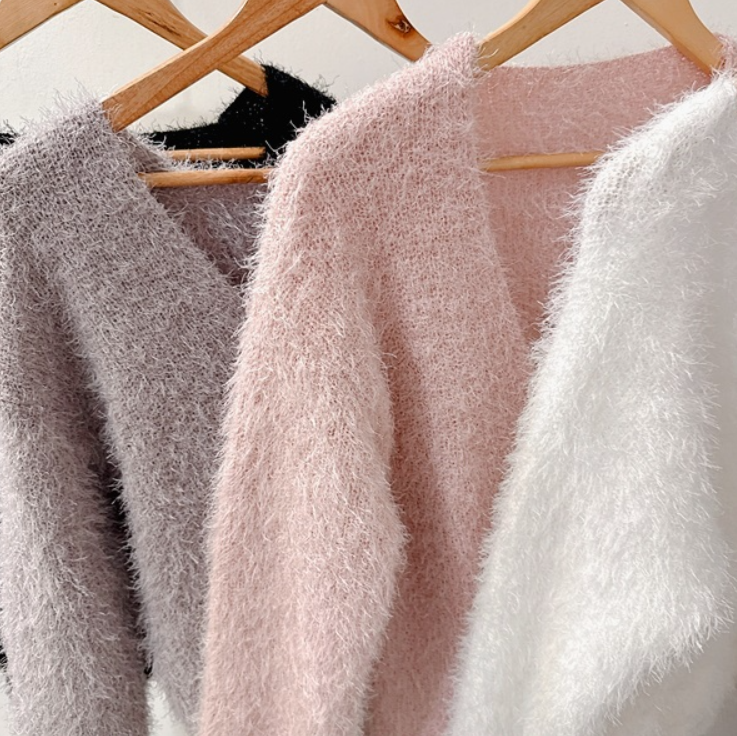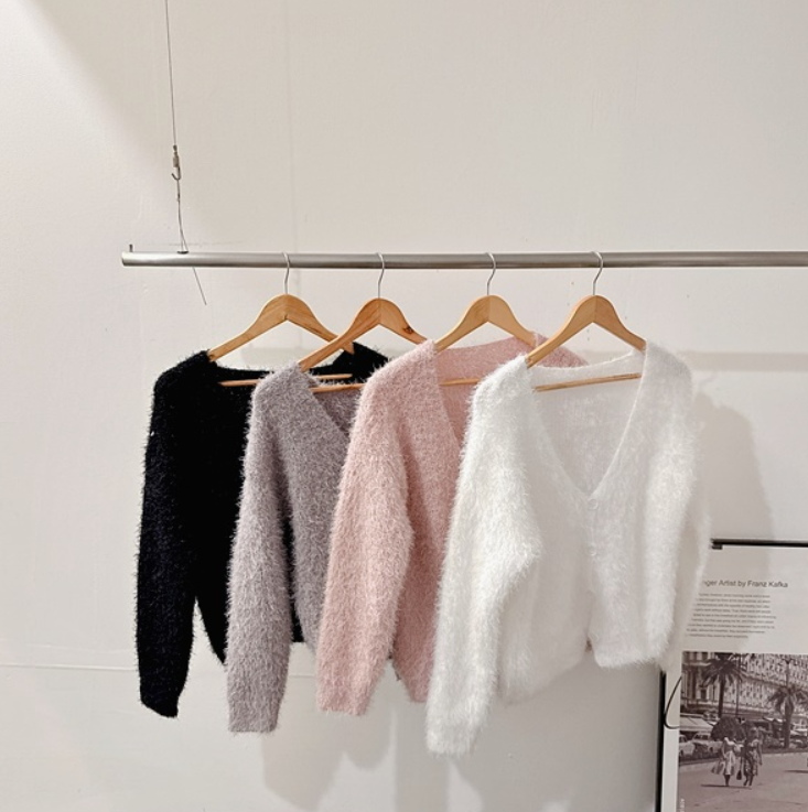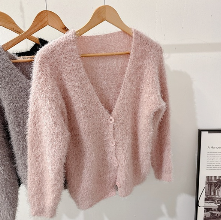 水貂毛V領寬鬆素色針織衫