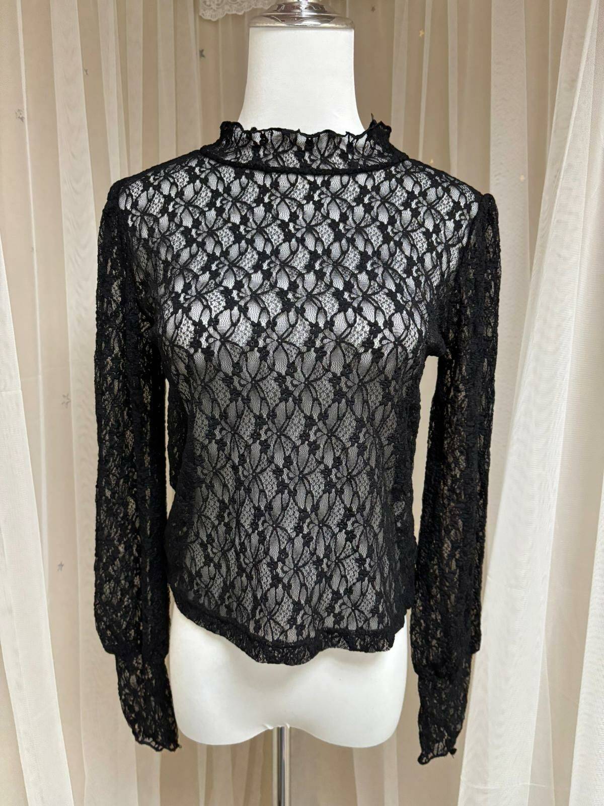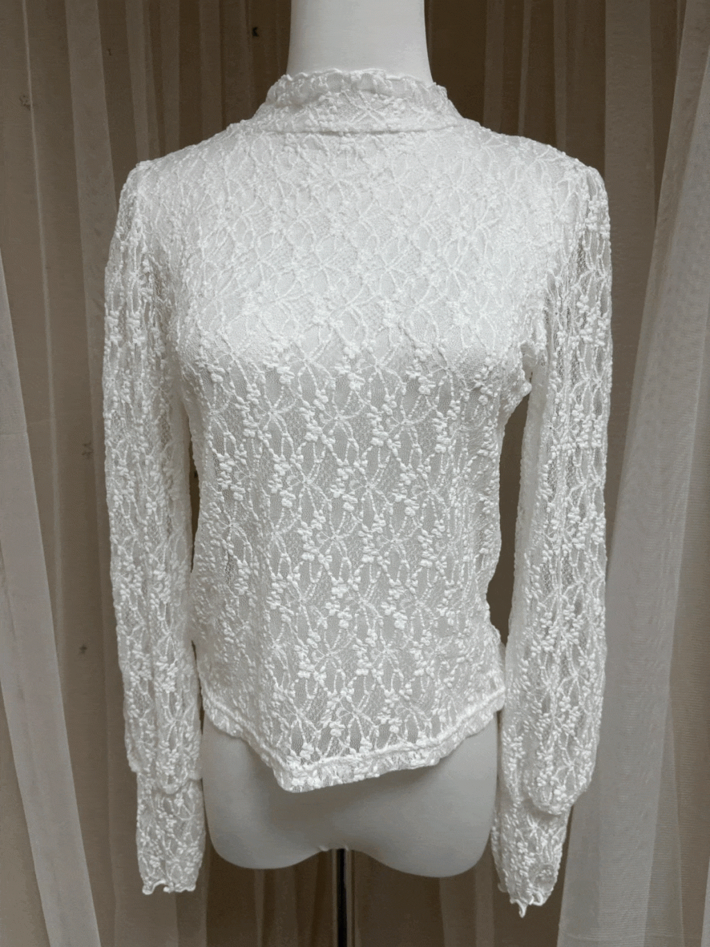 半高領內搭透視暗花上衣