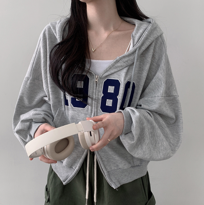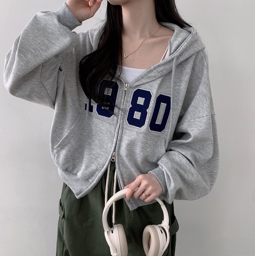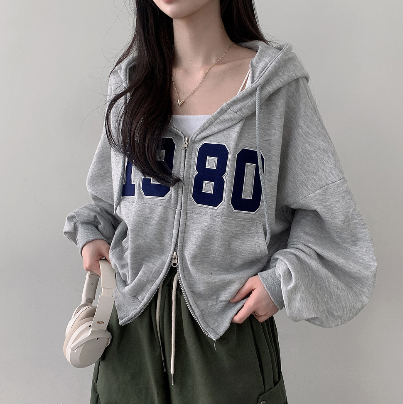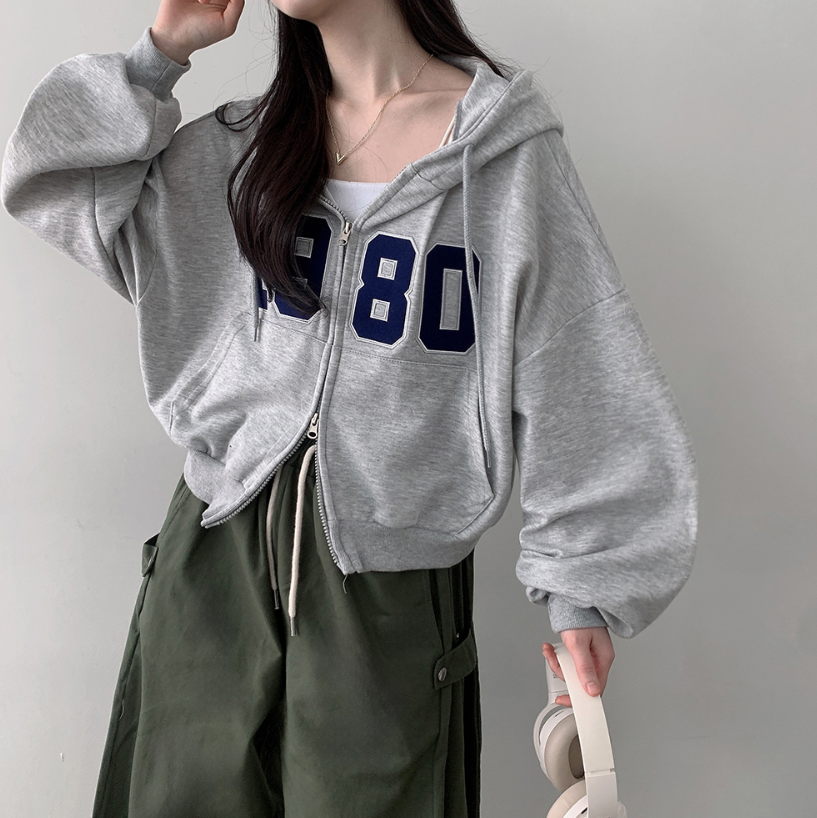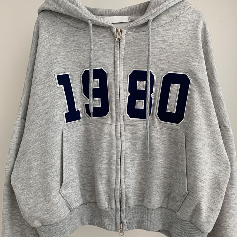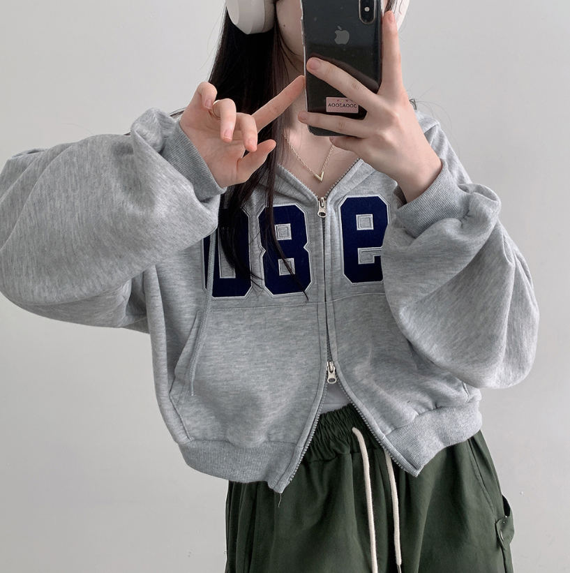 寬鬆刺繡雙拉鍊連帽外套
