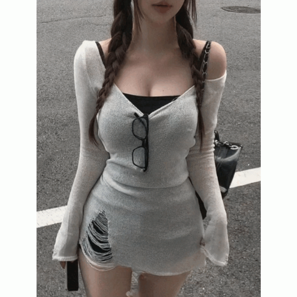 (•‾⌣‾•)貼身薄針織衫❤️有點復古Y2K風格💕