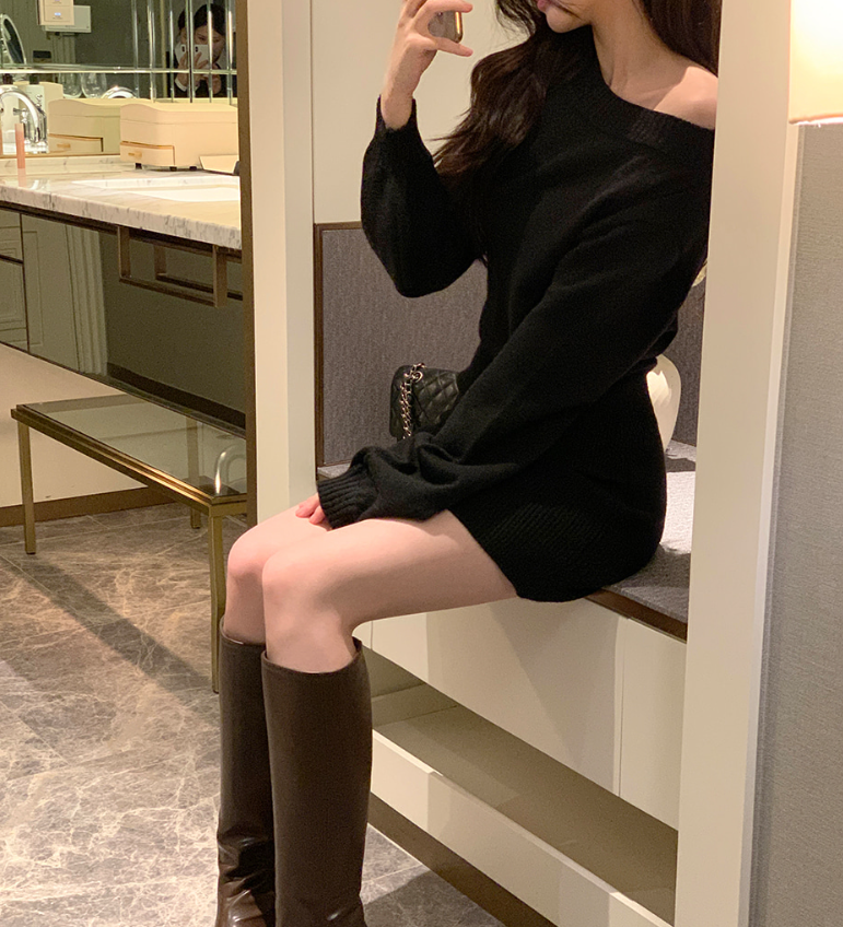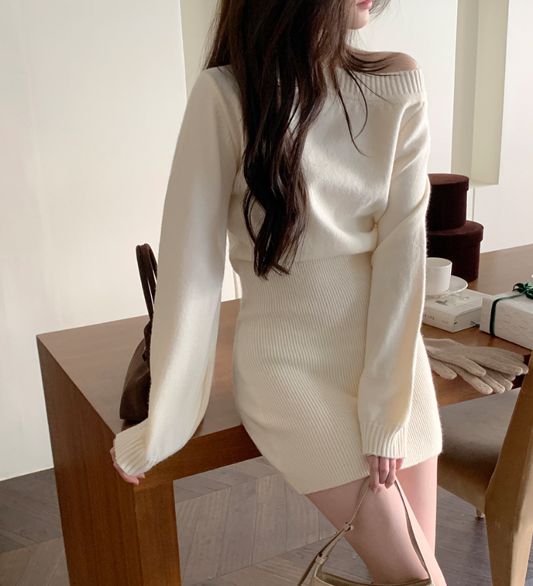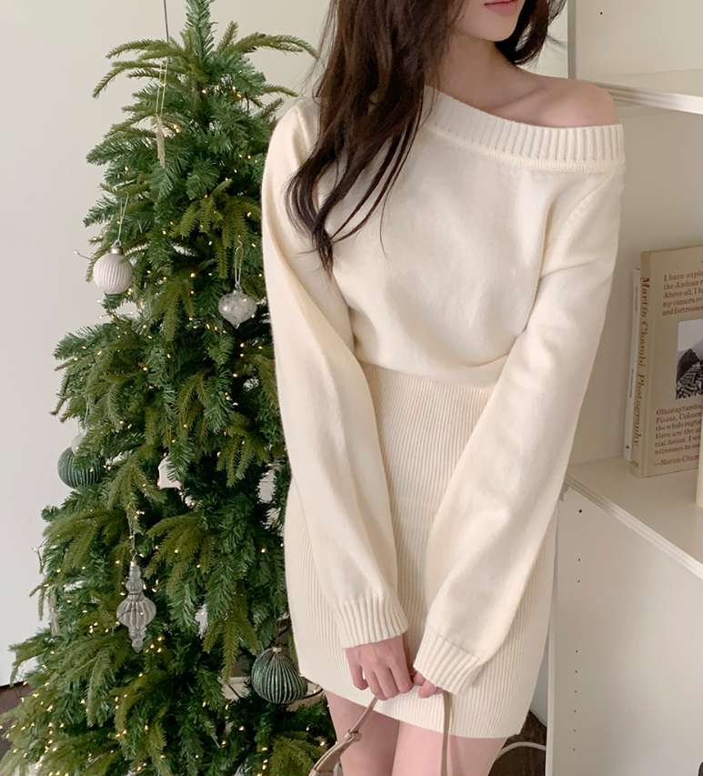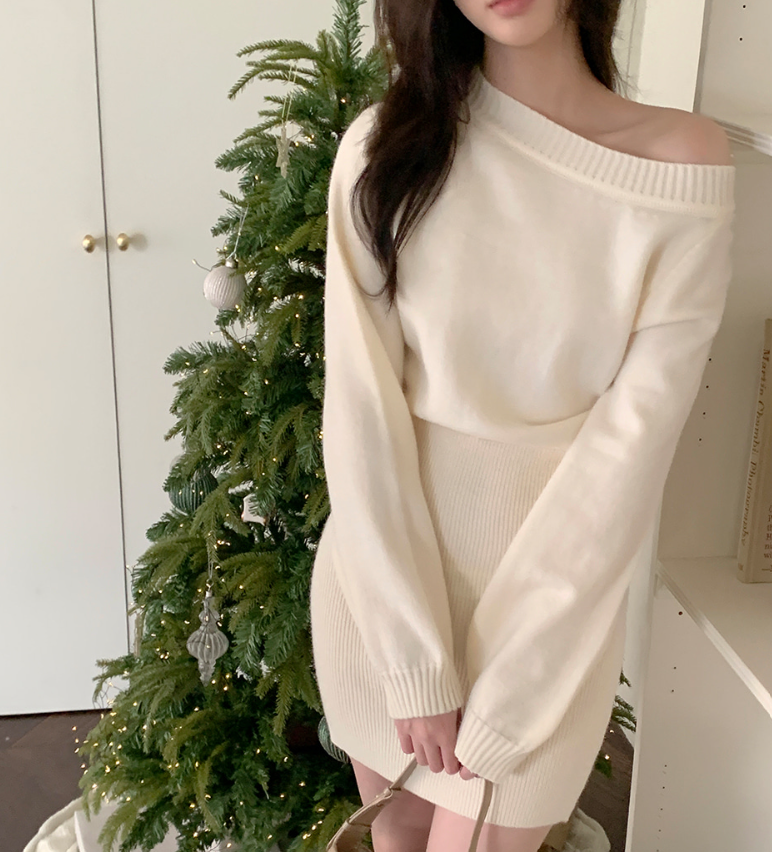 ₍˄·͈༝·͈˄₎◞︎ ̑̑斜露肩加上上闊下窄設計可以有效凸顯身材線條❤️而且針織物料好保暖💕