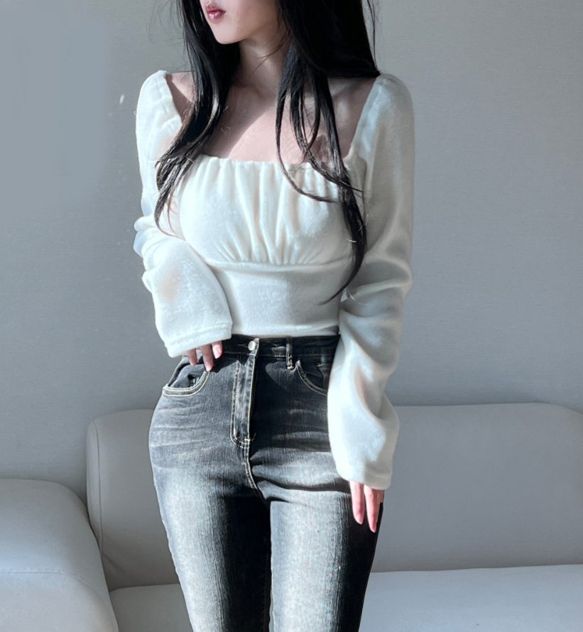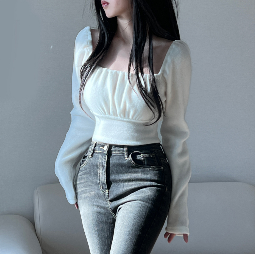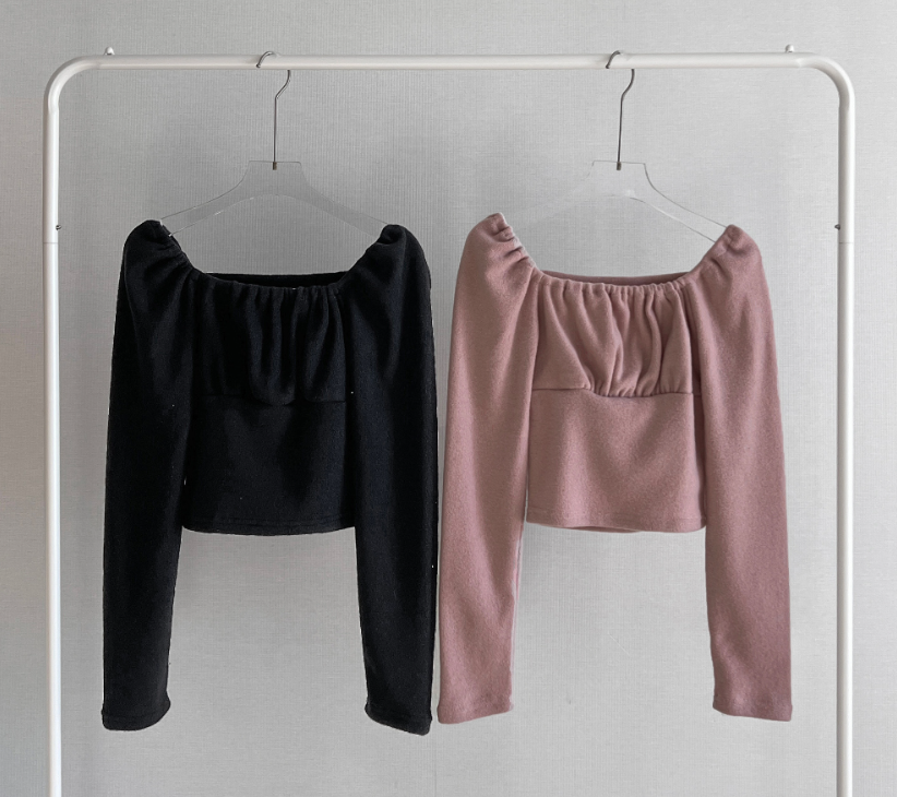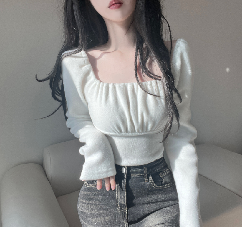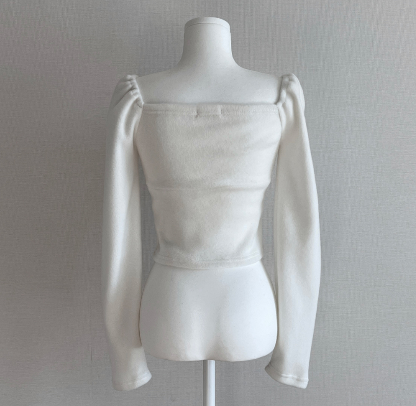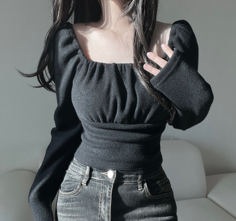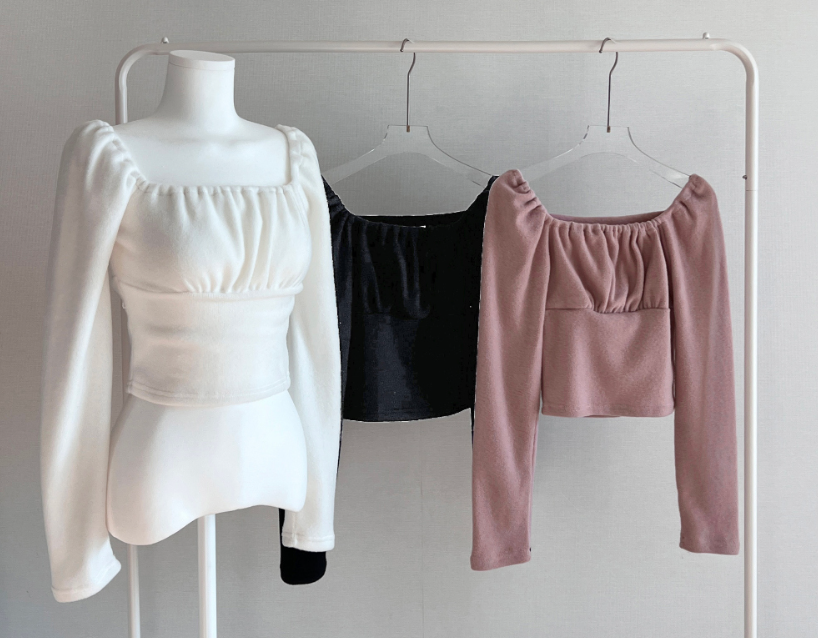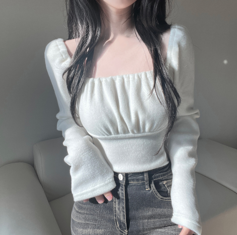 (•‾⌣‾•)橡筋方領設計可以凸顯鎖骨位置更顯瘦💕絨面質地既柔軟又保暖❤️