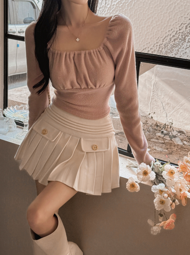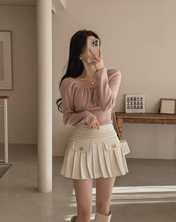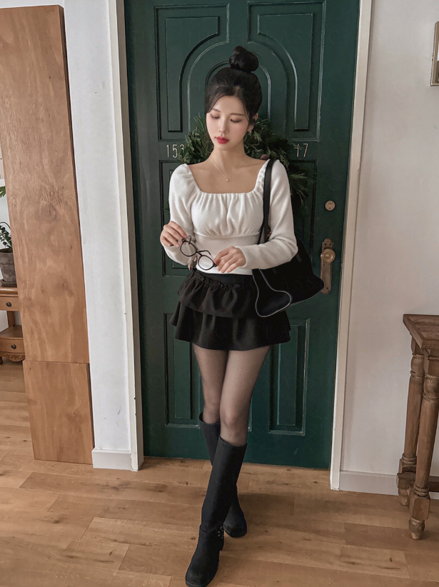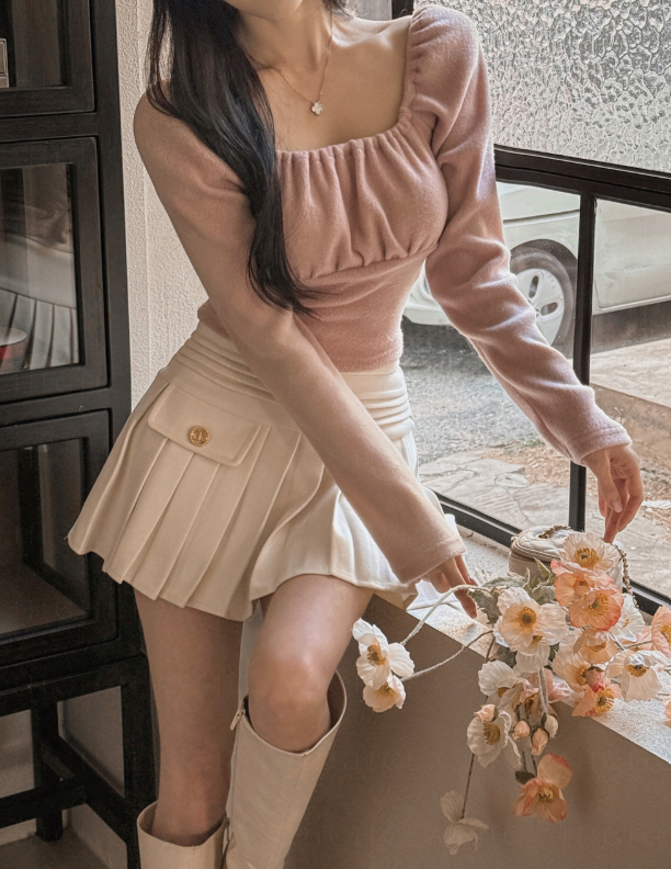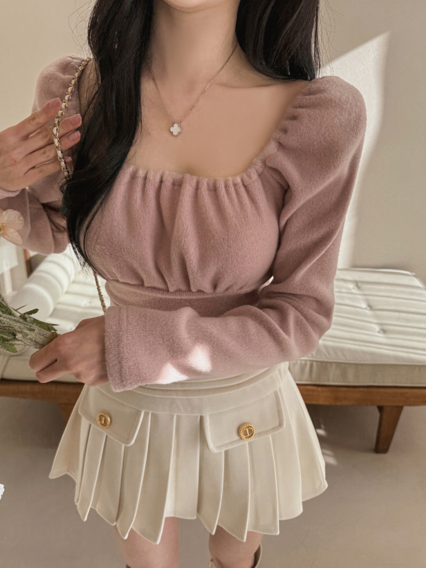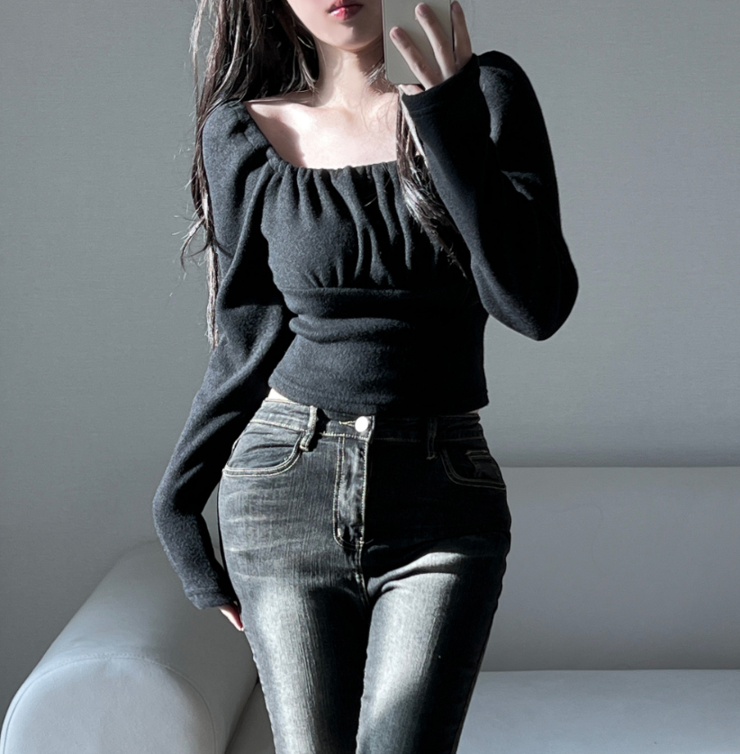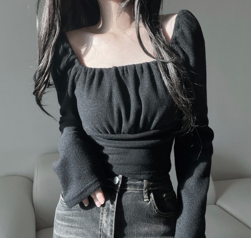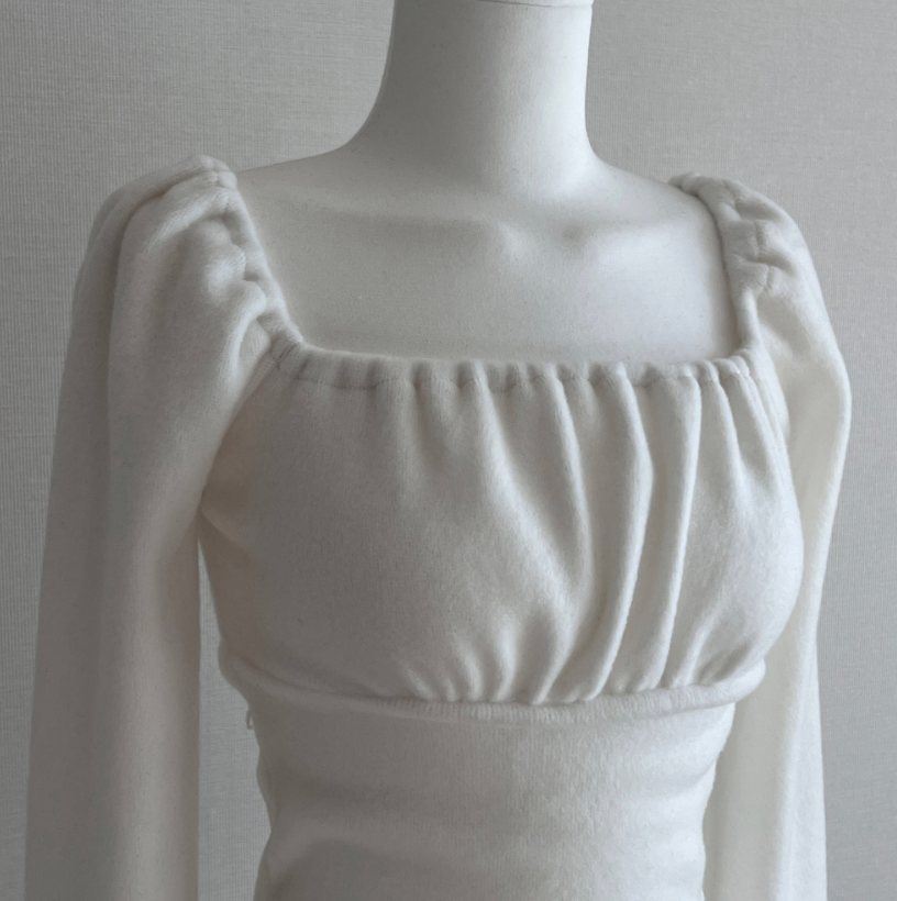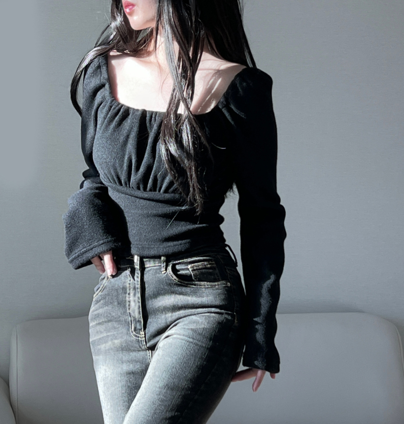 (•‾⌣‾•)橡筋方領設計可以凸顯鎖骨位置更顯瘦💕絨面質地既柔軟又保暖❤️