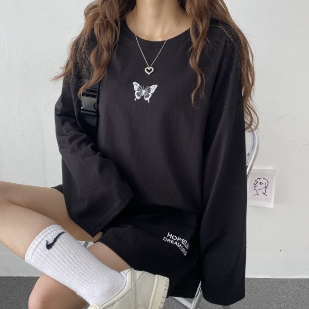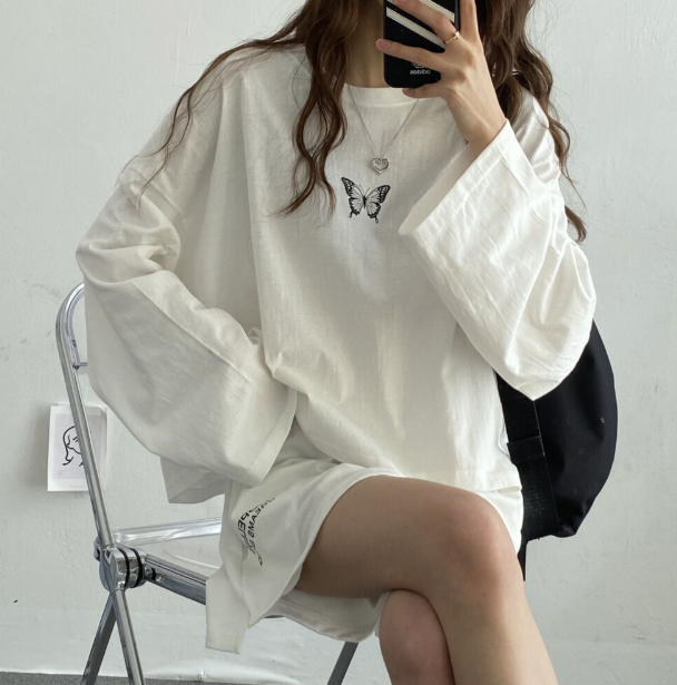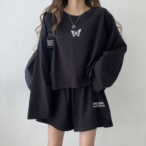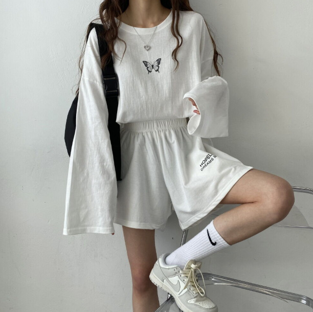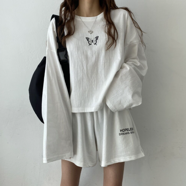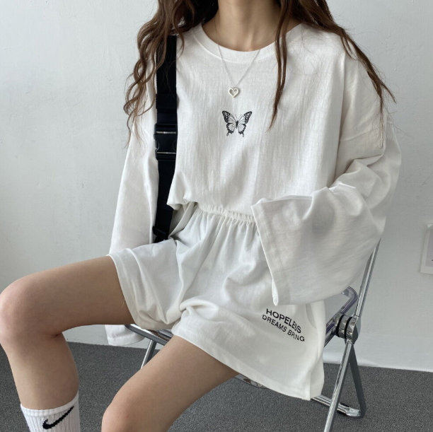 蝴蝶休閒長袖配短褲套裝