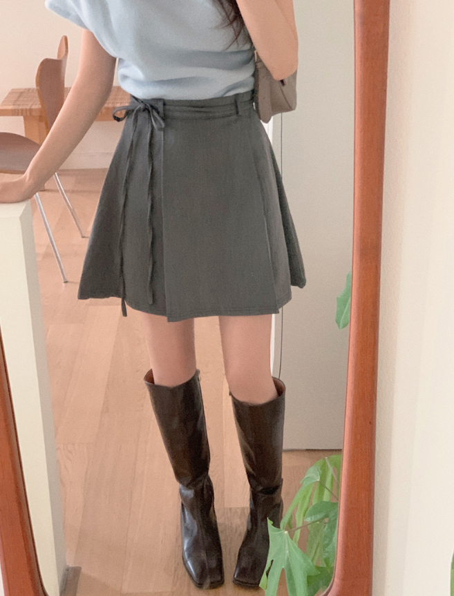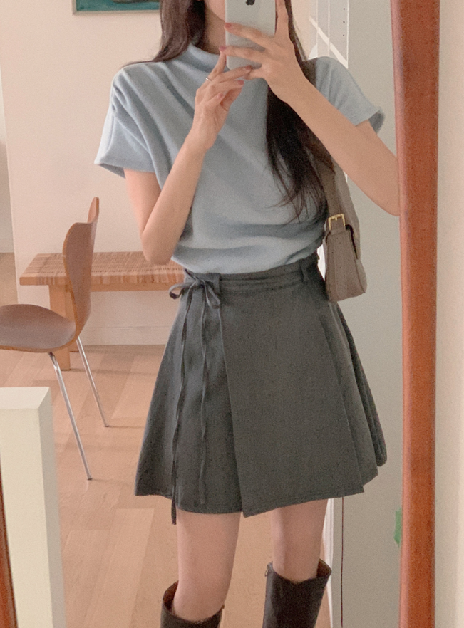 兩色綁帶蝴蝶結百褶裙【S-2XL】