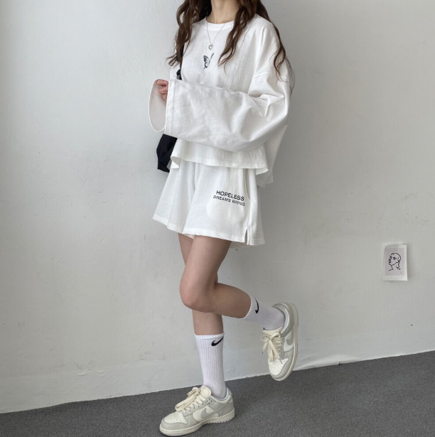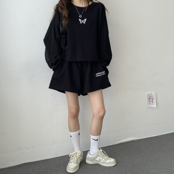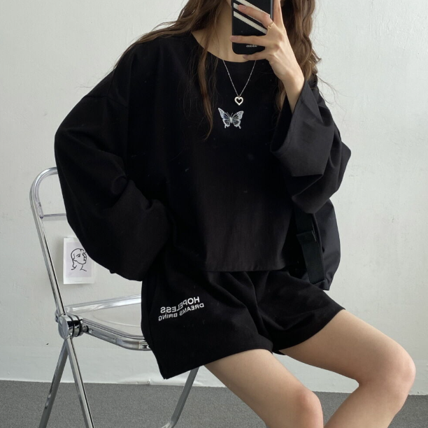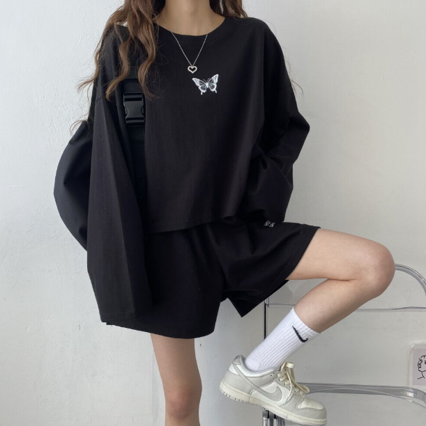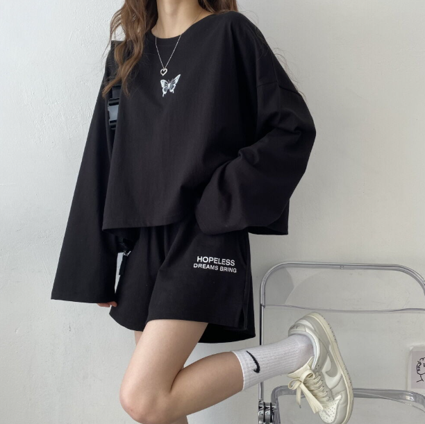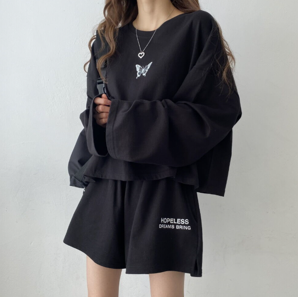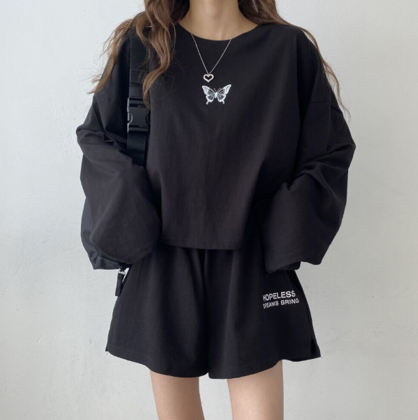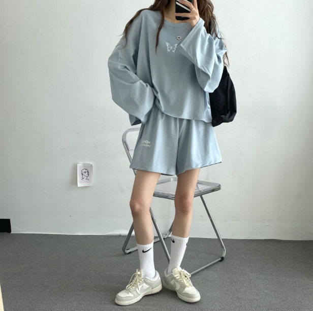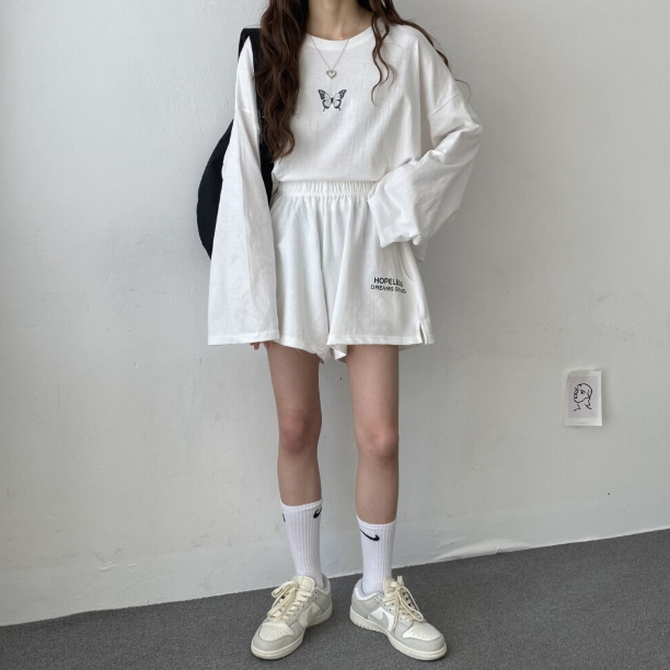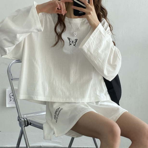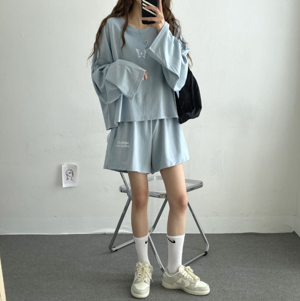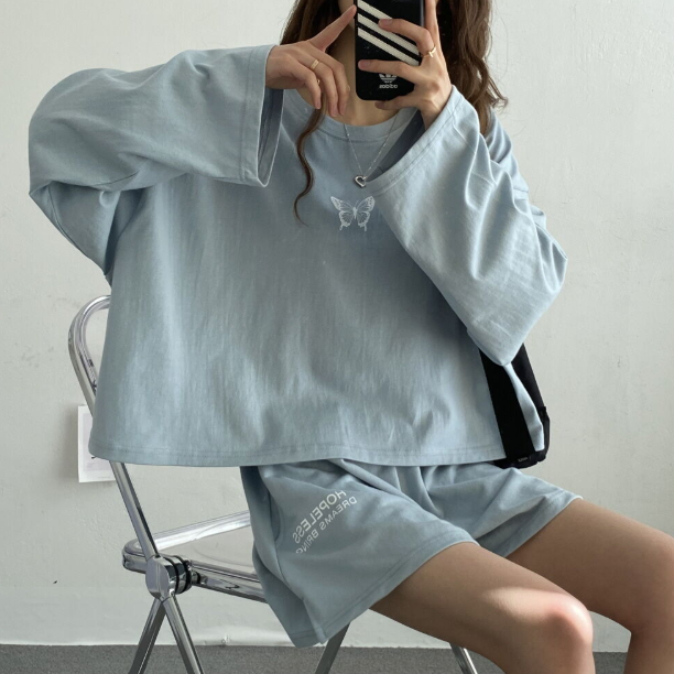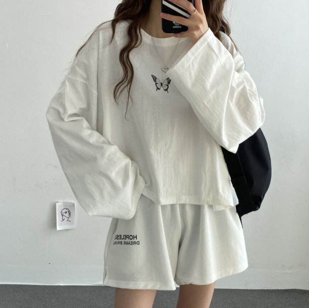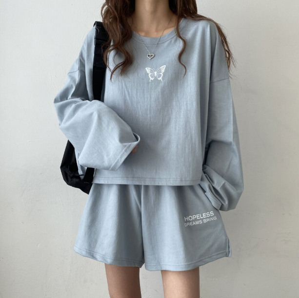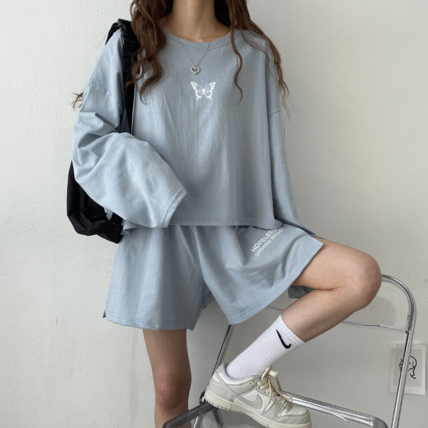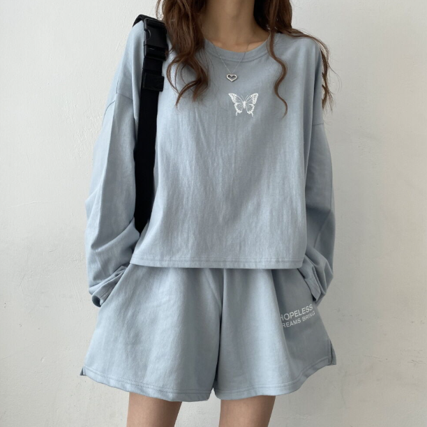 蝴蝶休閒長袖配短褲套裝 - 現貨
