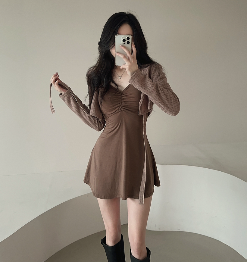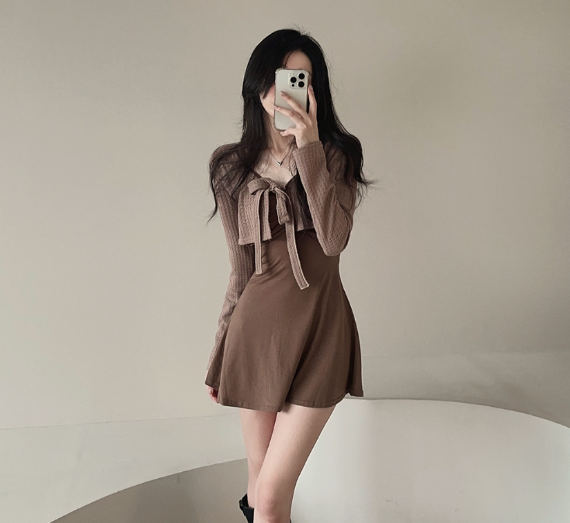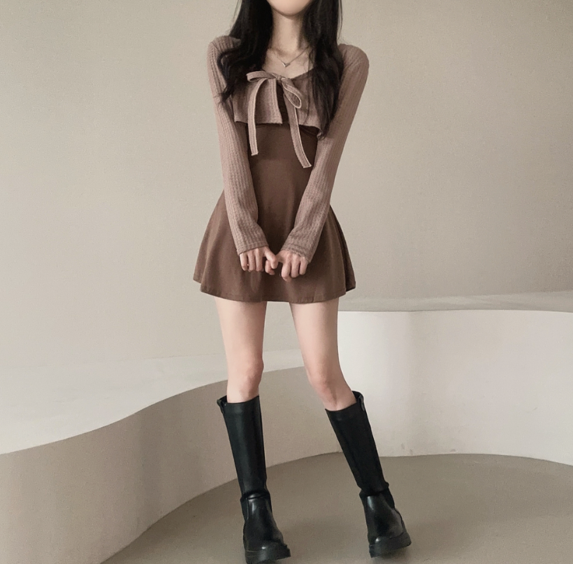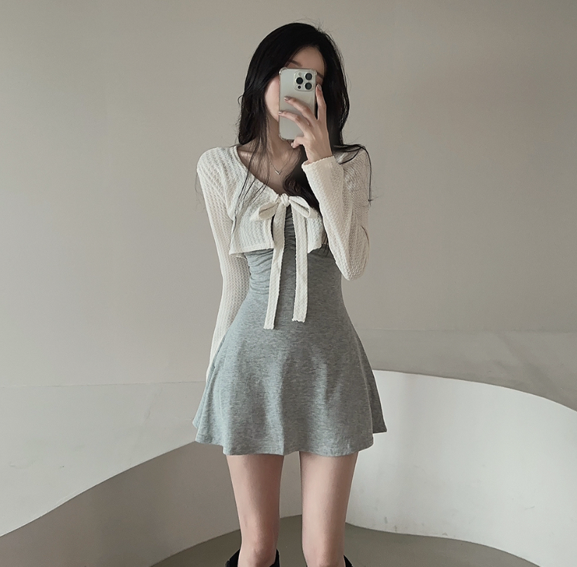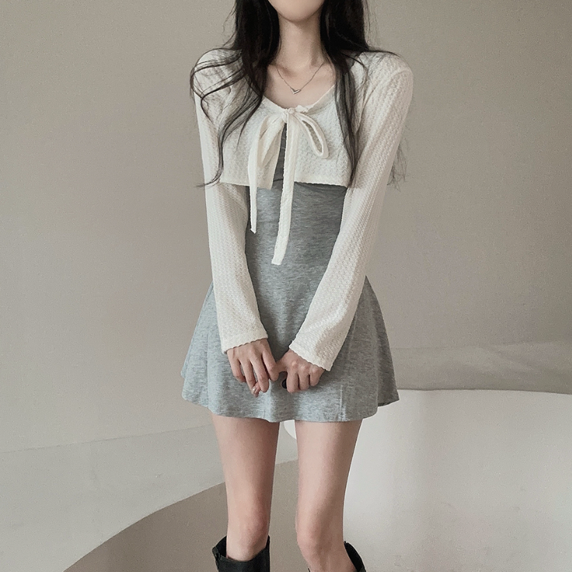 拼色綁帶外套配連身裙