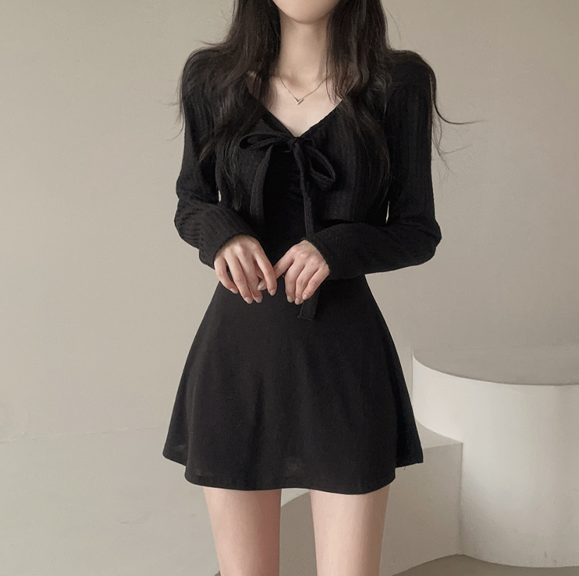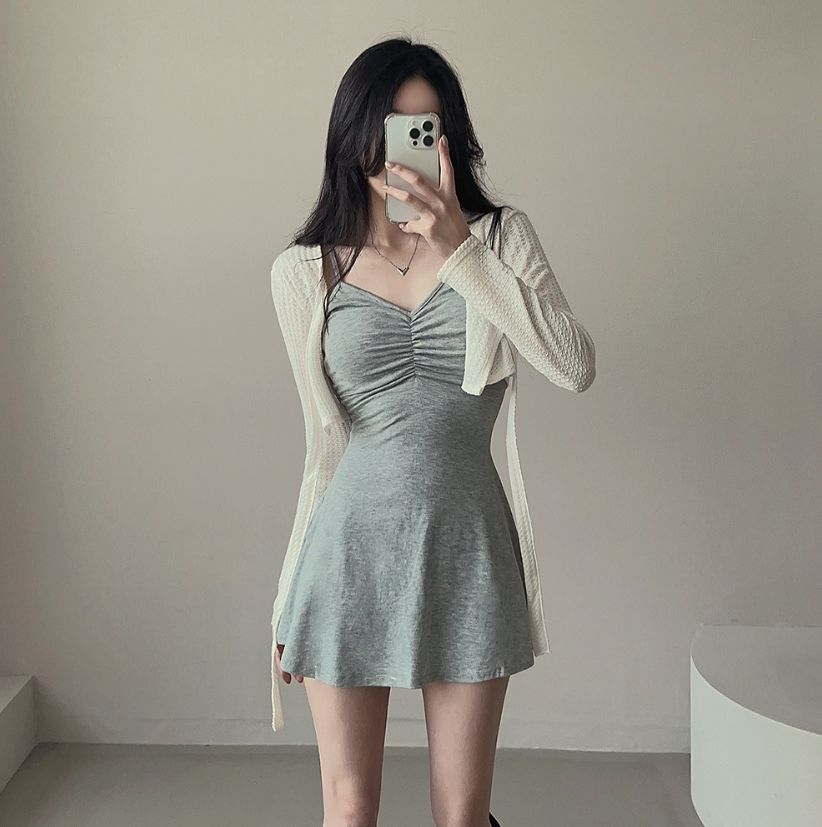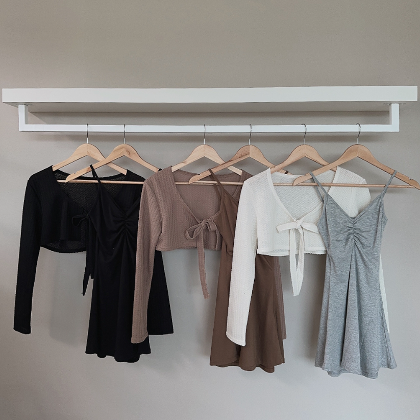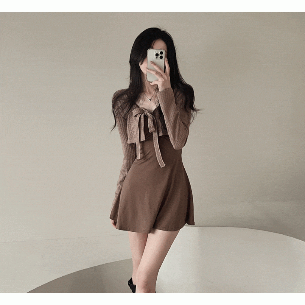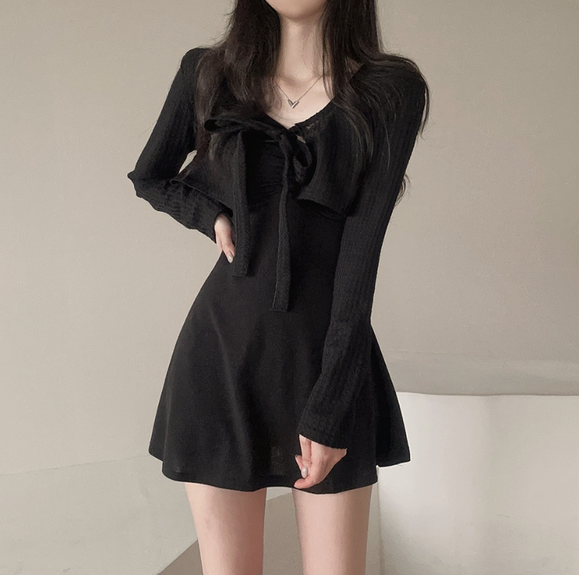 拼色綁帶外套配連身裙