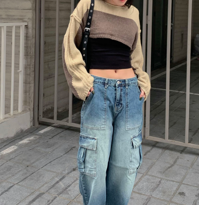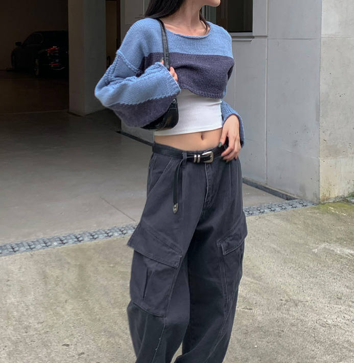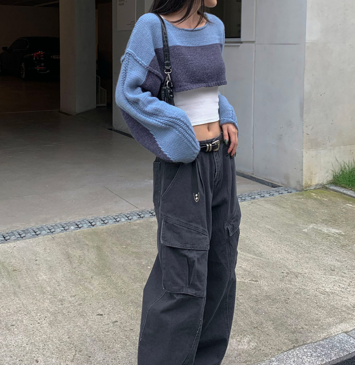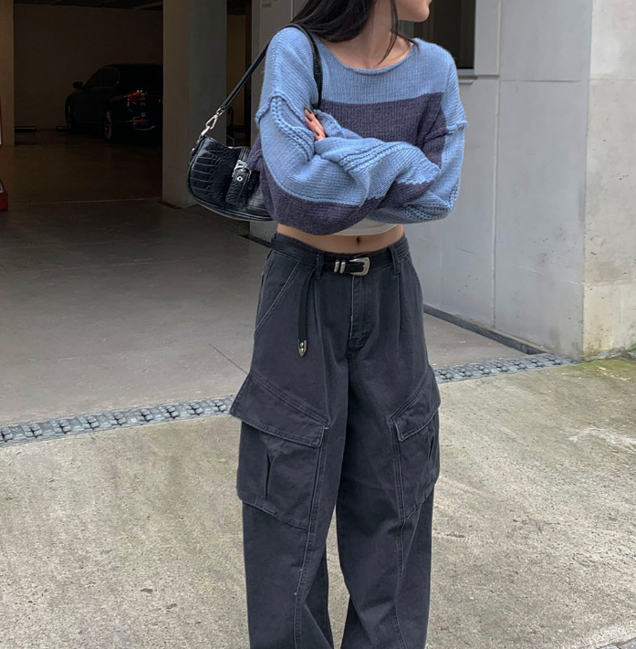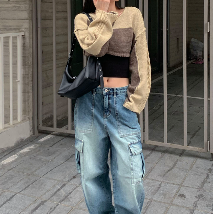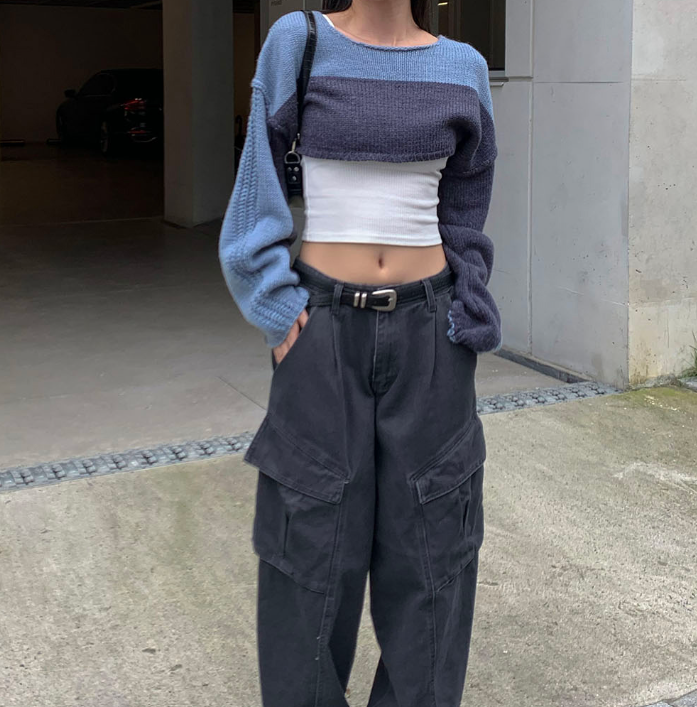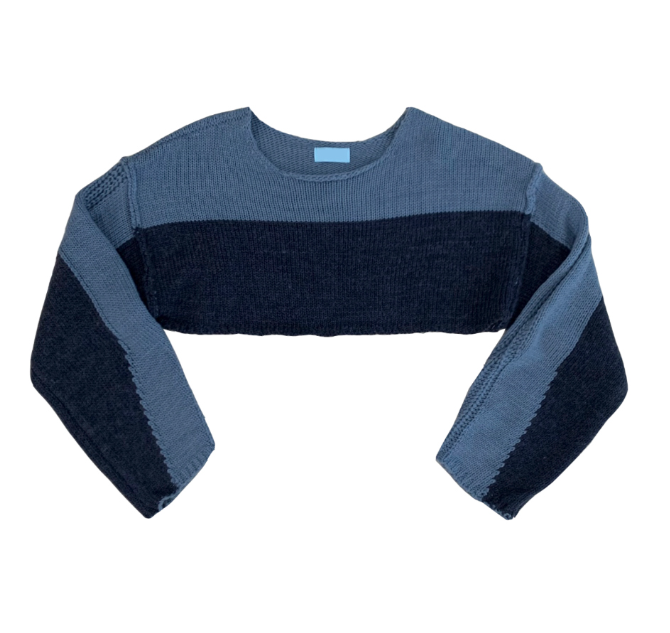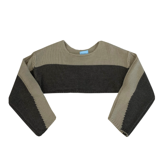 (•‾⌣‾•)拼色短款針織上衣❤️有點Y2K風格💕
