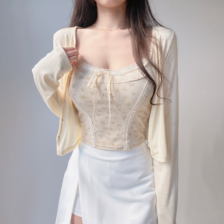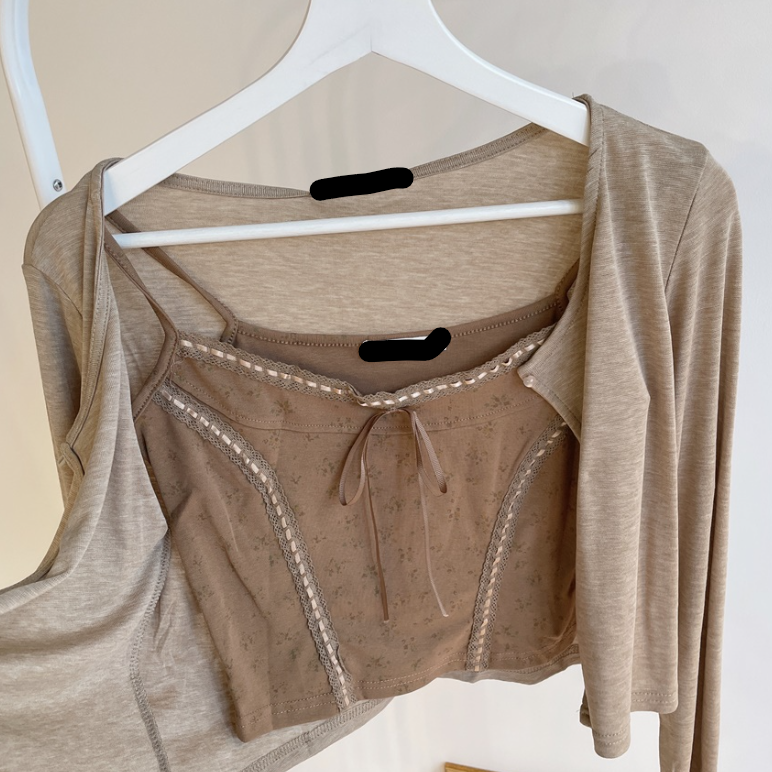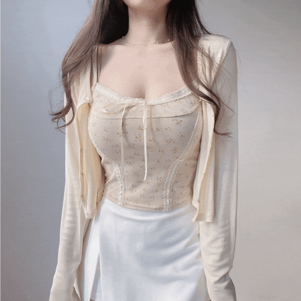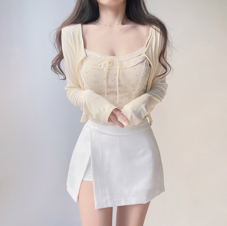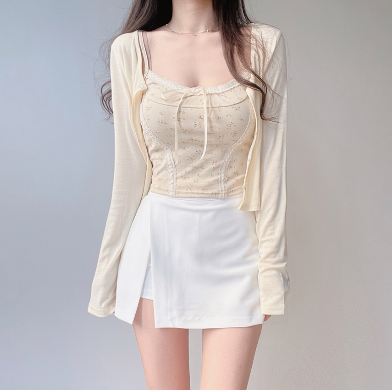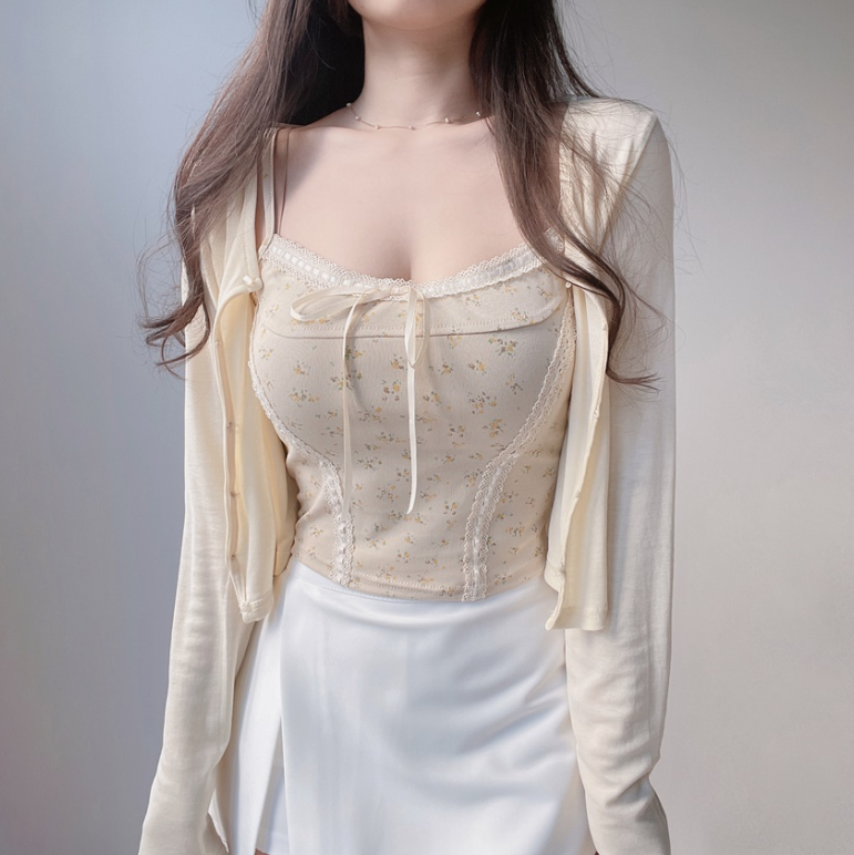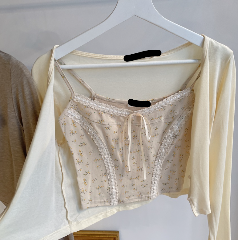 碎花大地色背心兩件套 - 現貨