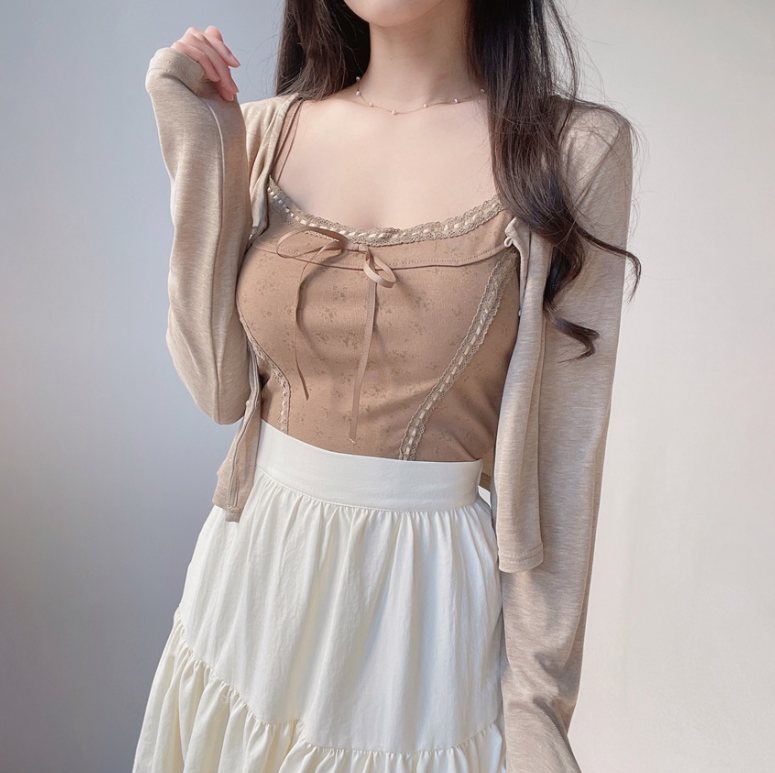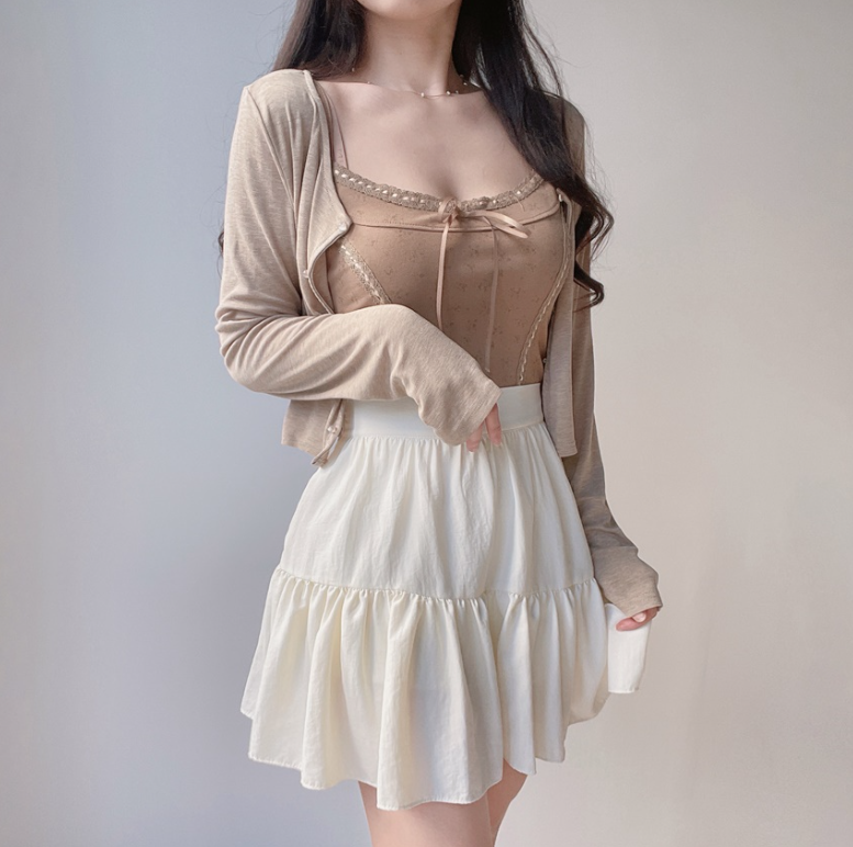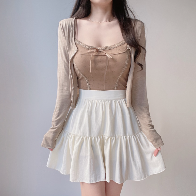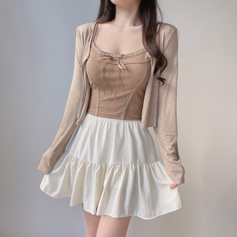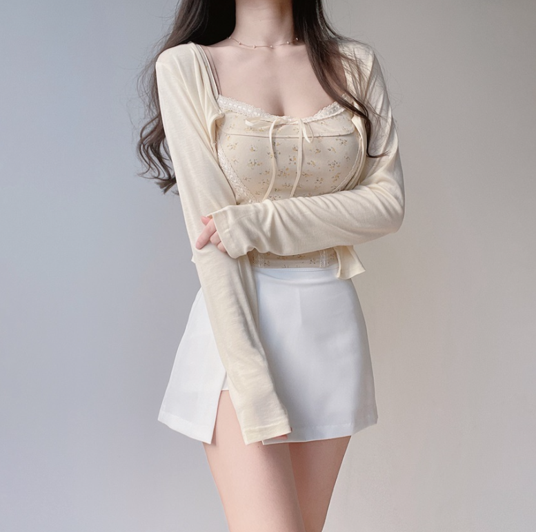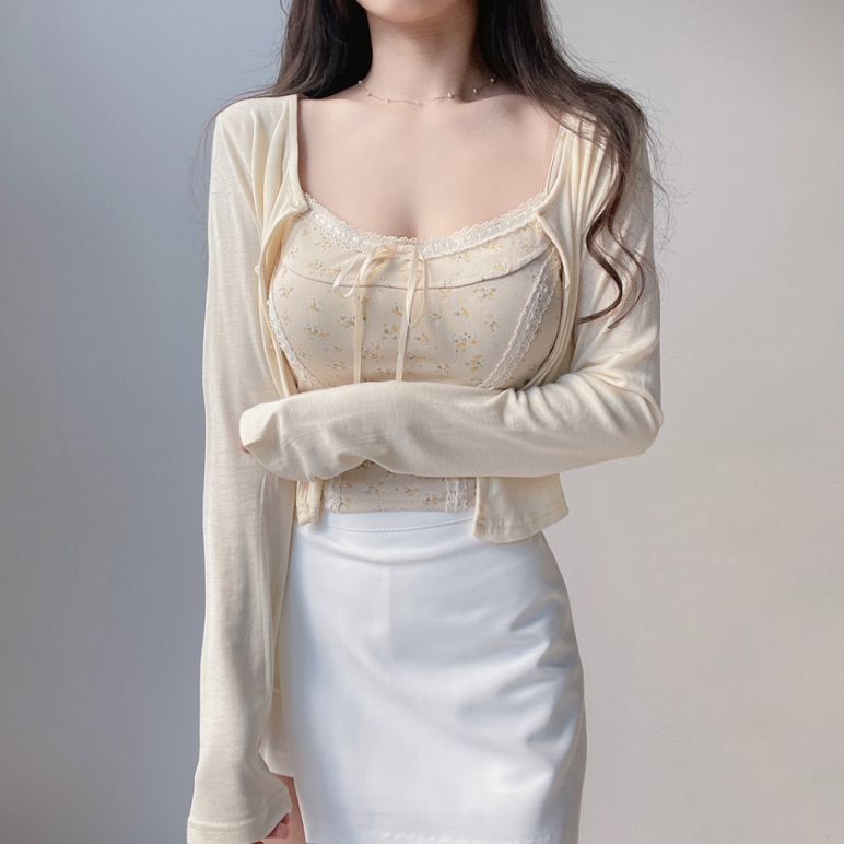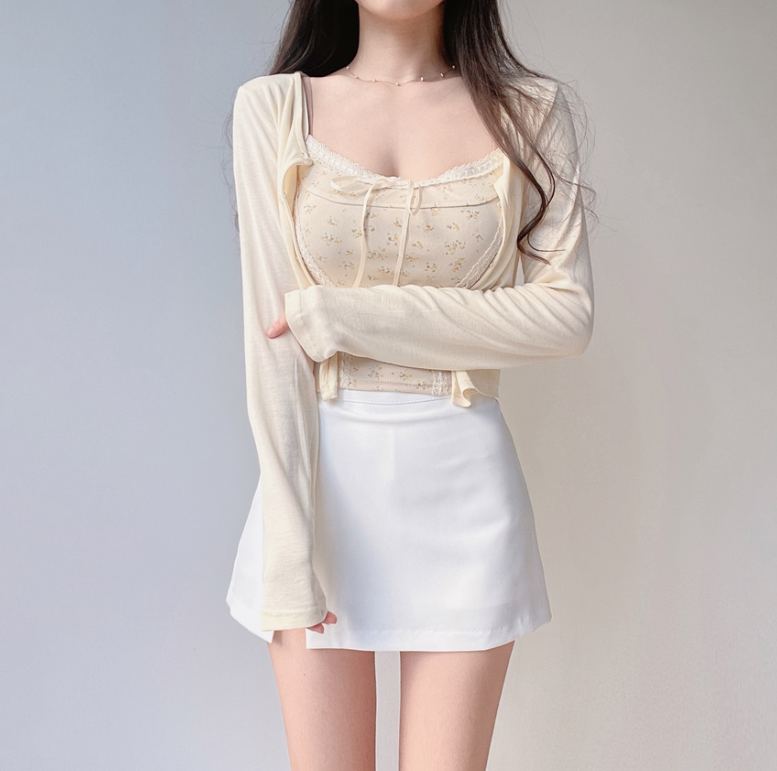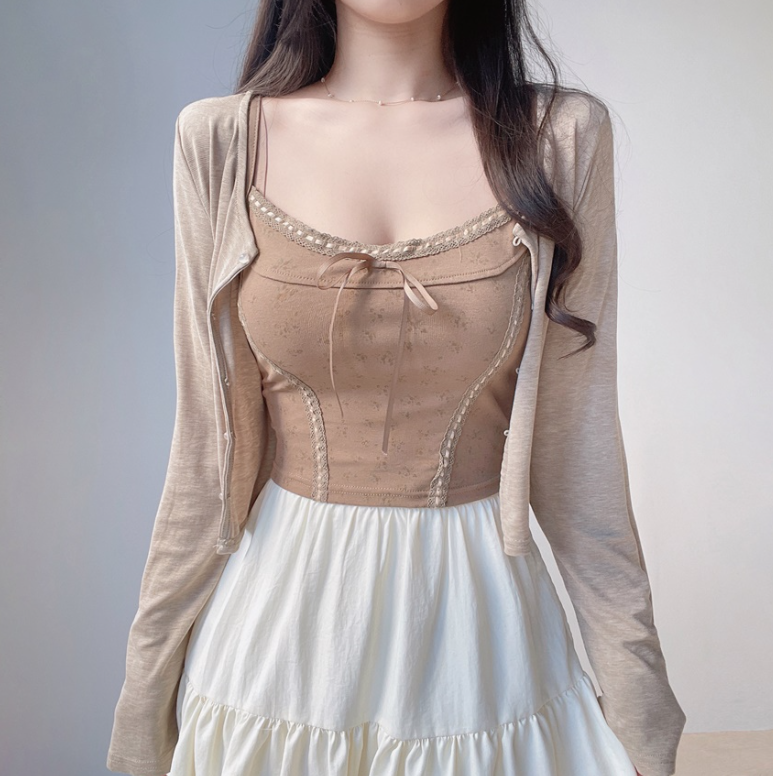 碎花大地色背心兩件套 - 現貨
