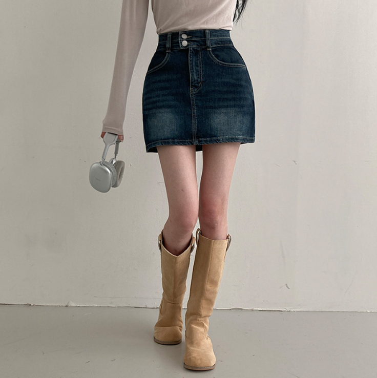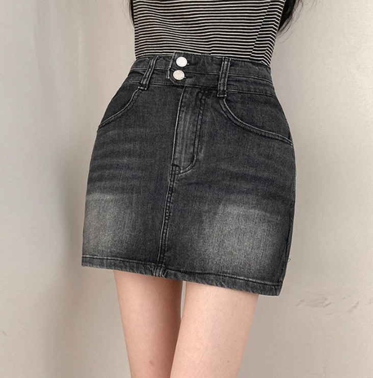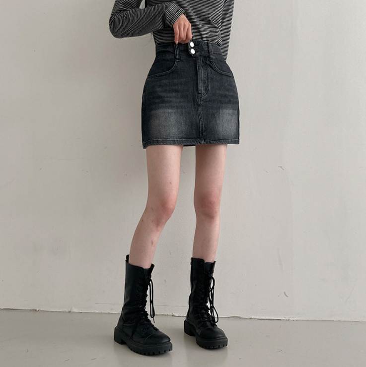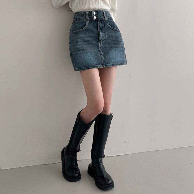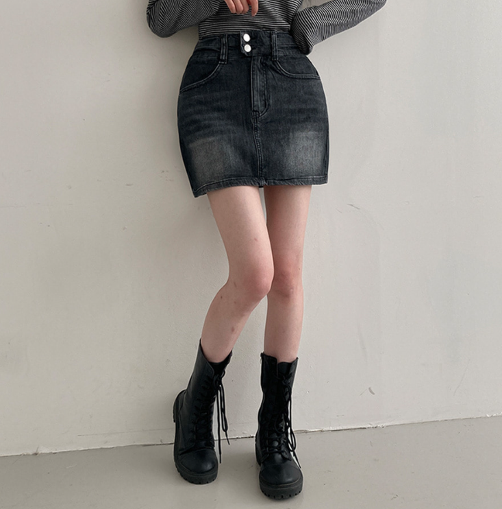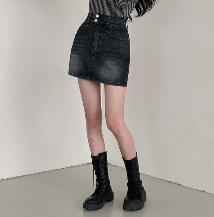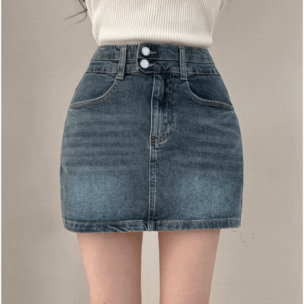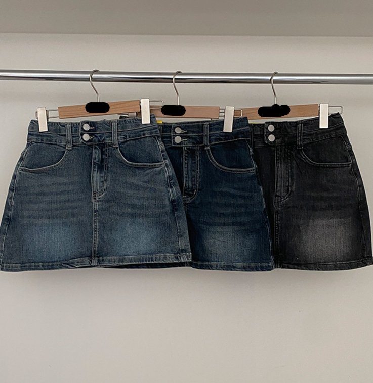 多色雙釦牛仔短裙【S-2XL】【2款長度】