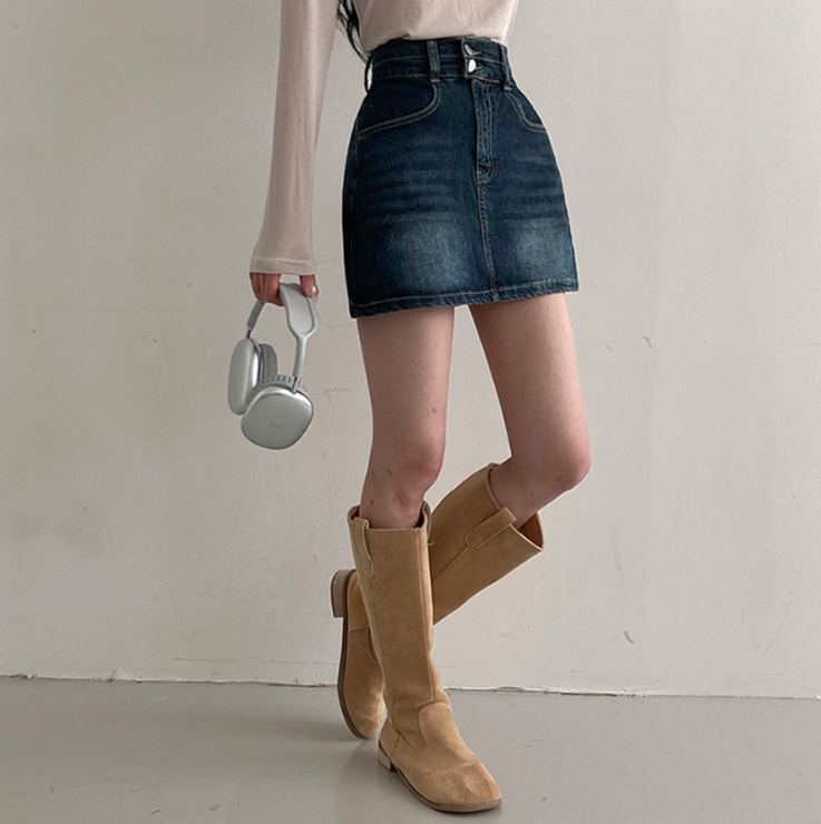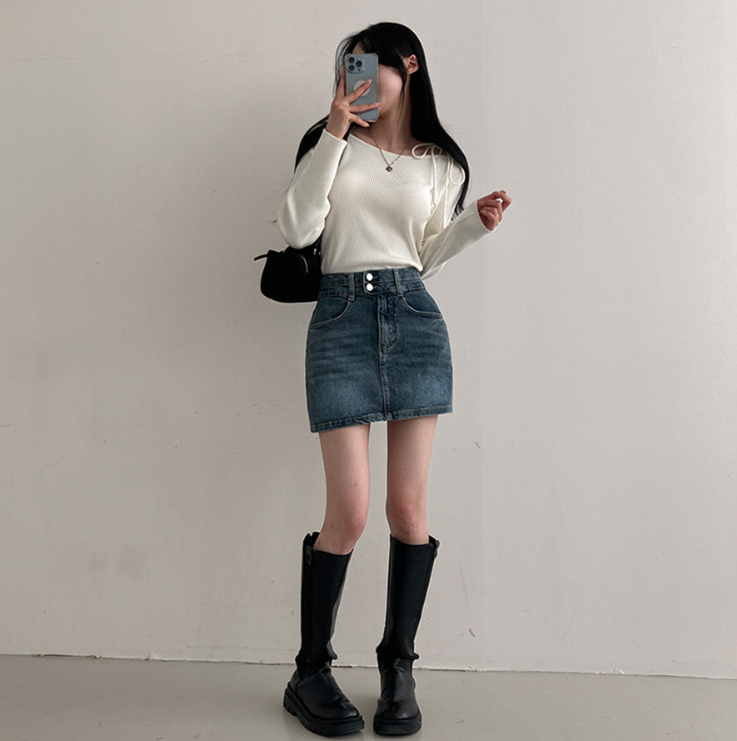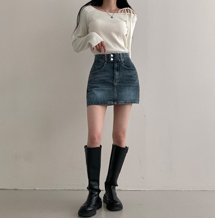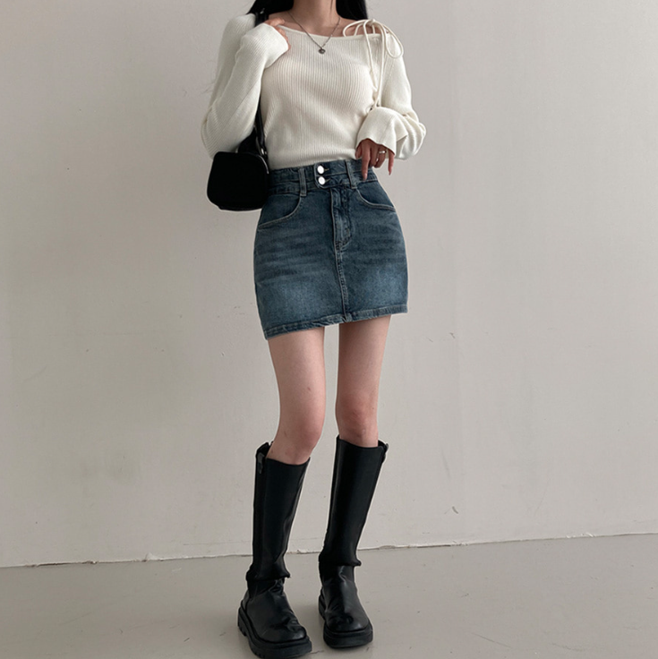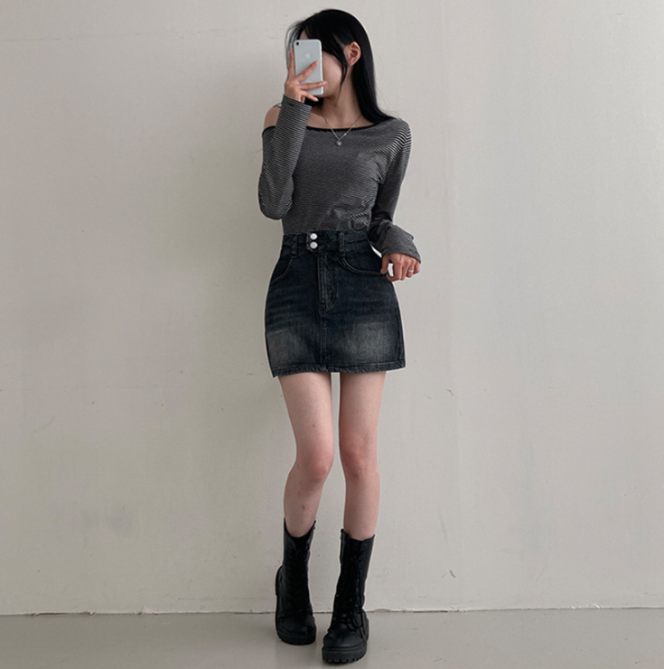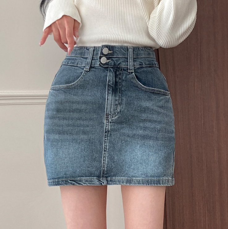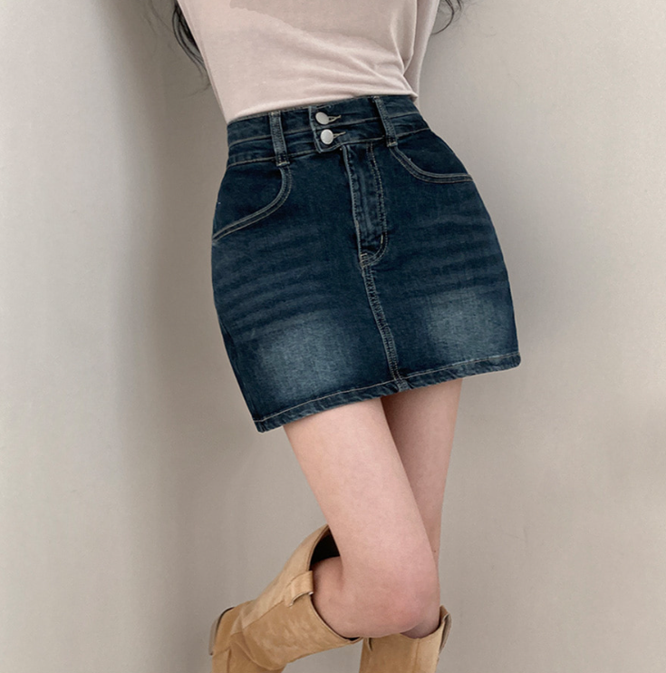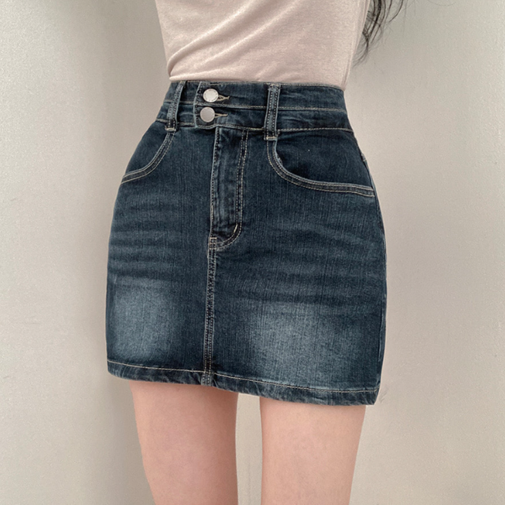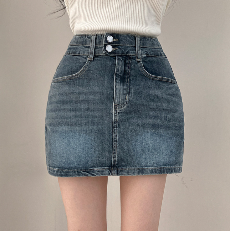 多色雙釦牛仔短裙【S-2XL】【2款長度】