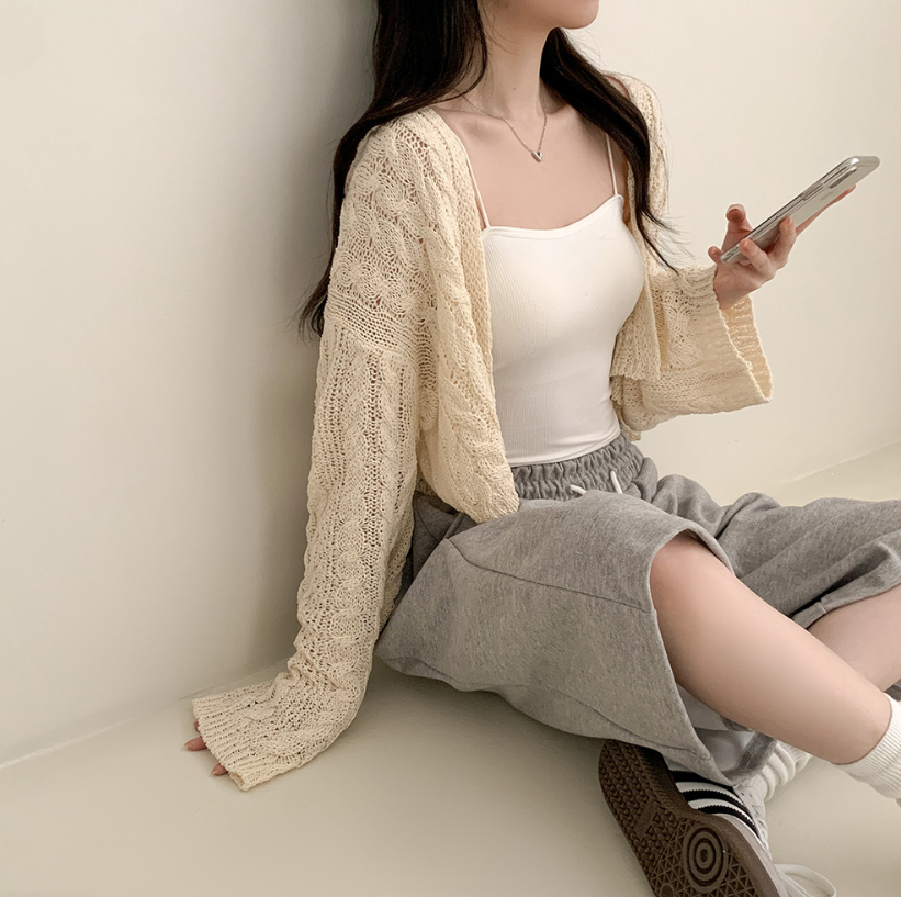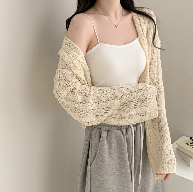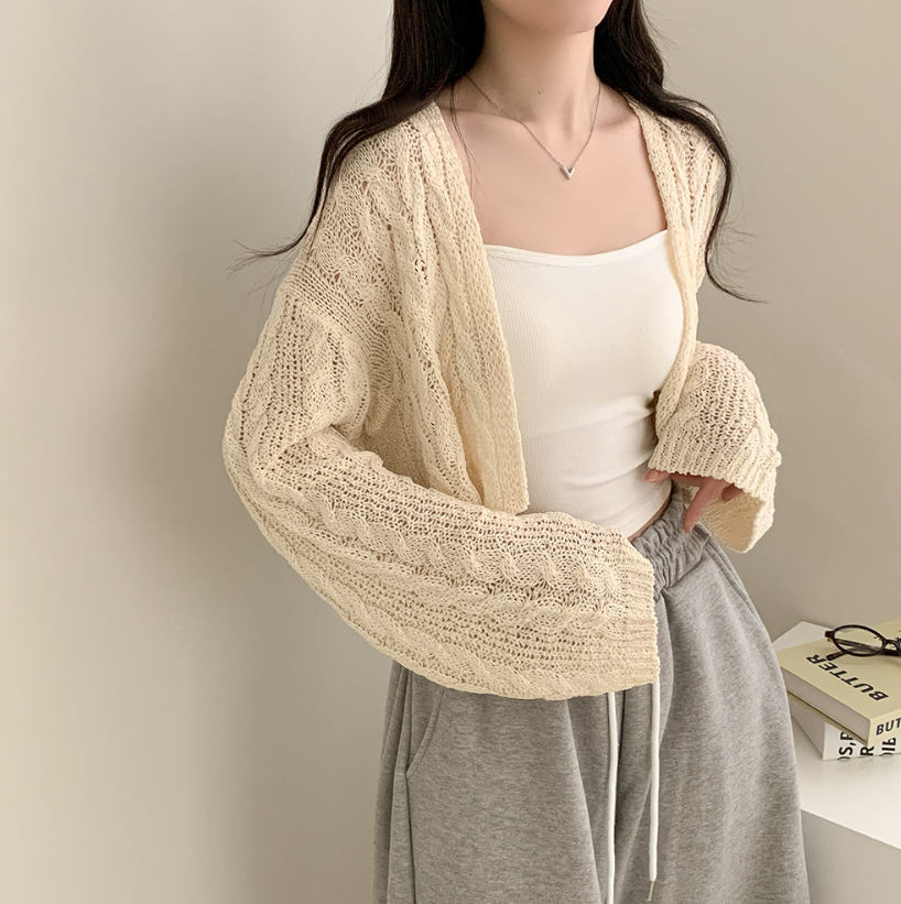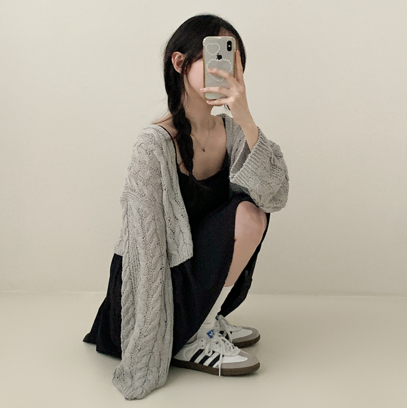 (•‾⌣‾•)寬鬆薄身既針織外套💕出街可以擋一擋風著出休閒慵懶感❤️