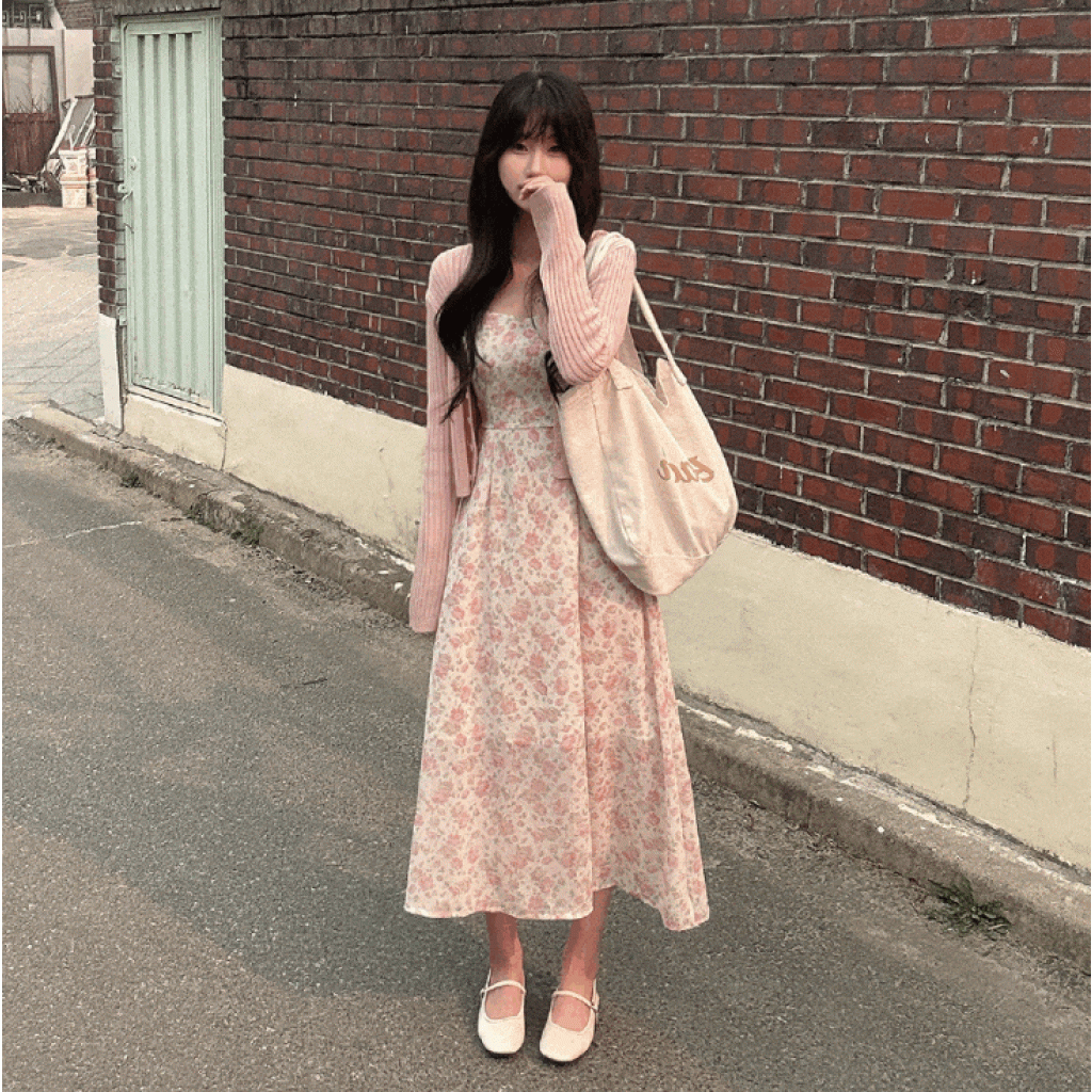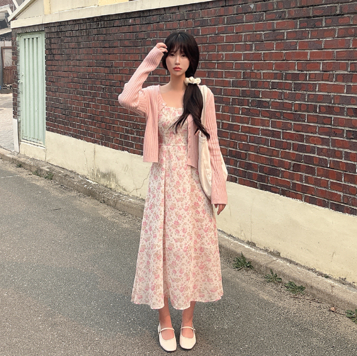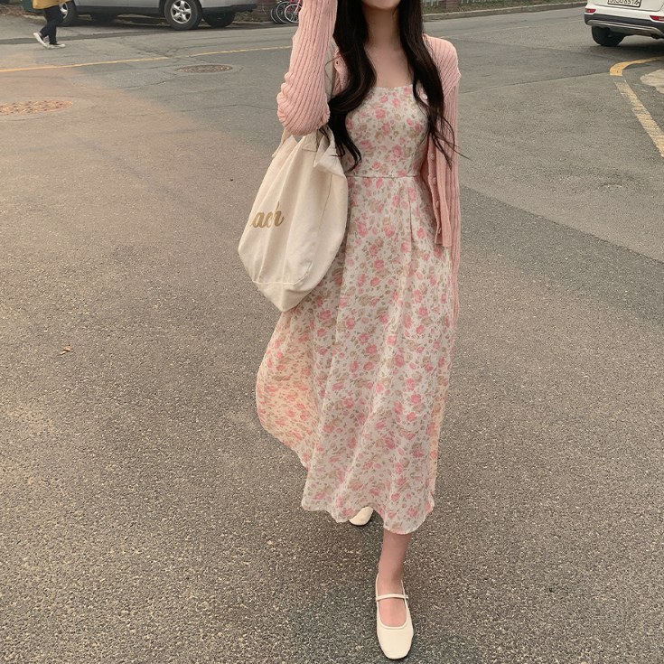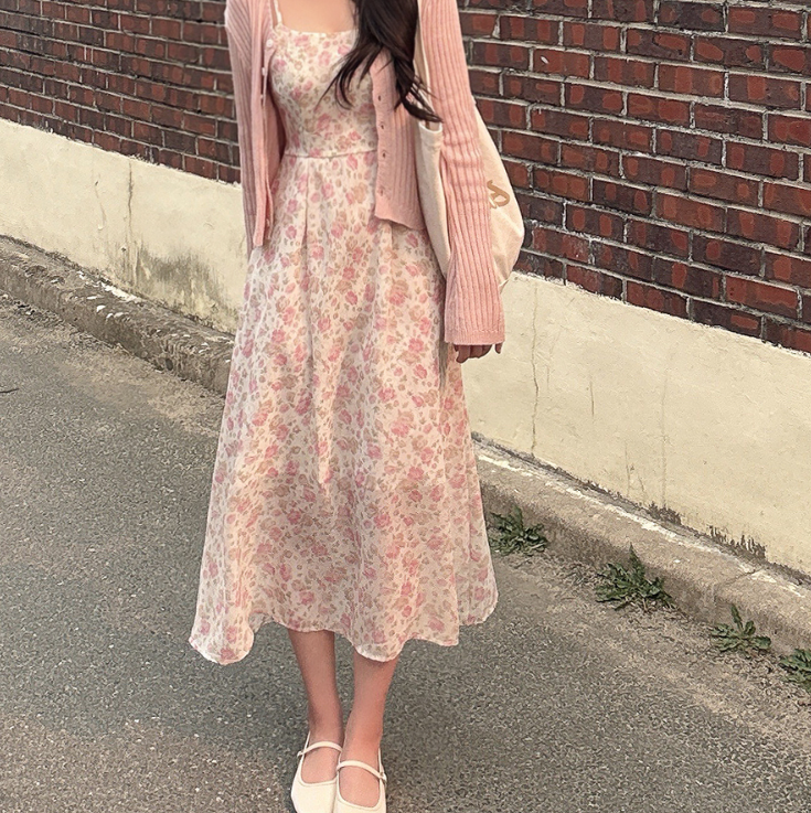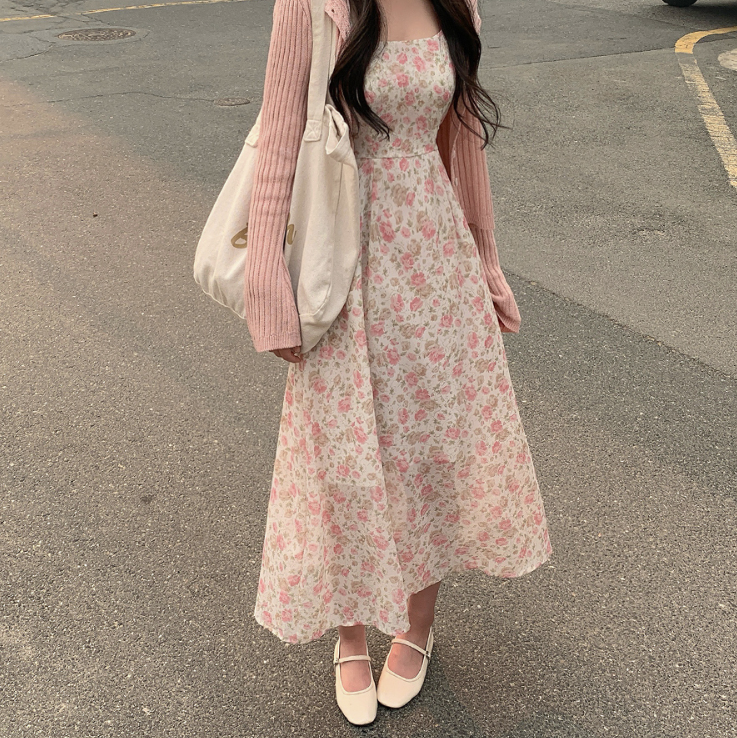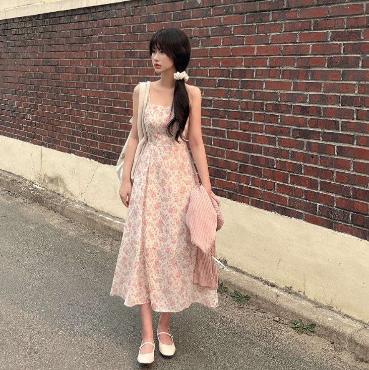 吊帶碎花長裙