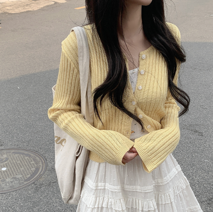 (•‾⌣‾•)薄針織外套好適合夏天當冷氣外套💕配搭吊帶背心又可以做外搭好方便❤️