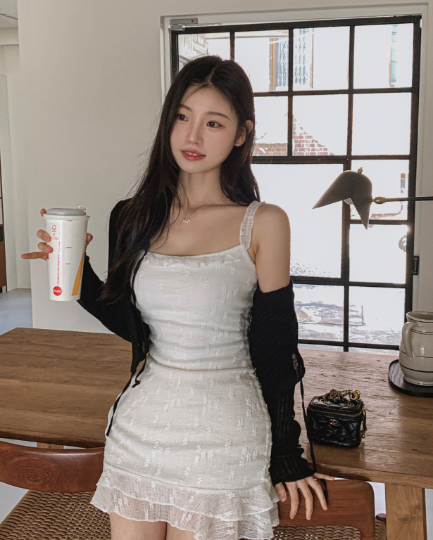 蕾絲吊帶側束繩貼身裙【買一送一】
