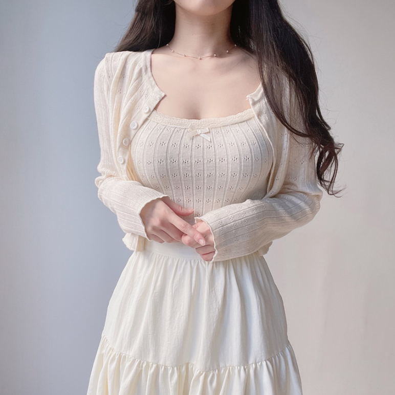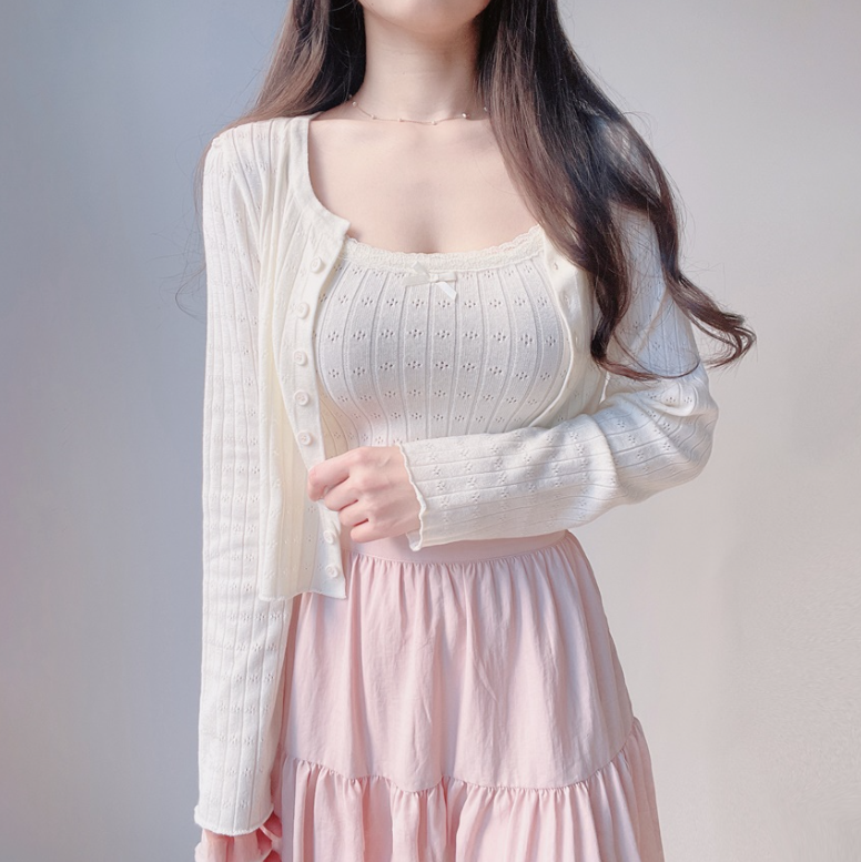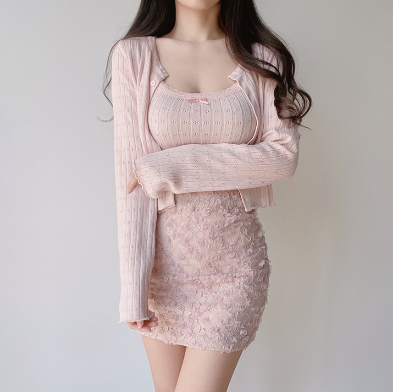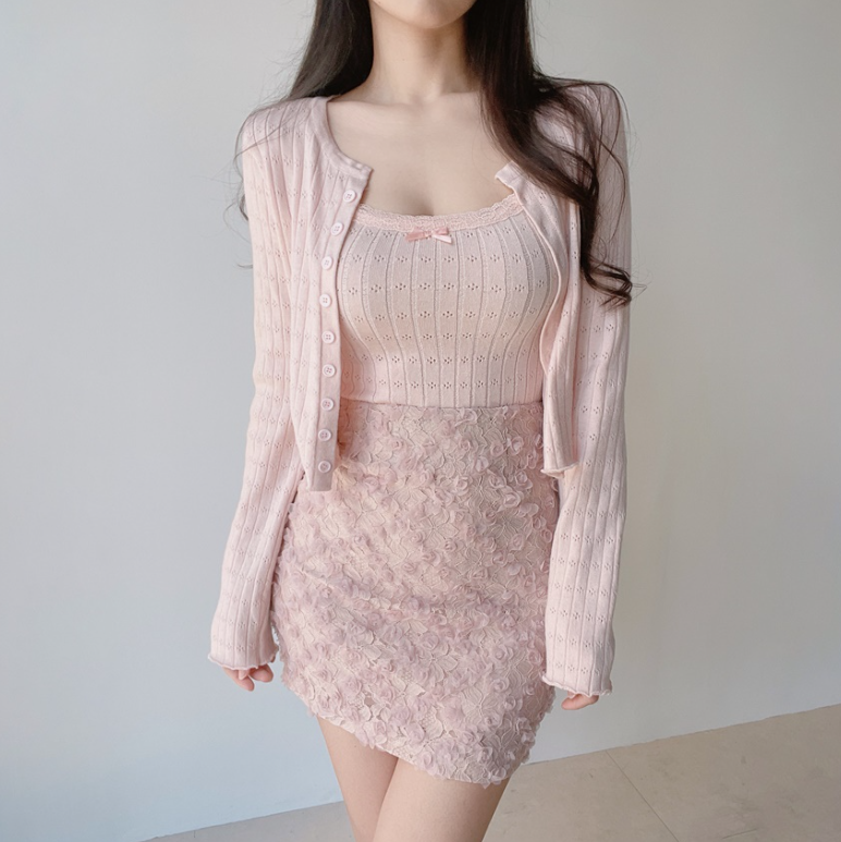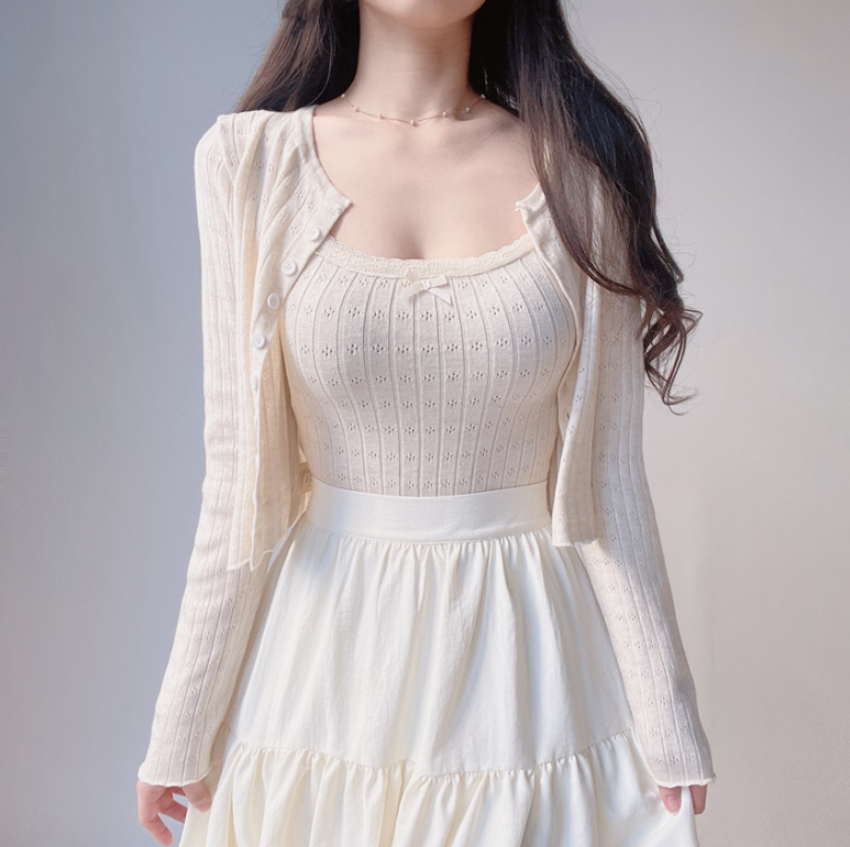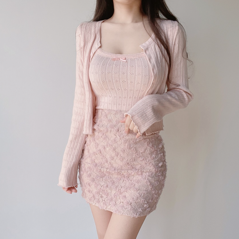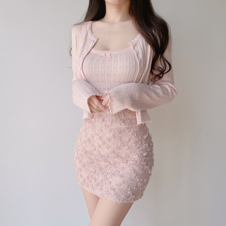 (●ˇ∀ˇ●)多色可選既暗花針織套裝💕望落溫柔又大方出入冷氣地方都唔怕凍❤️