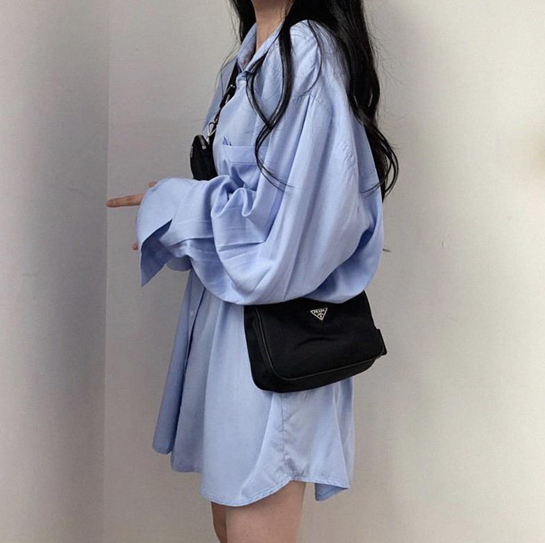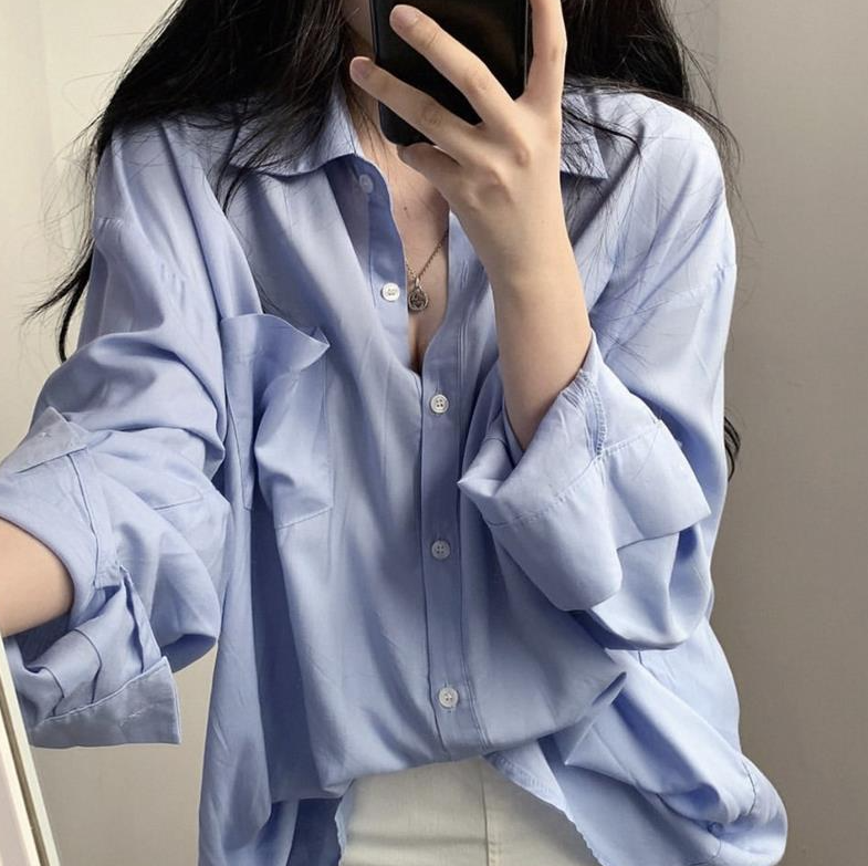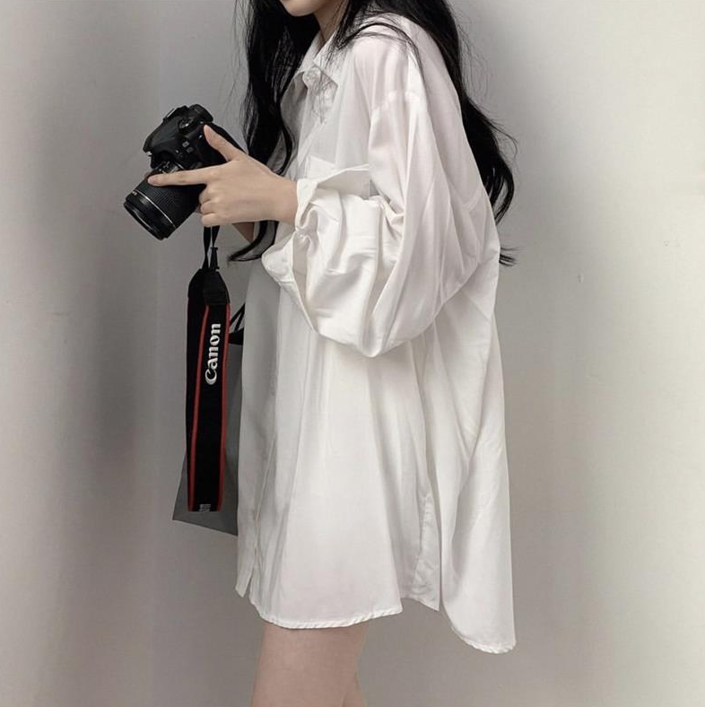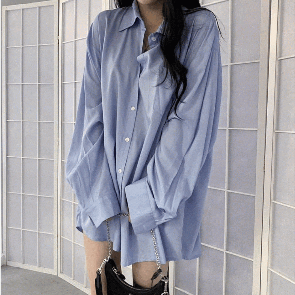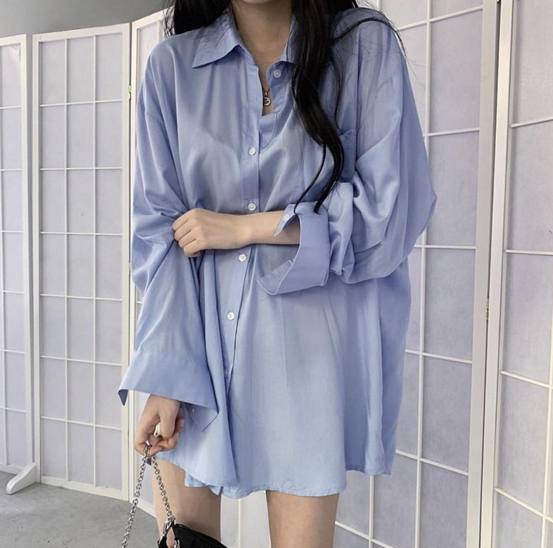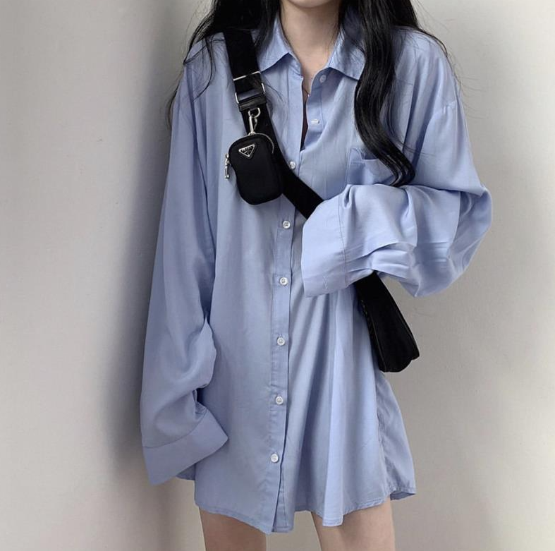 (•‾⌣‾•)簡約長袖恤衫款式❤️寬鬆設計可以當one piece著💕