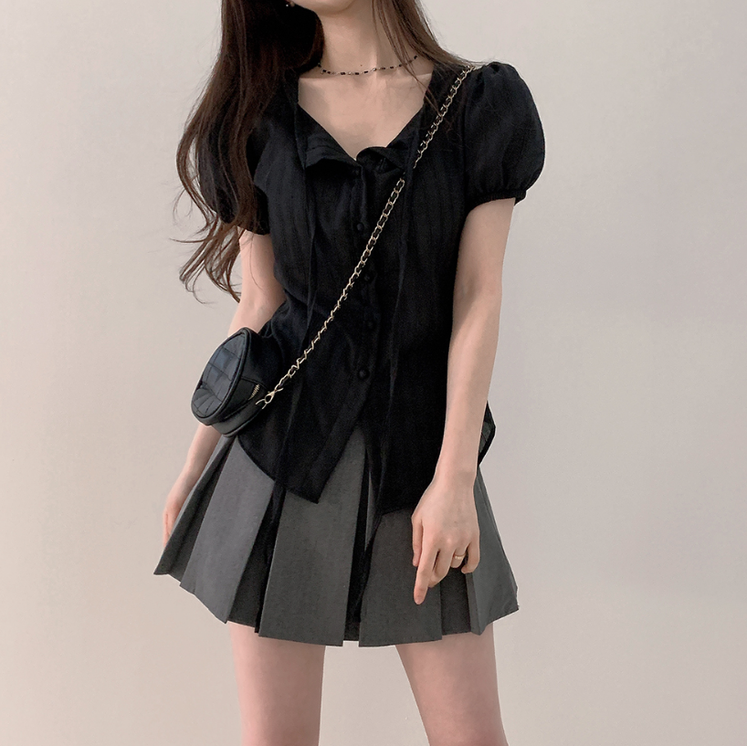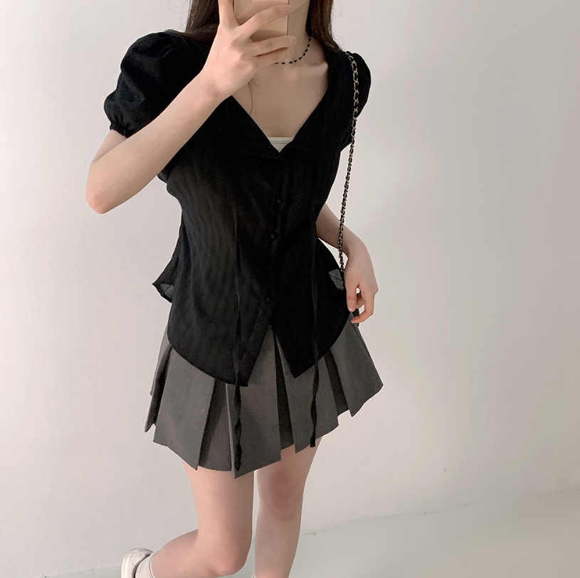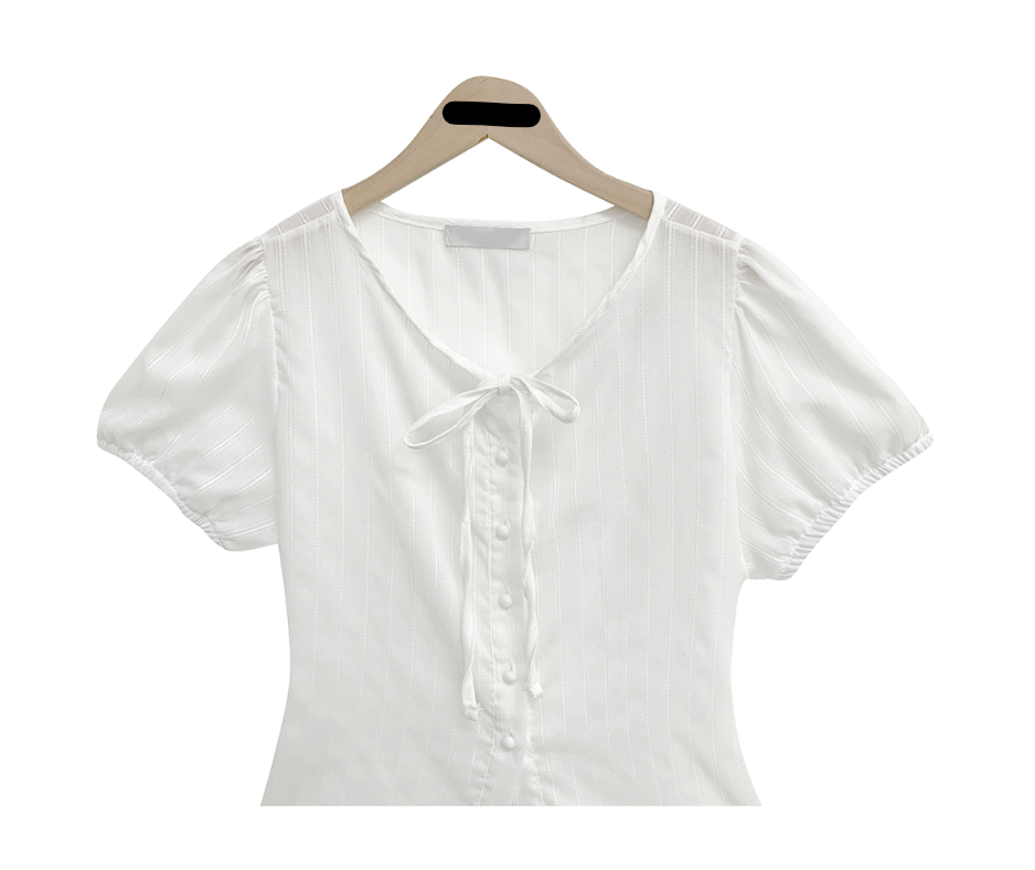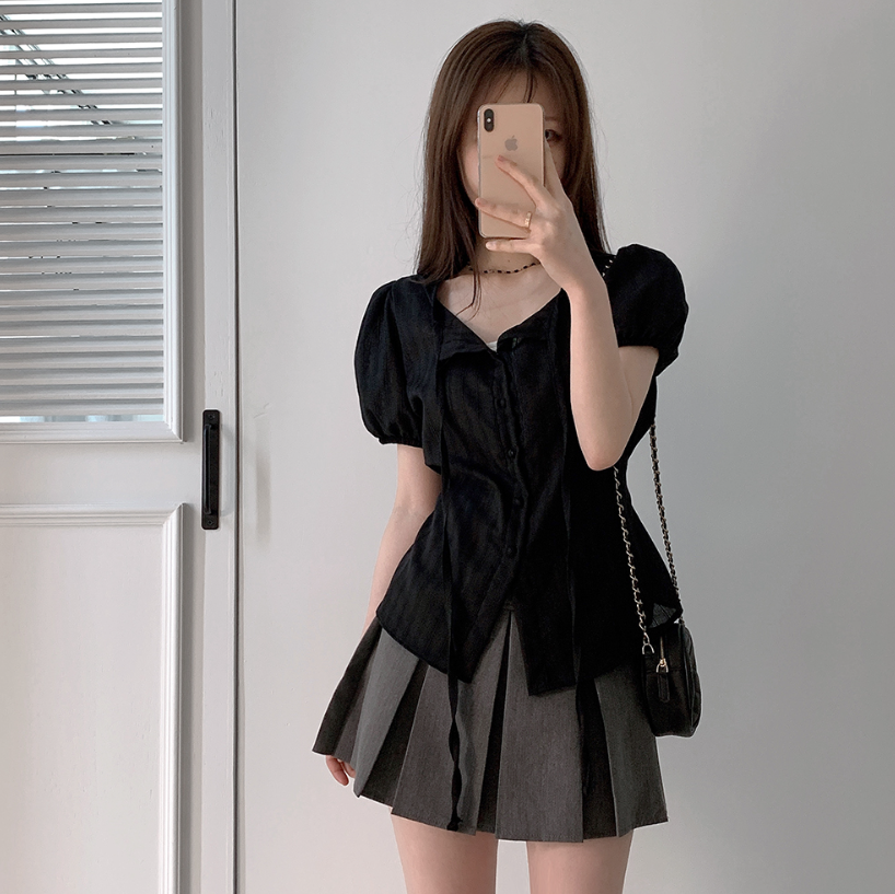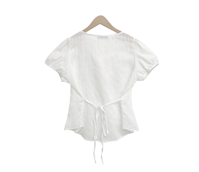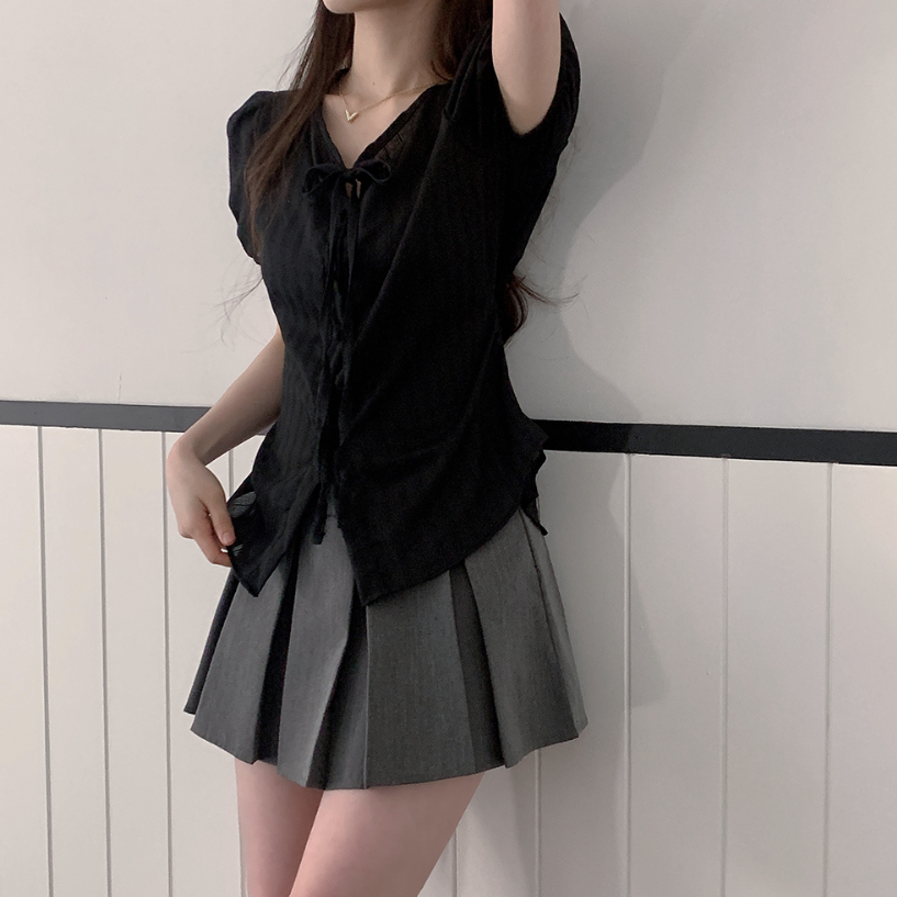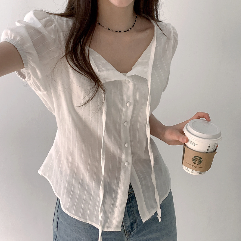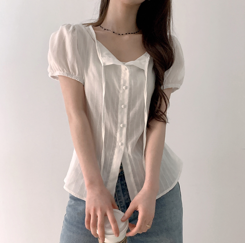 (•‾⌣‾•)小清新既透薄上衣💕綁帶設計可以自由調節腰位更顯身材❤️