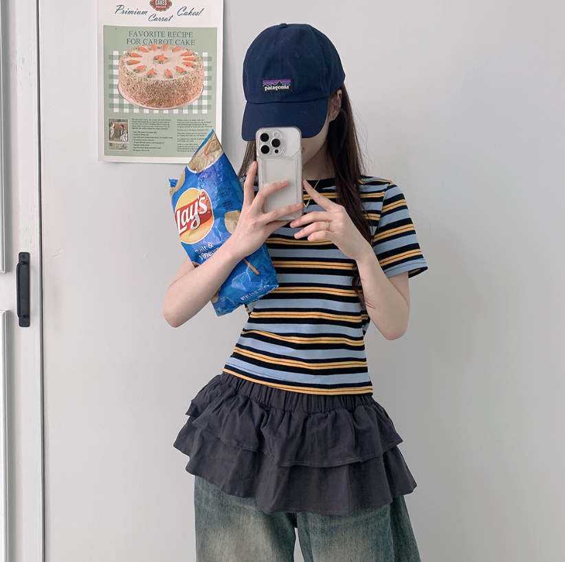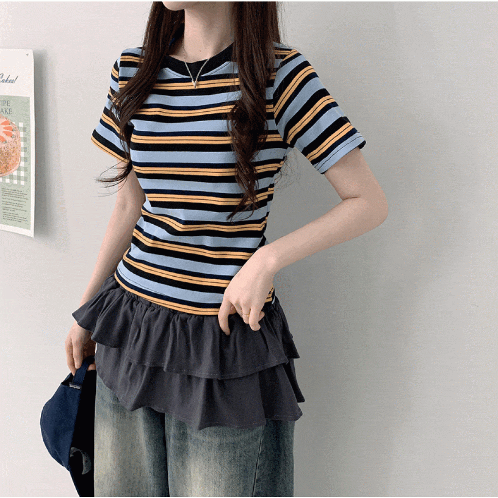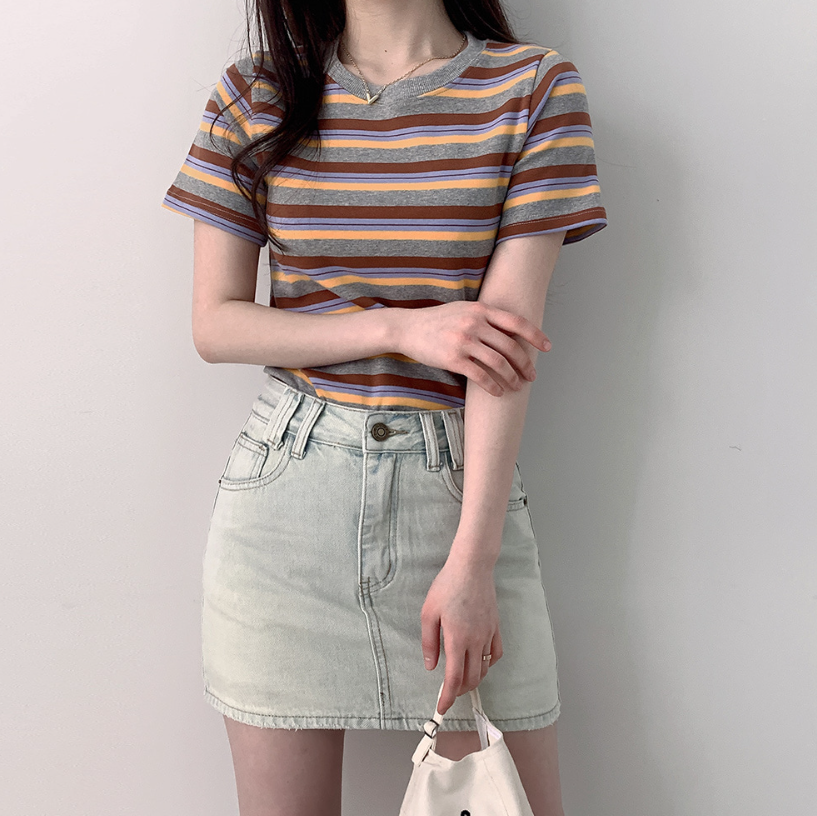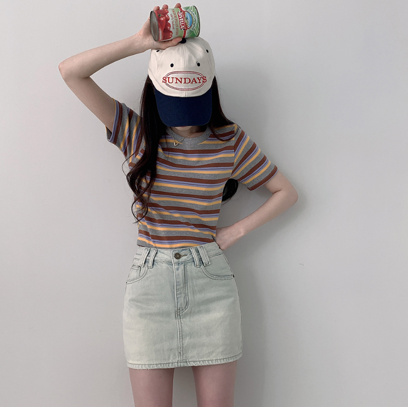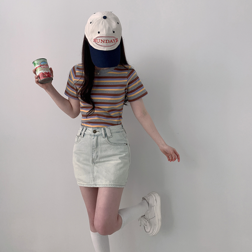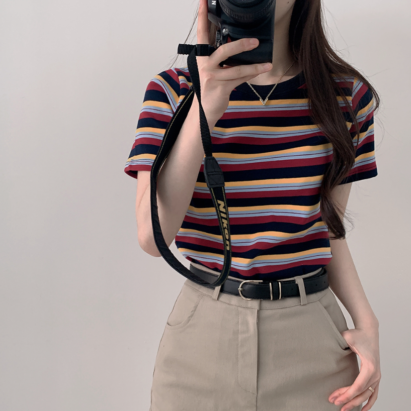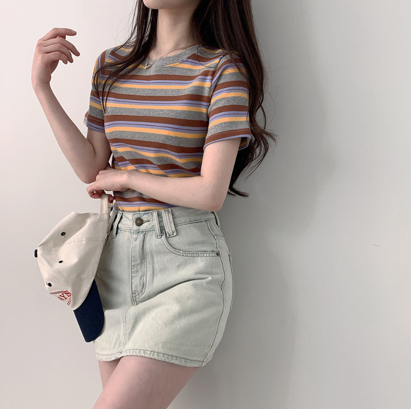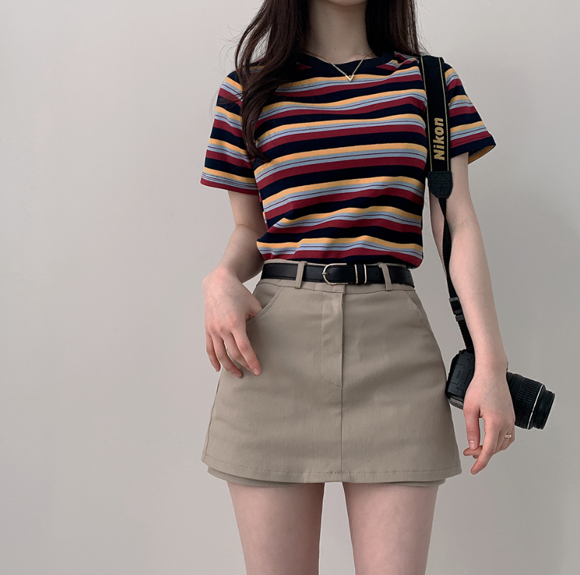 (•‾⌣‾•)簡單條紋T恤百搭易襯💕襯裙或褲都完全無問題💕休閒風格必備