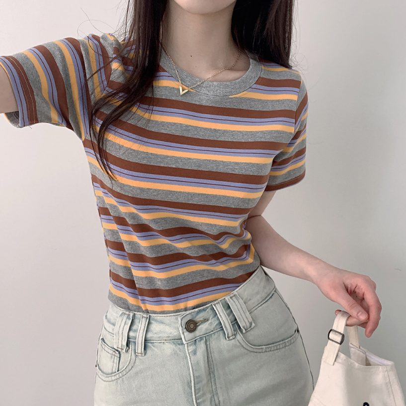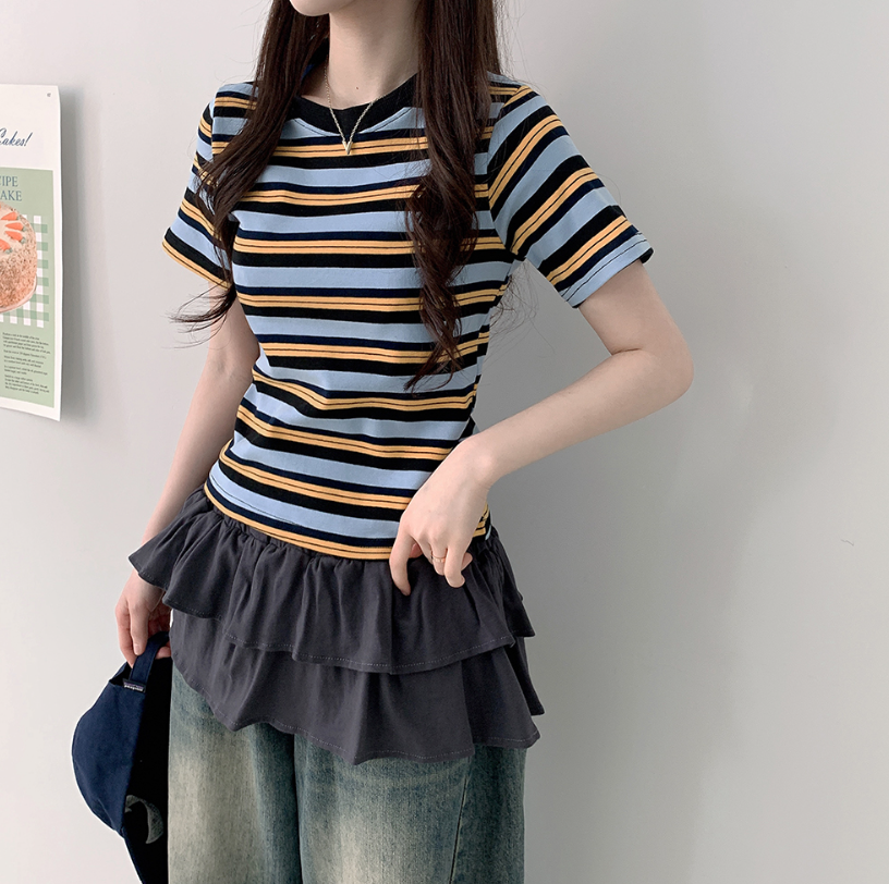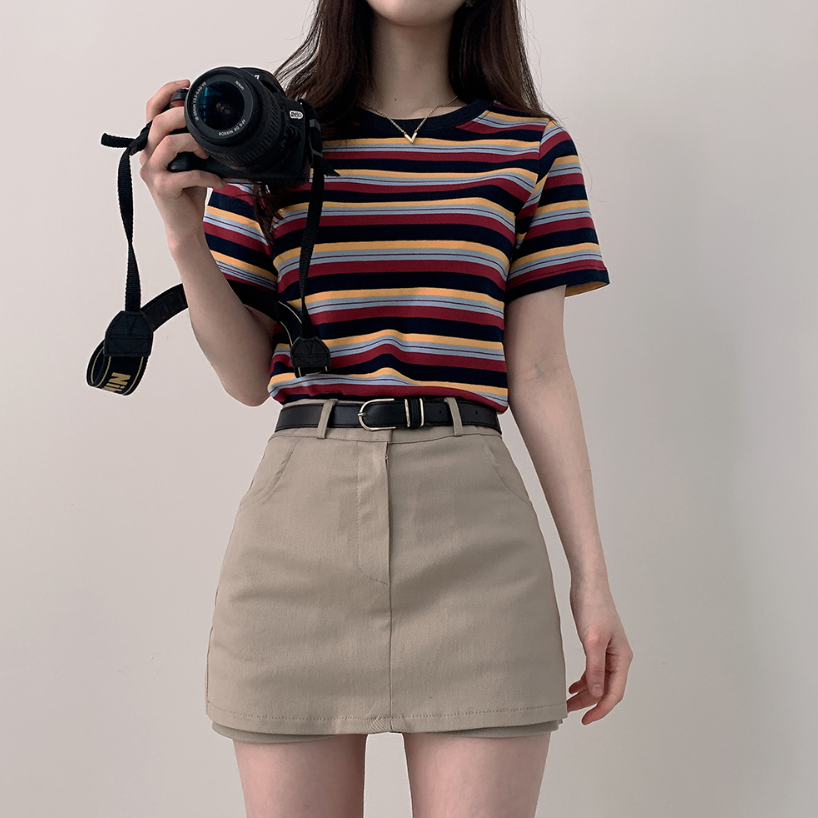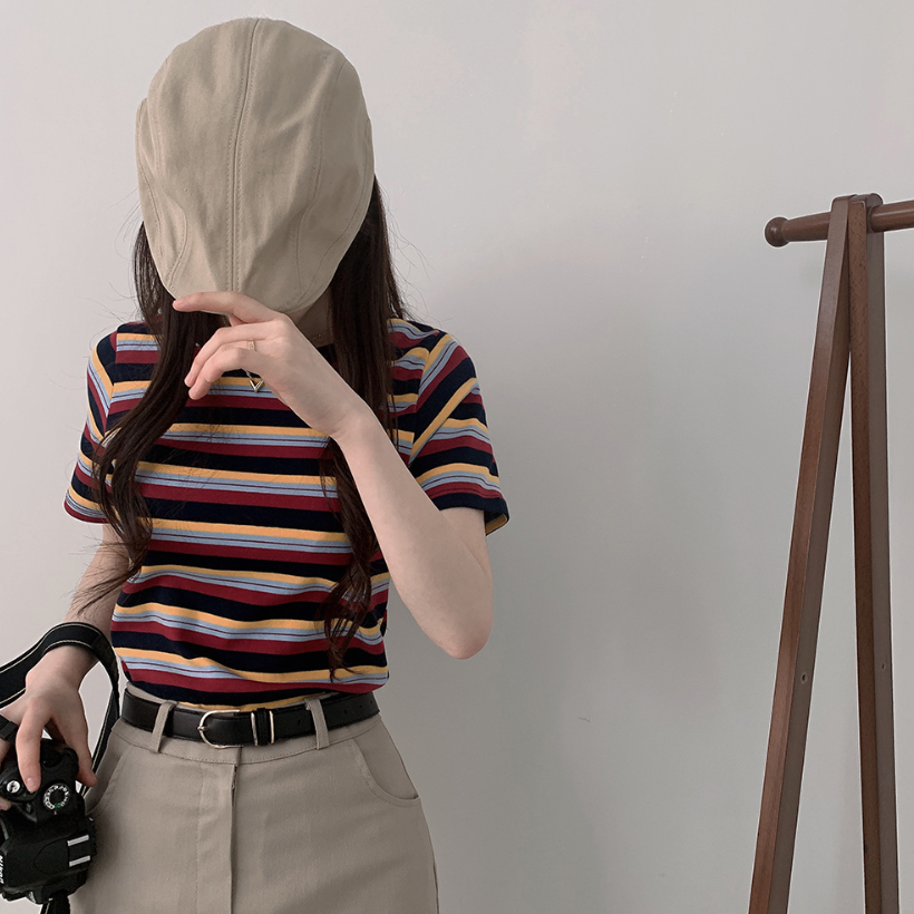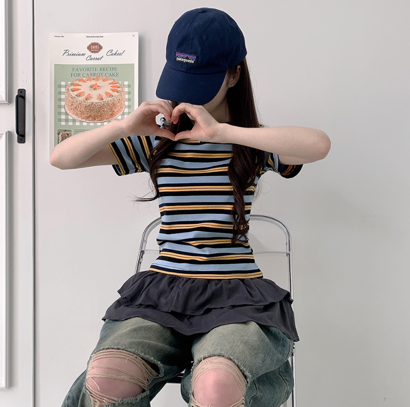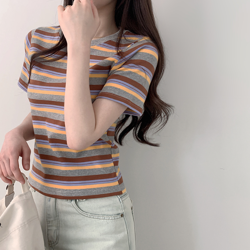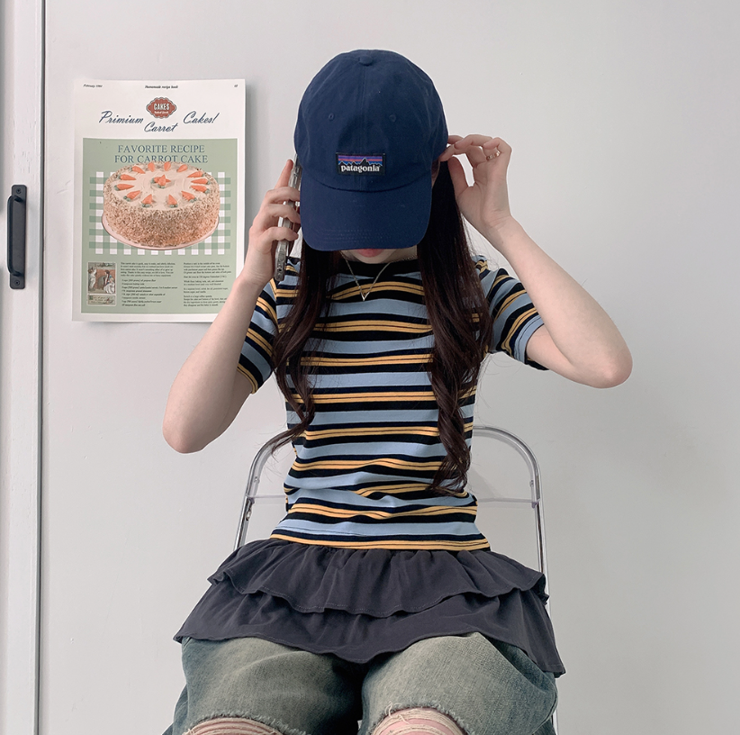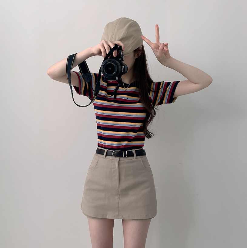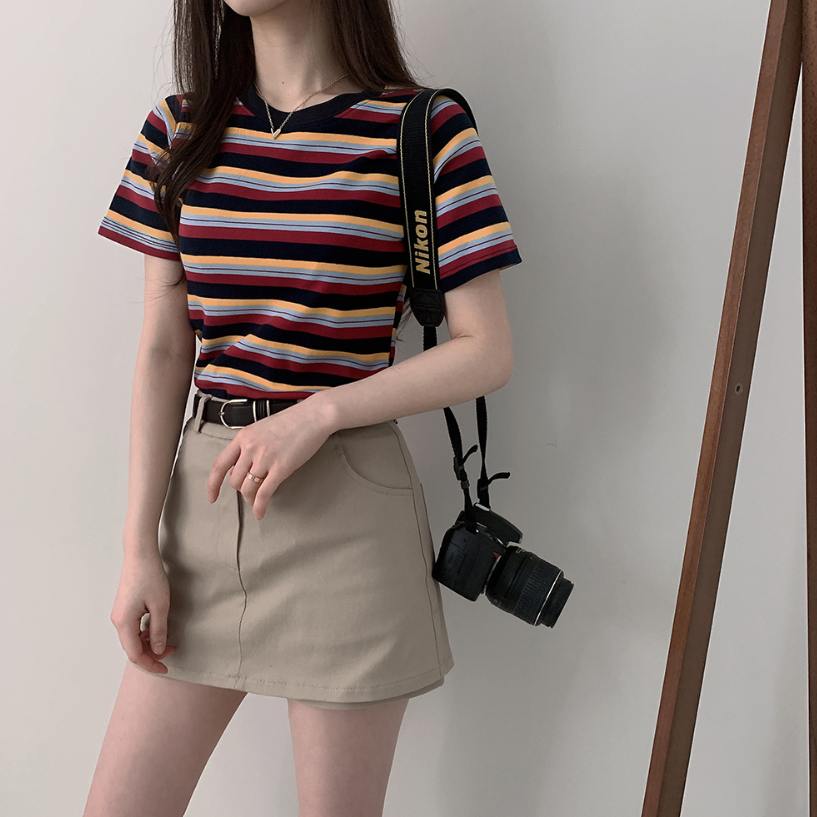 (•‾⌣‾•)簡單條紋T恤百搭易襯💕襯裙或褲都完全無問題💕休閒風格必備