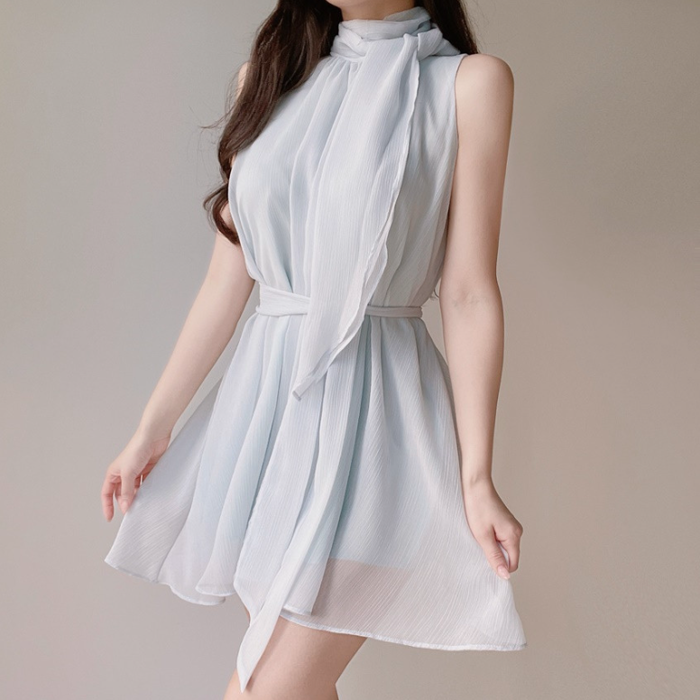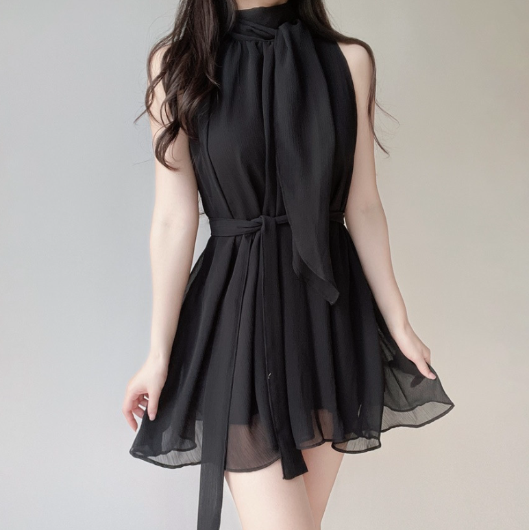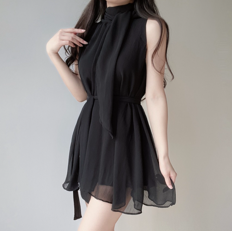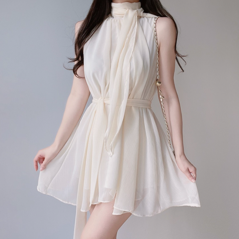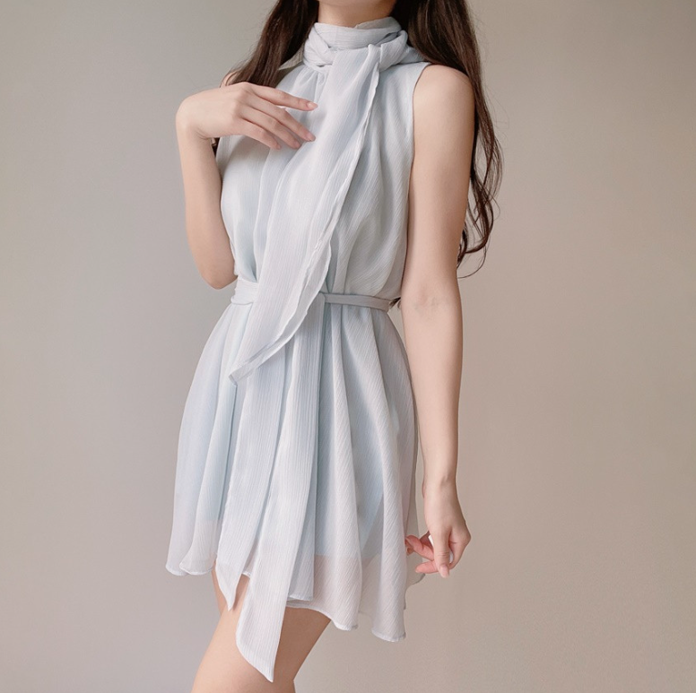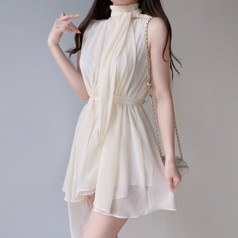 雪紡領帶連身裙