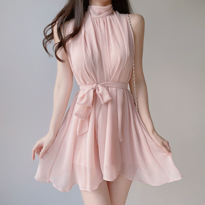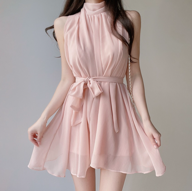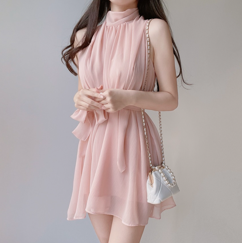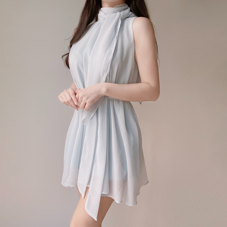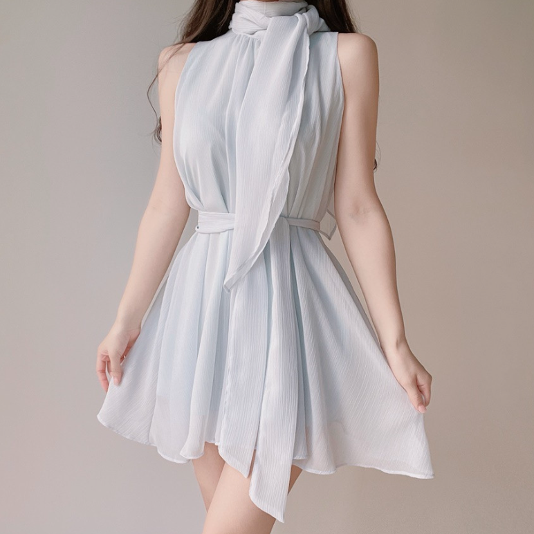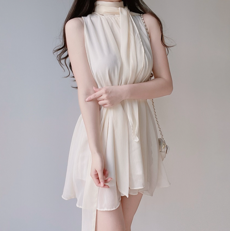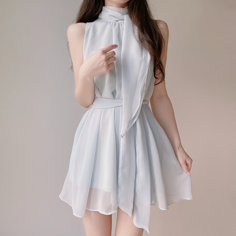 雪紡領帶連身裙