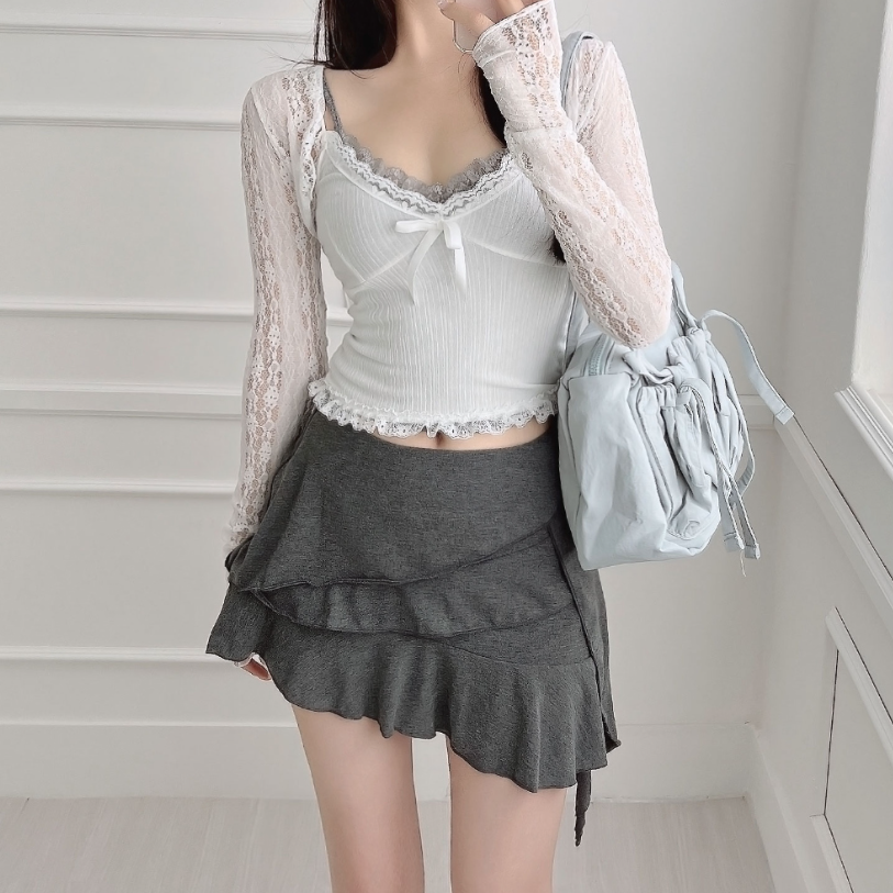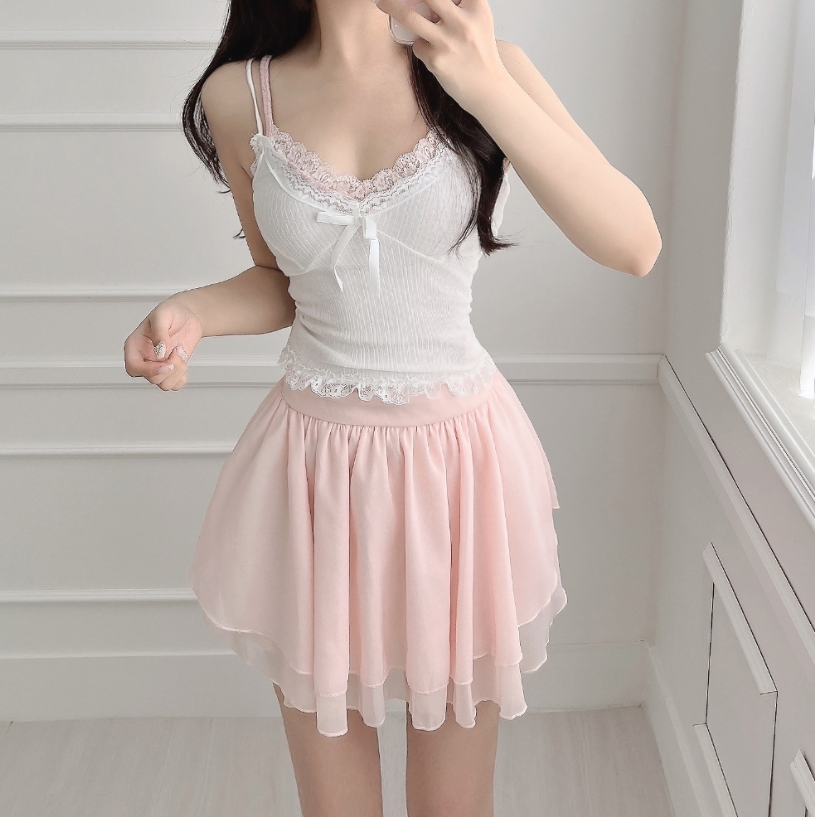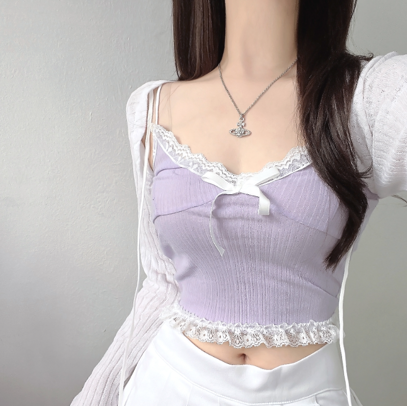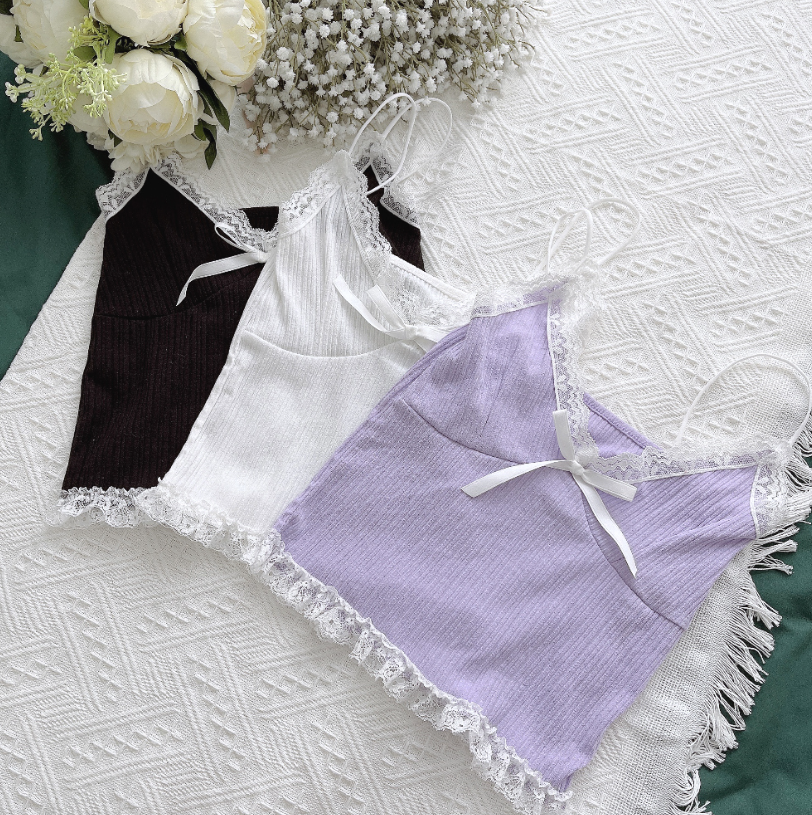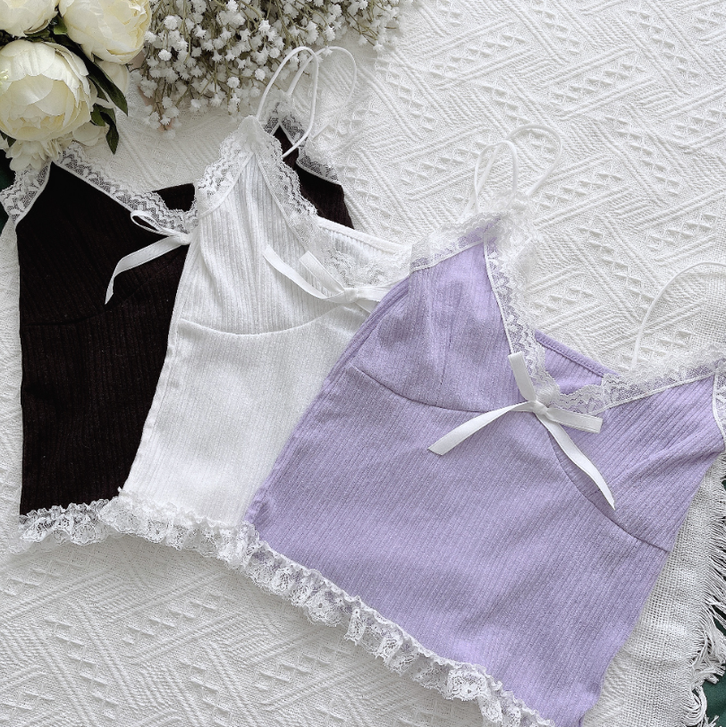 可愛絲帶蕾絲吊帶背心 - 現貨