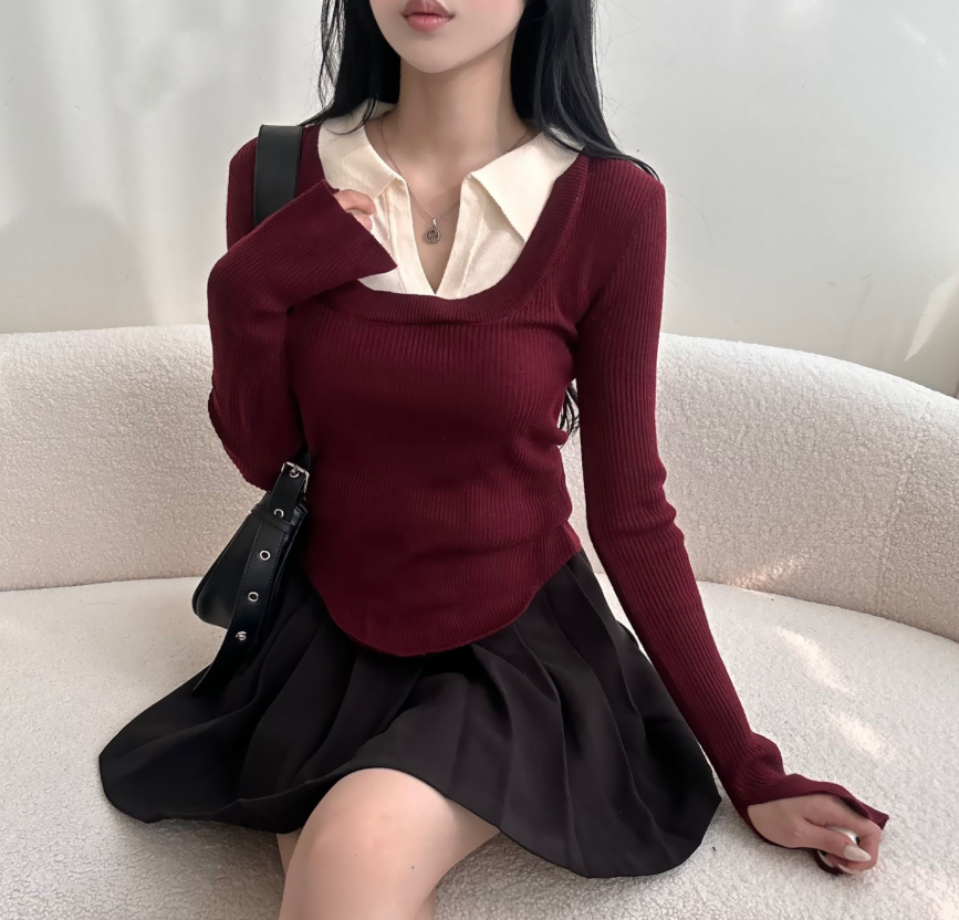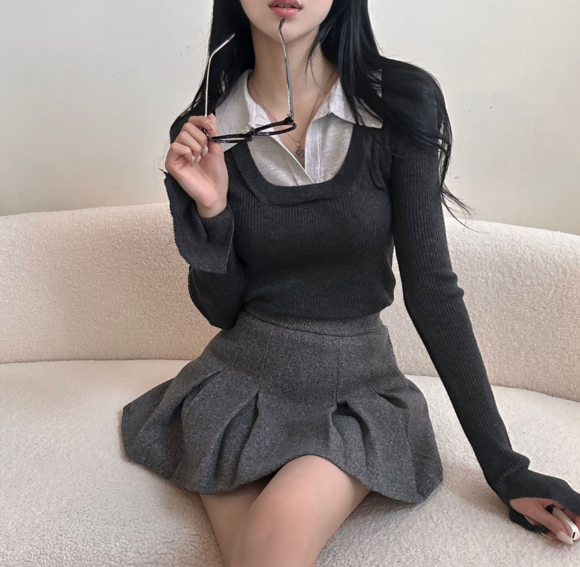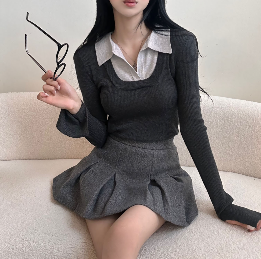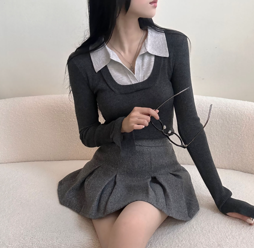 (•‾⌣‾•)假兩件設計唔需要襯多一件衫💕多色隨你選擇袖口開衩設計簡單低調❤️