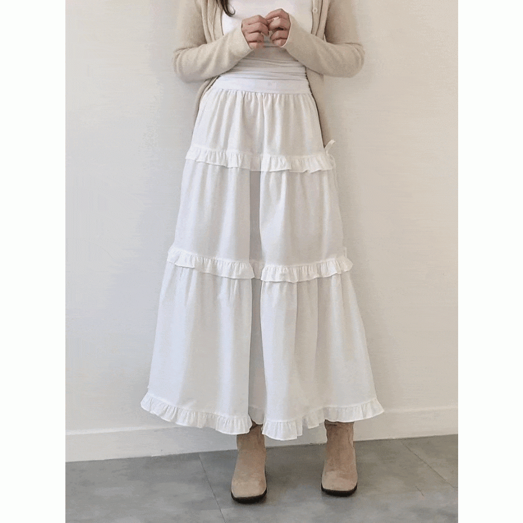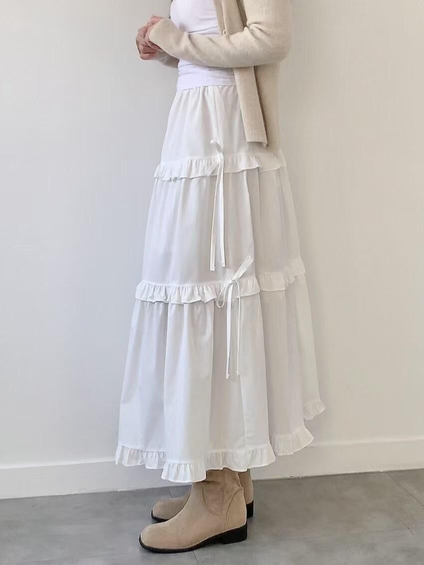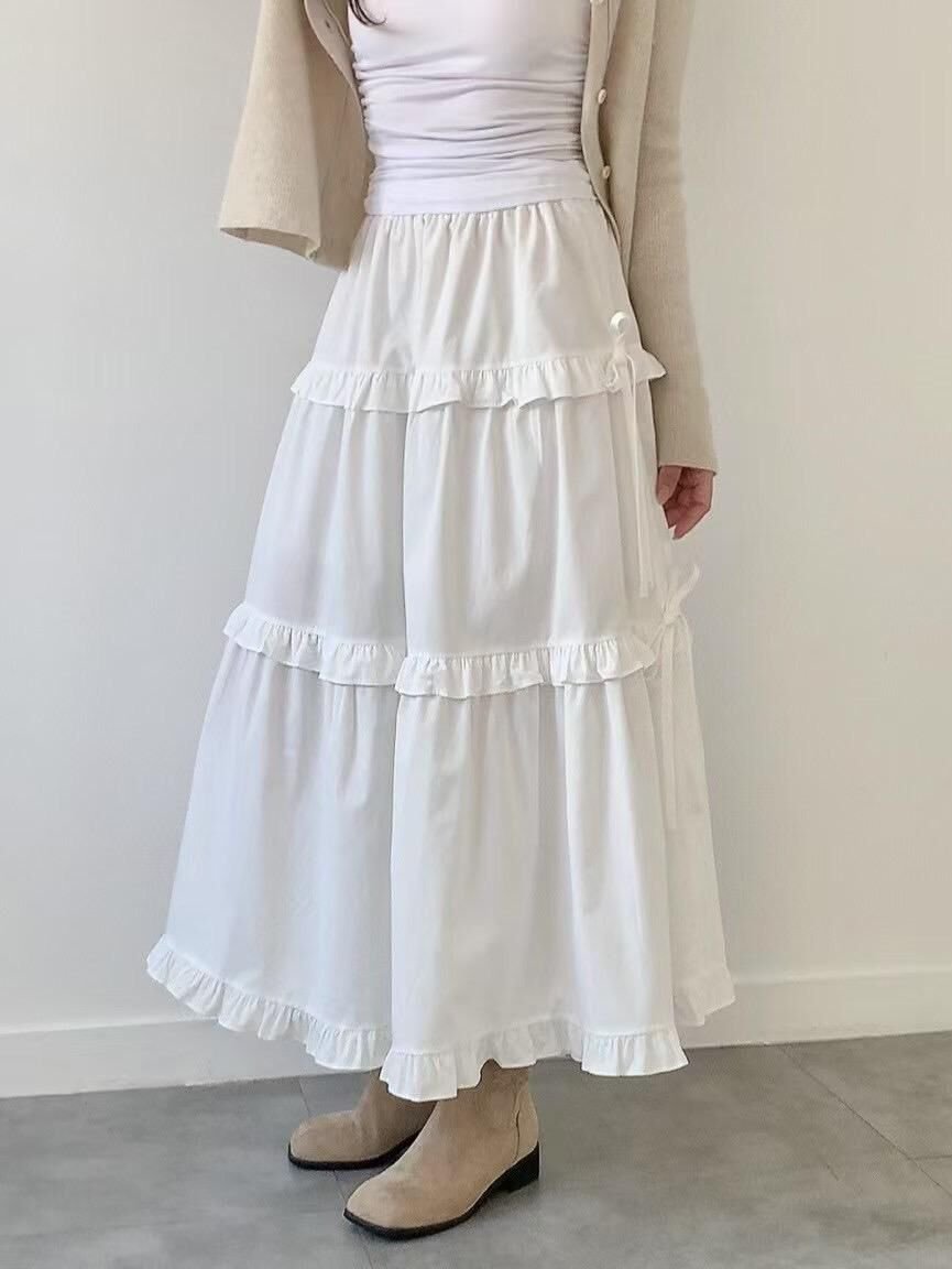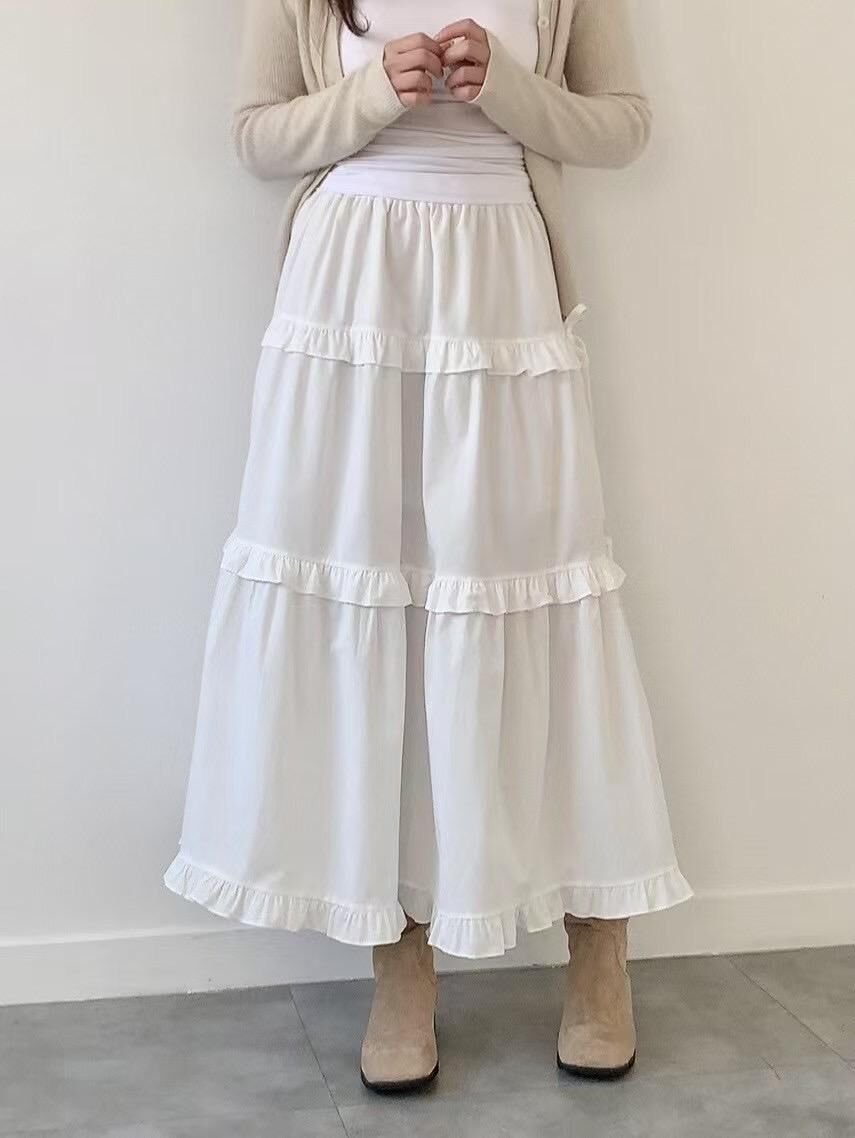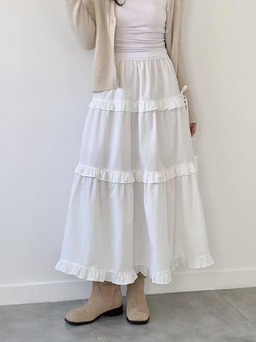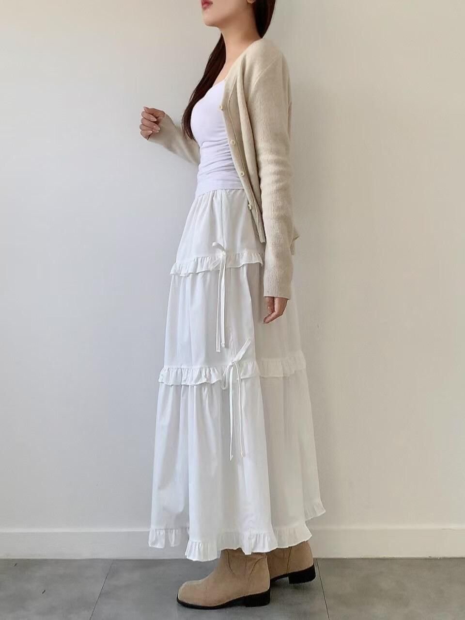 (•‾⌣‾•)簡約花邊設計長裙❤️上身可以襯T恤或者襯衫會有不同感覺既風格💕