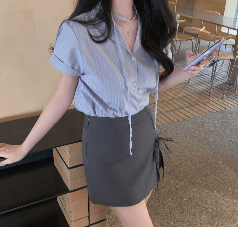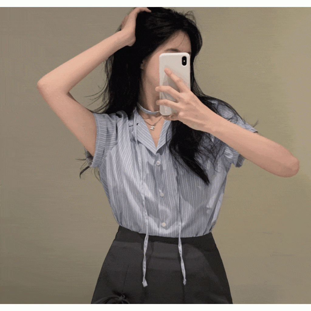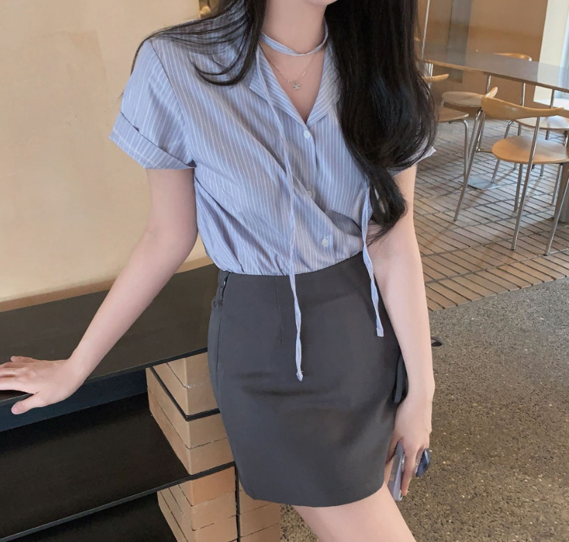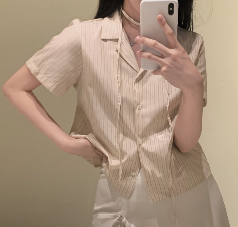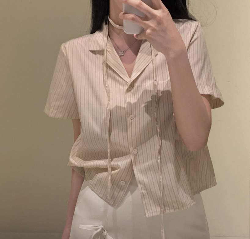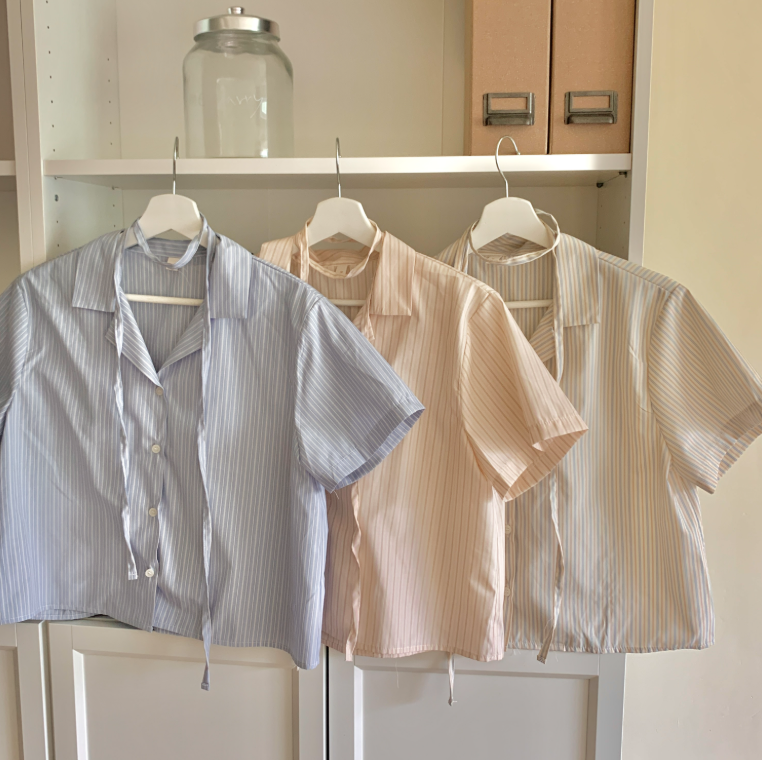 (•‾⌣‾•)間條恤衫視覺效果好顯瘦❤️短款設計可以拉高身材比例💕